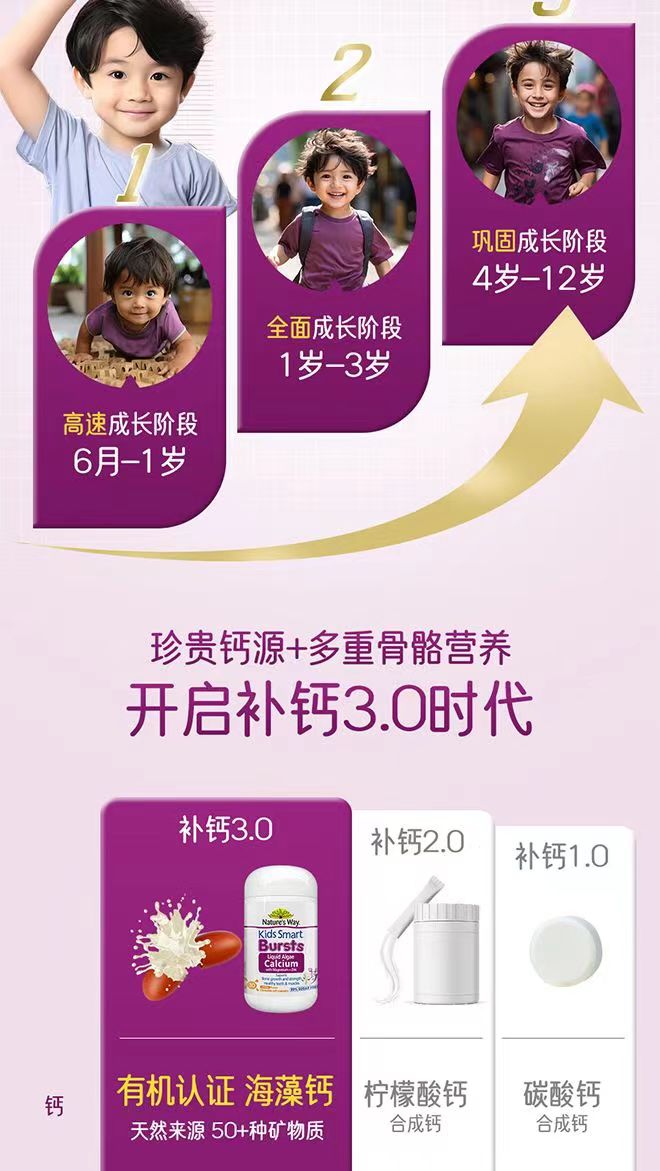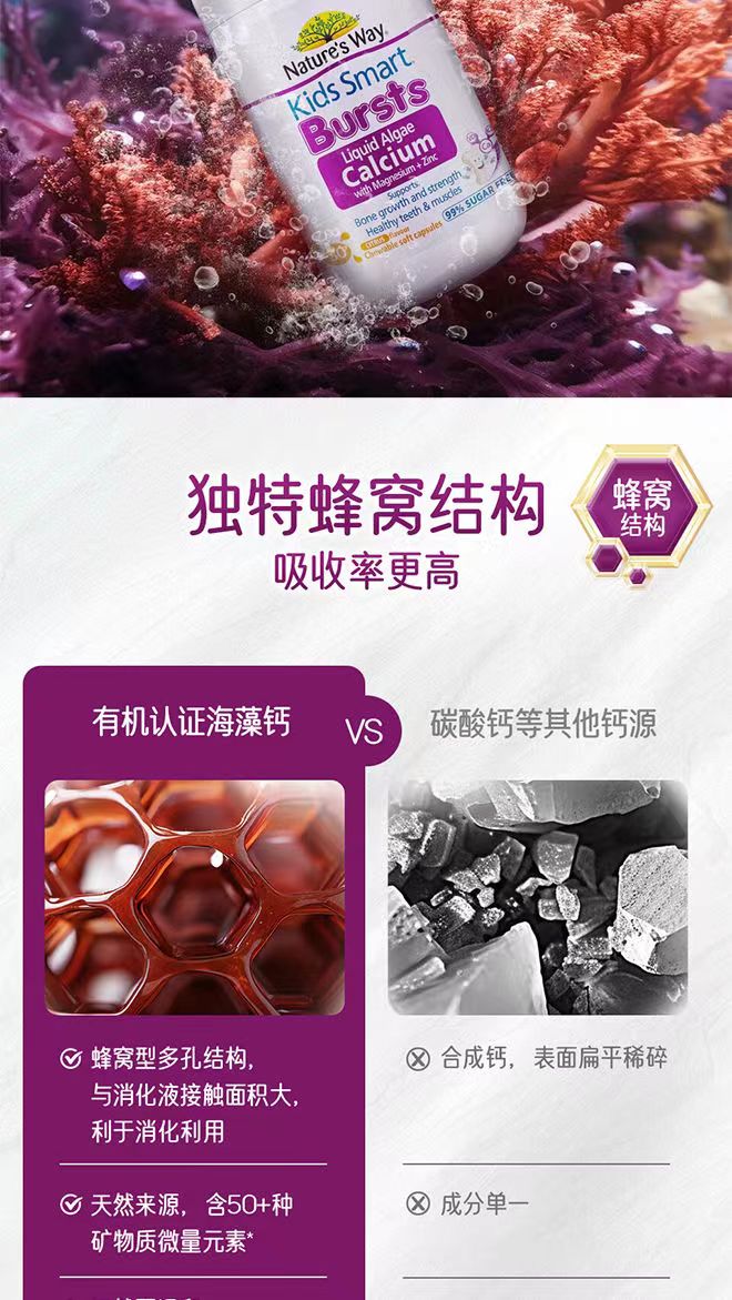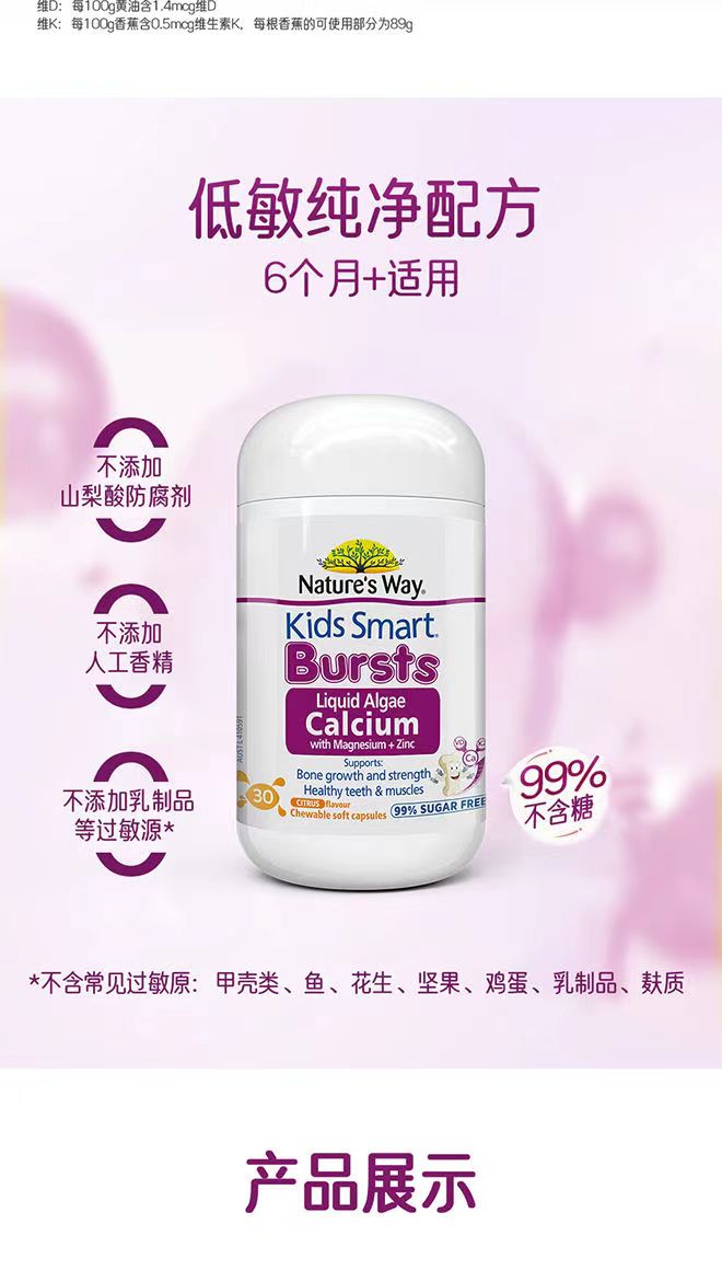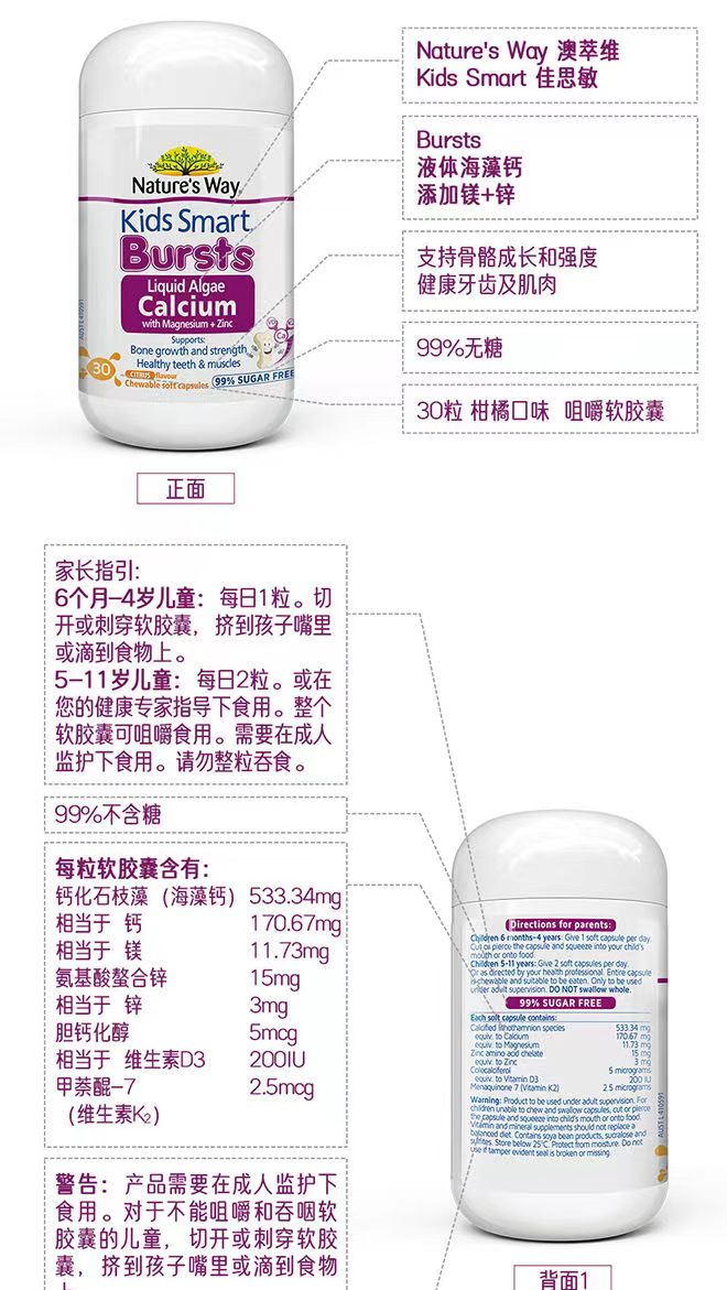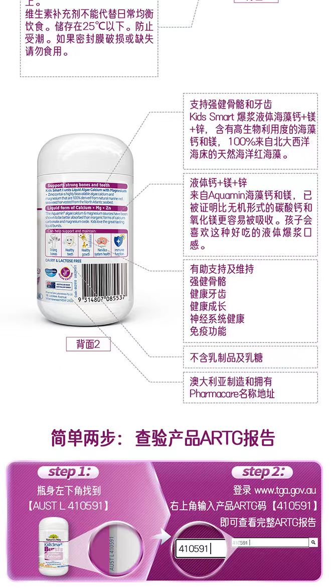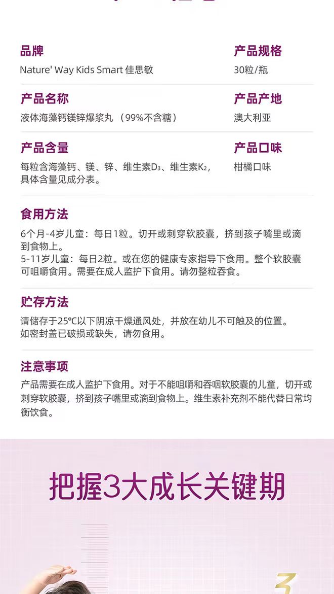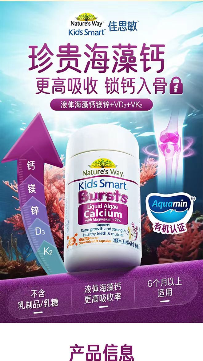 【保税仓】澳洲进口儿童婴幼儿佳思敏海藻钙镁锌爆浆有机钙30粒