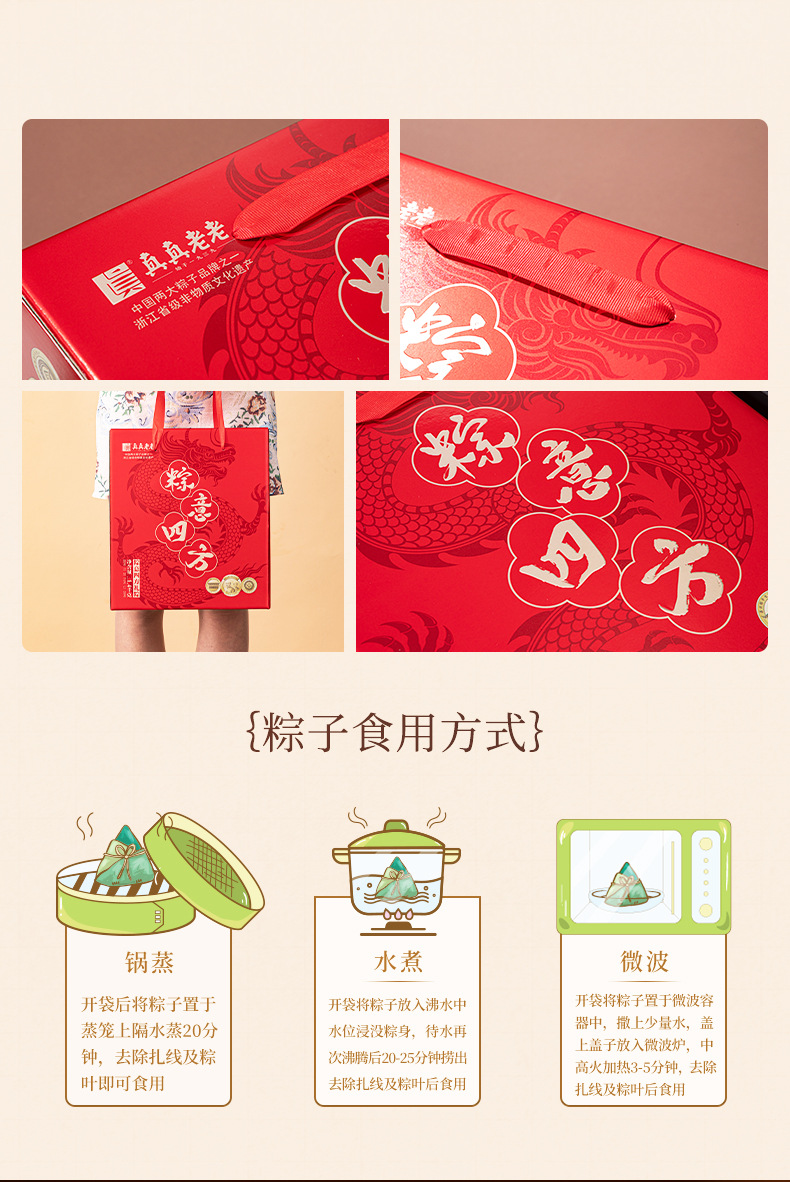 真真老老嘉兴粽子粽意四方端午粽子礼盒1400g