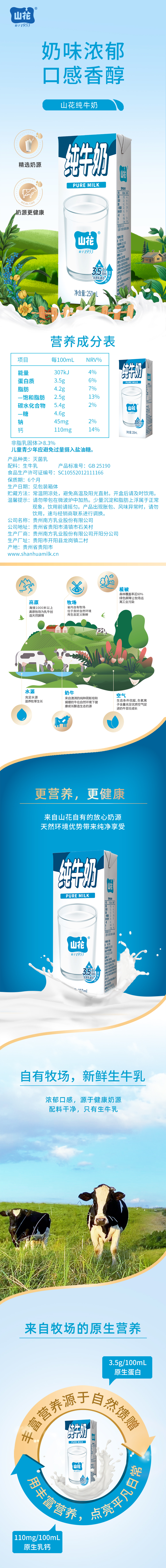 【分销专属】贵州特产山花纯牛奶250ml*16盒/24盒整箱装贵州老字号