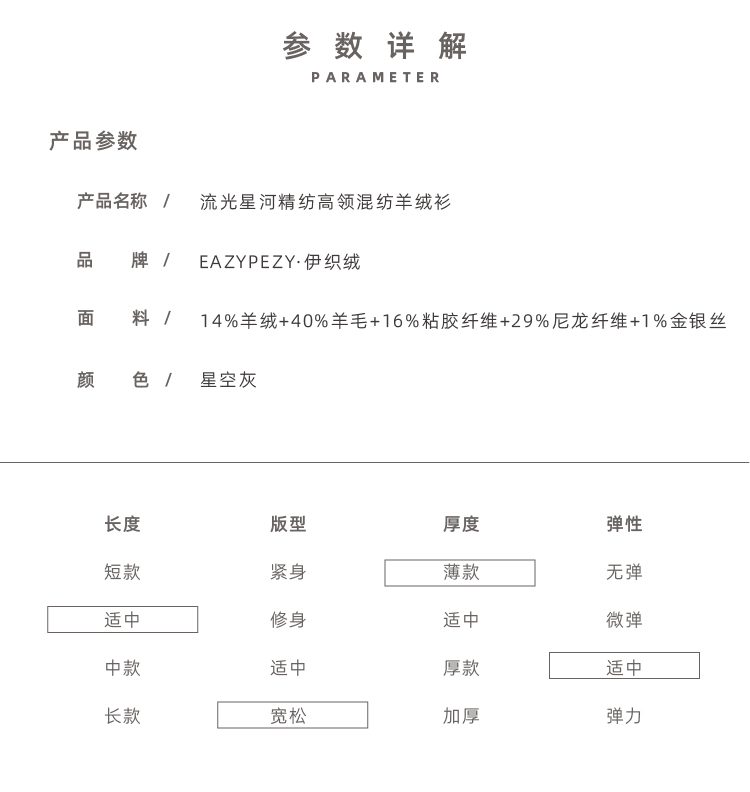 流光星河精纺高领羊绒衫