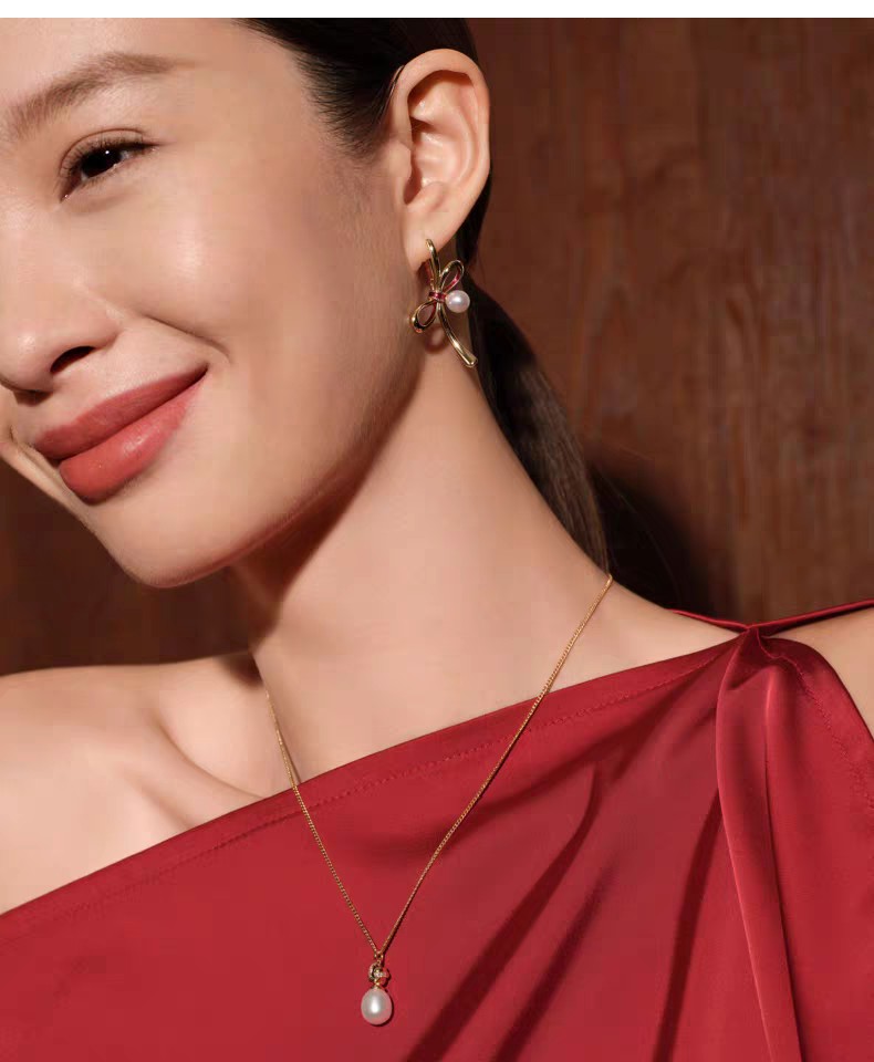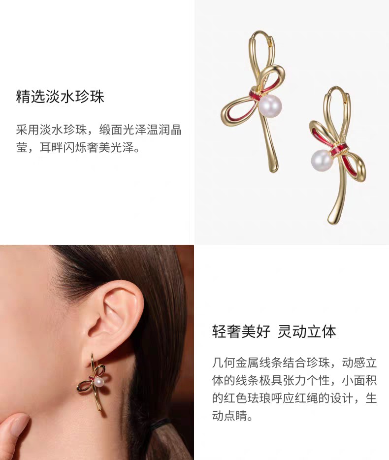 2楼Fellala/翡拉拉「福结」系列珍珠耳钉耳饰货号925428107吊牌价829现价746