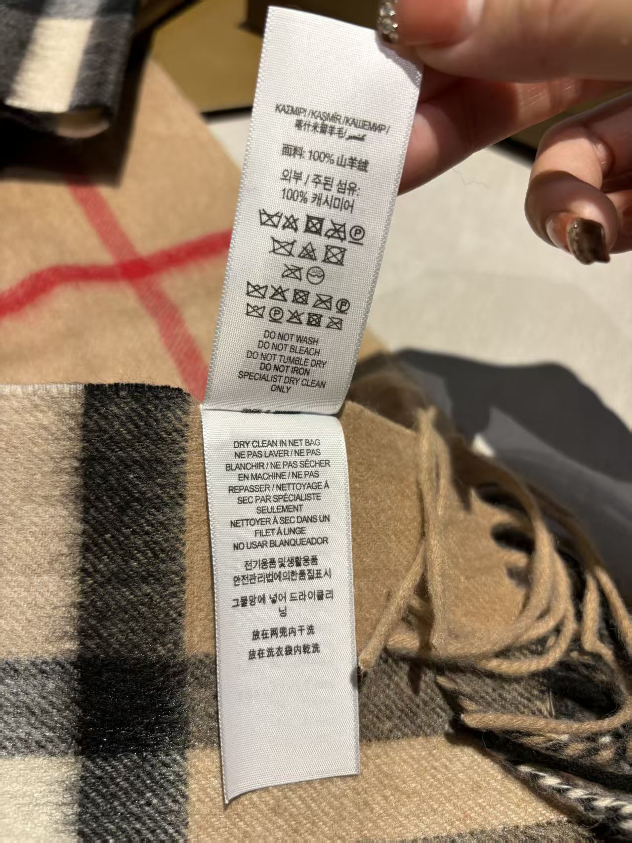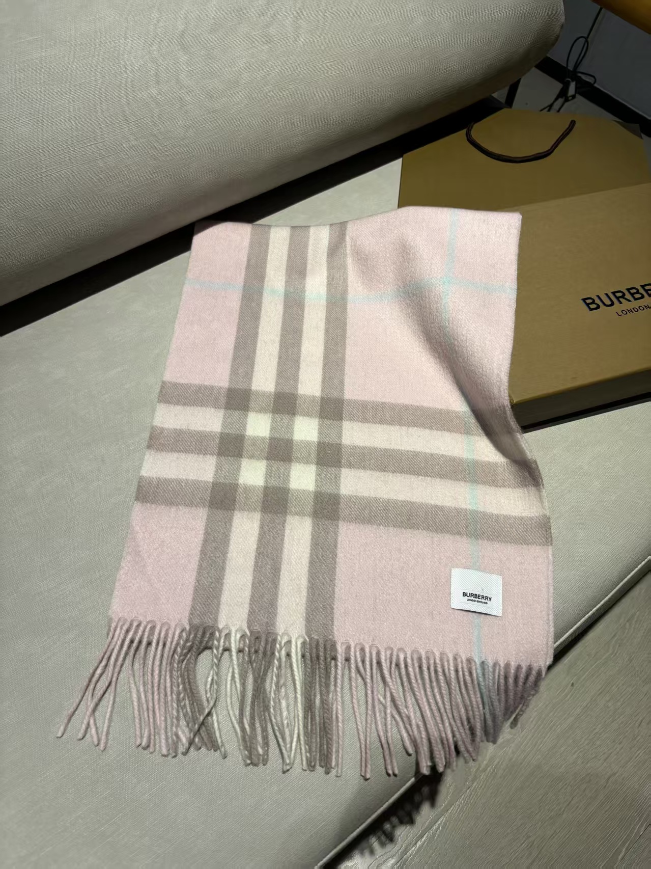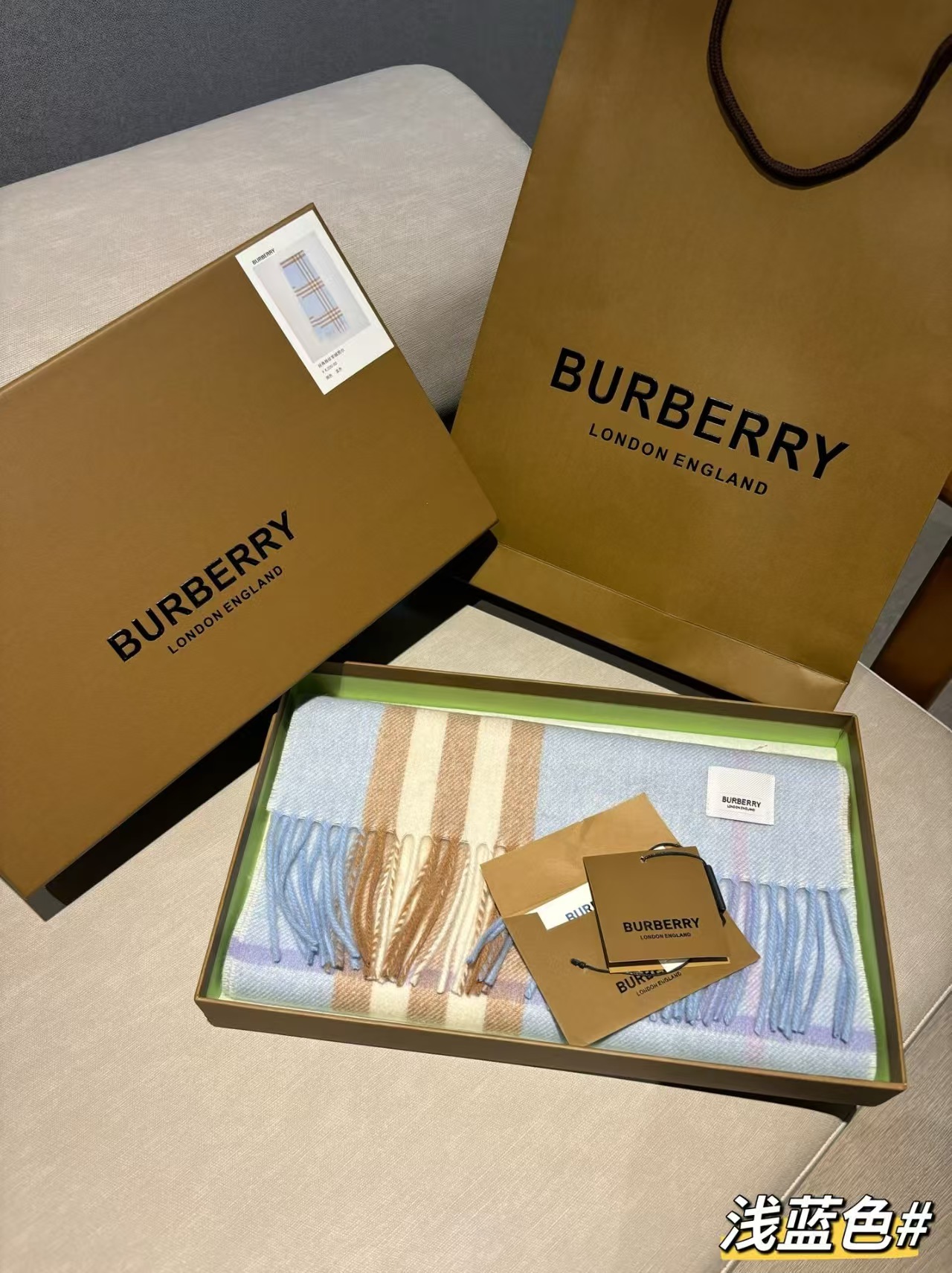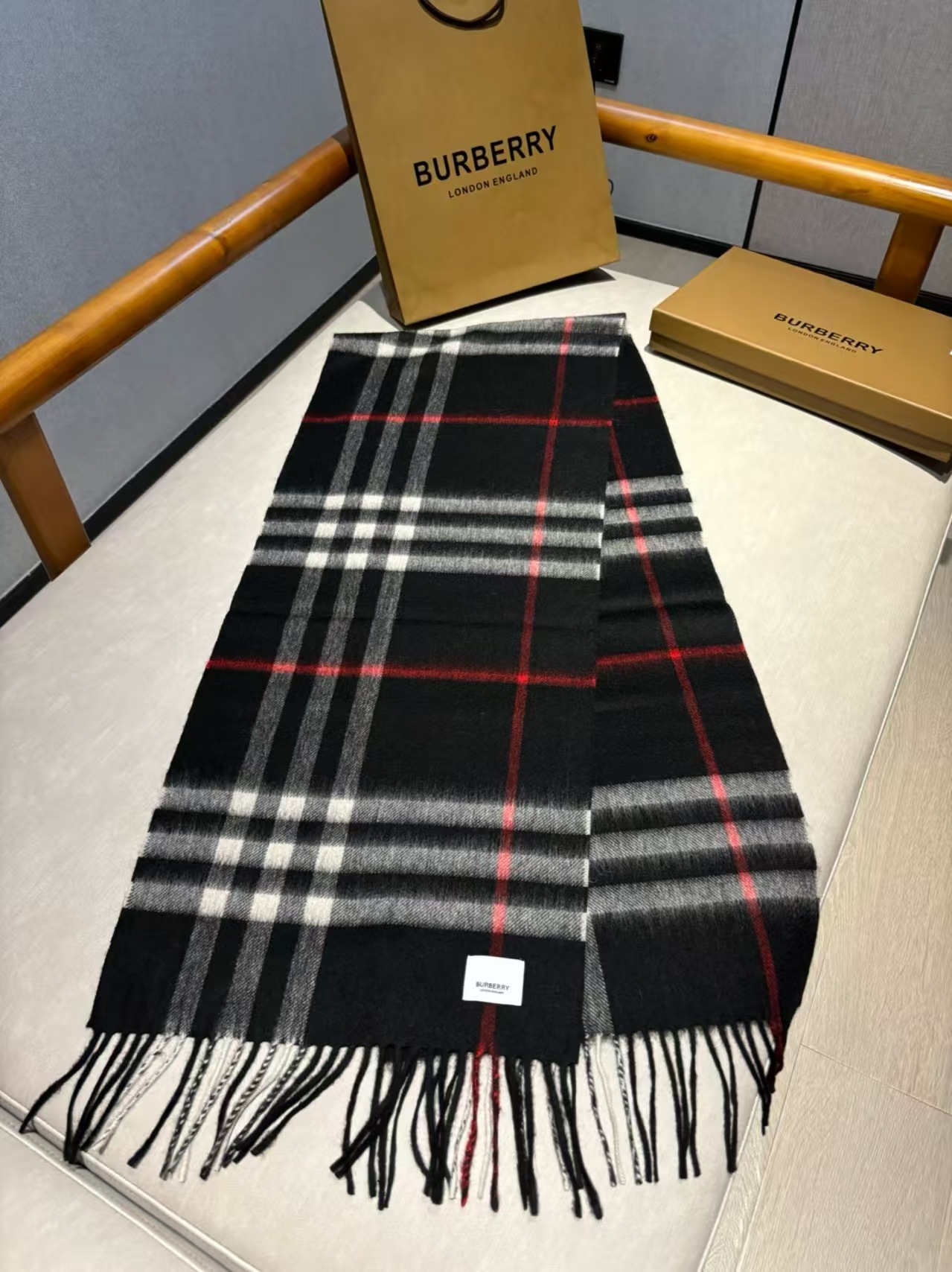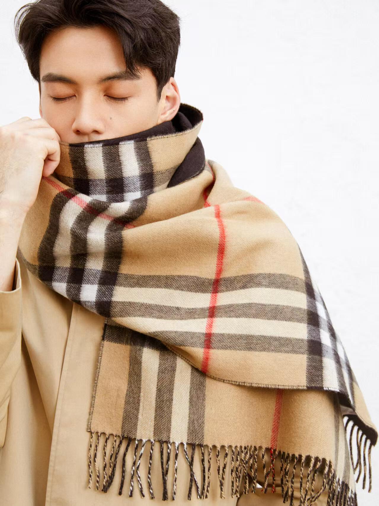 全品密封包装,全部配手提雪梨纸,客供山羊绒原料,这款是Bur蕞经典的羊绒格子围巾,斜纹织造加密处理,面料是100%羊绒