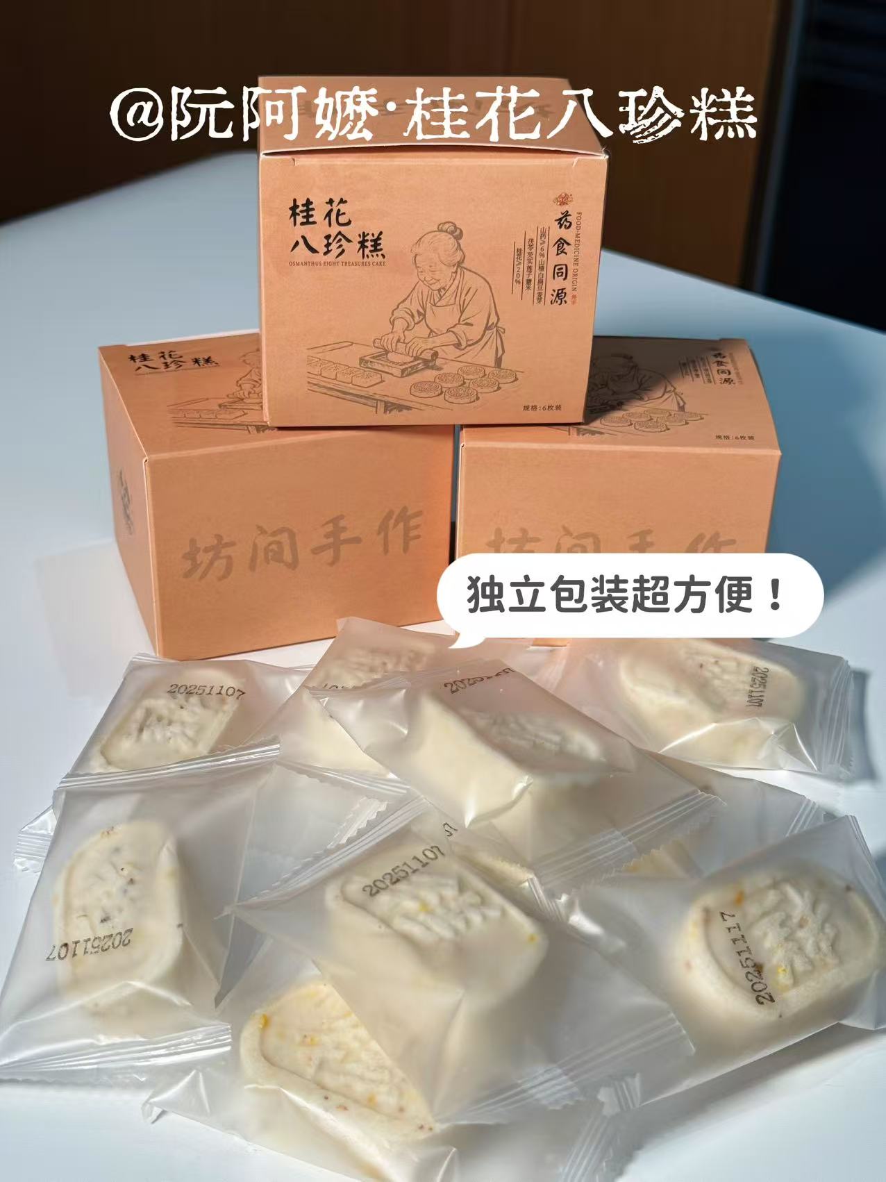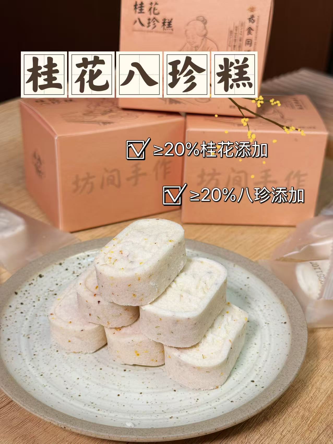 八珍糕 , 一口下去软糯绵密,由茯苓、莲子、芡实、山药等的材料组成!