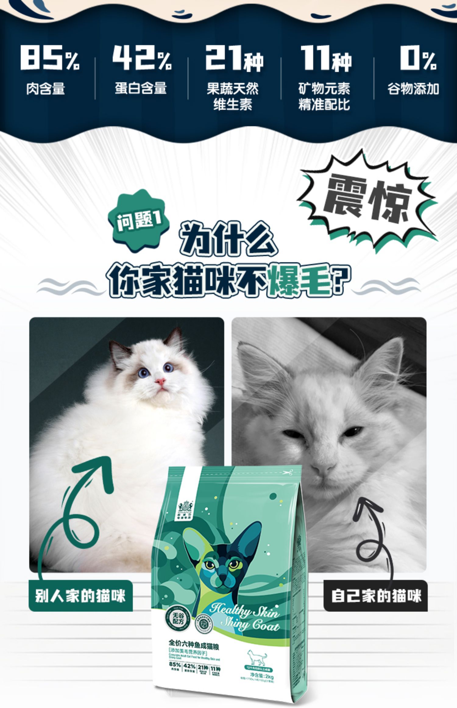 【六种鱼猫粮】2kg★85%高肉含量★无谷冻干双拼粮
