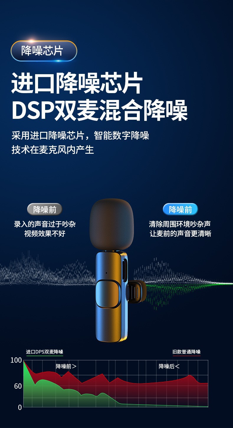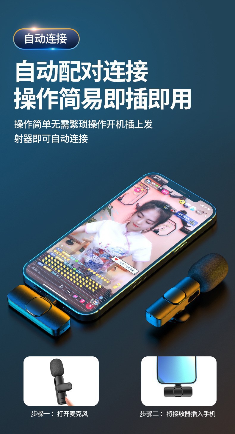 严选【降噪直播麦克风k9一拖二 】苹果充电版无线领夹麦克风带仓手机主播收音麦清晰录音