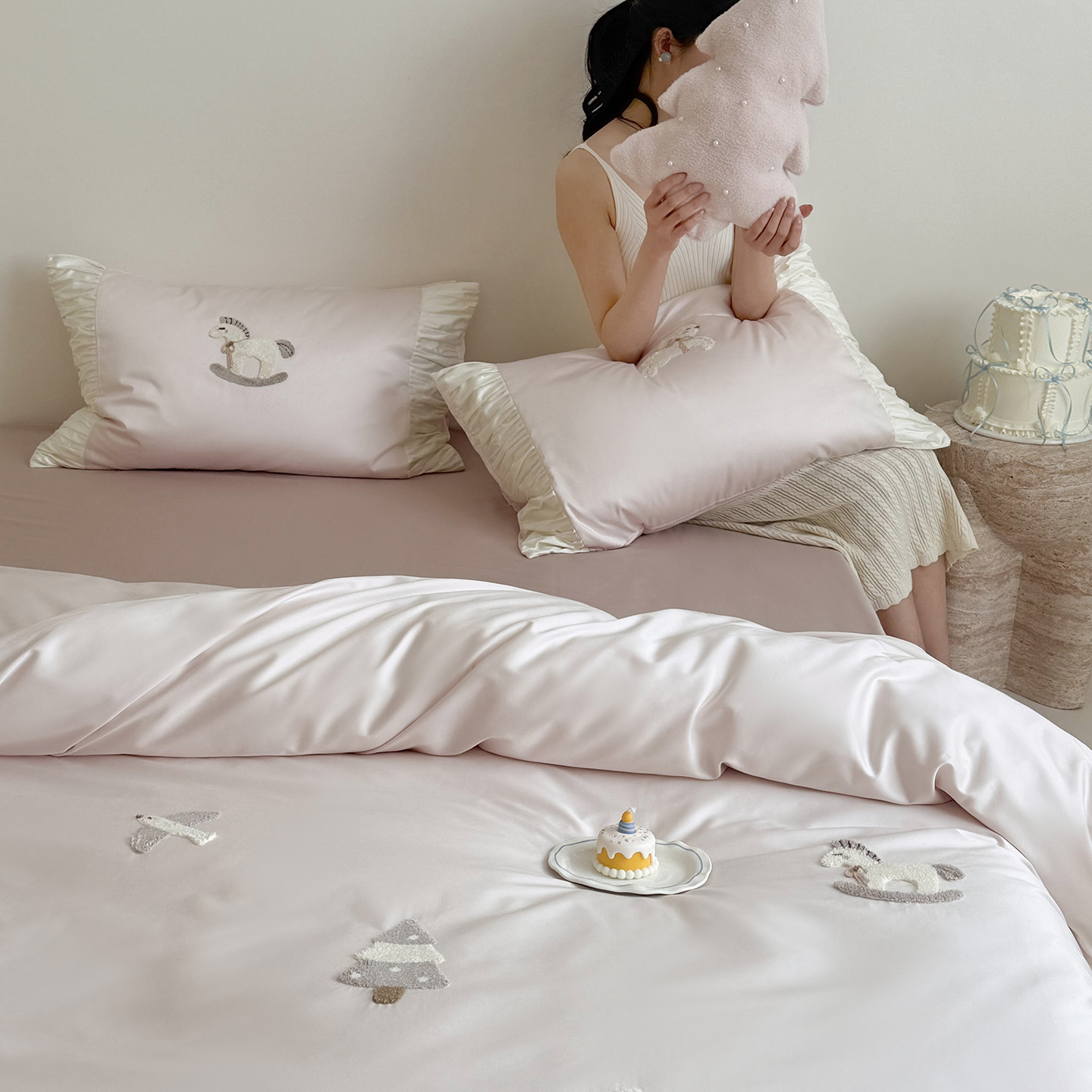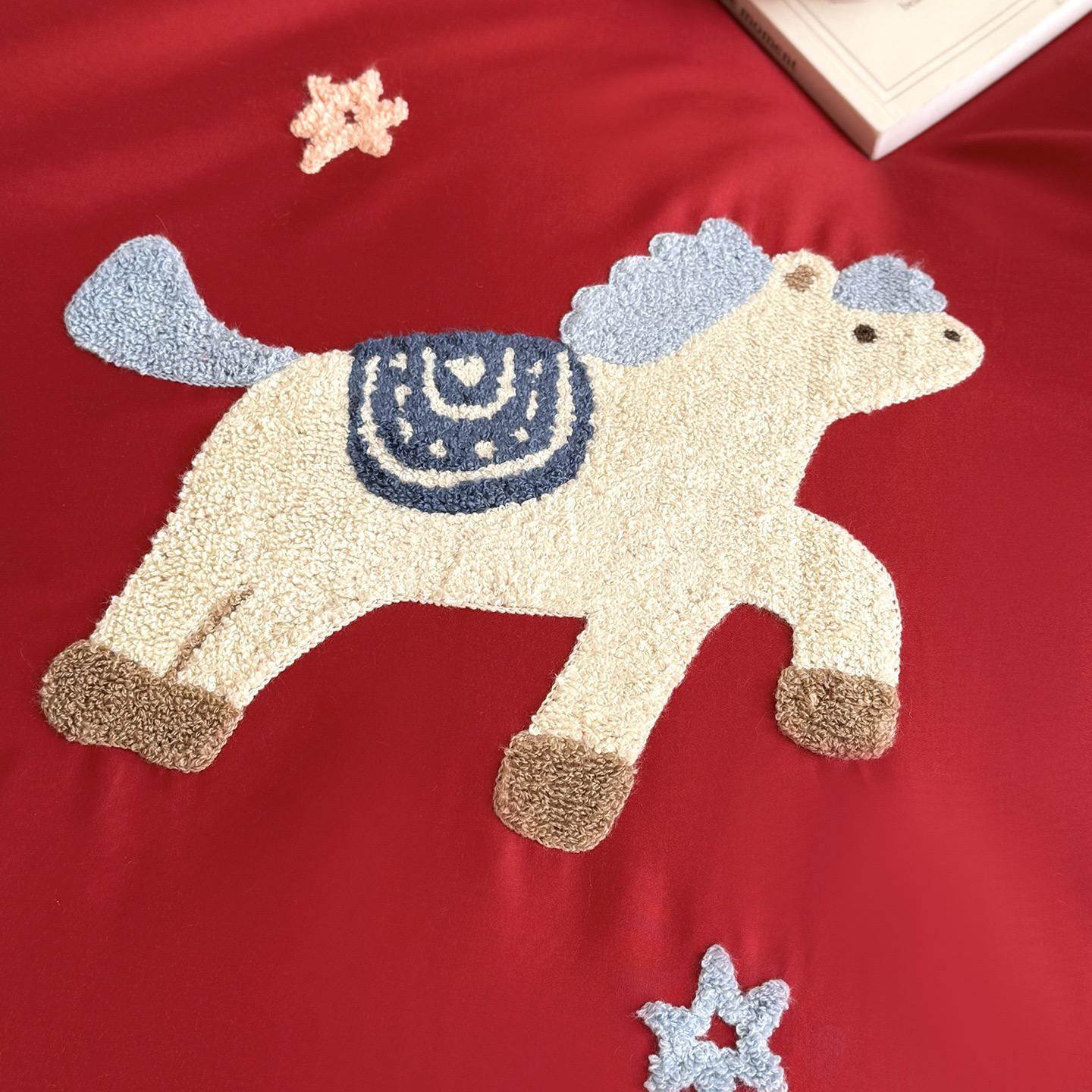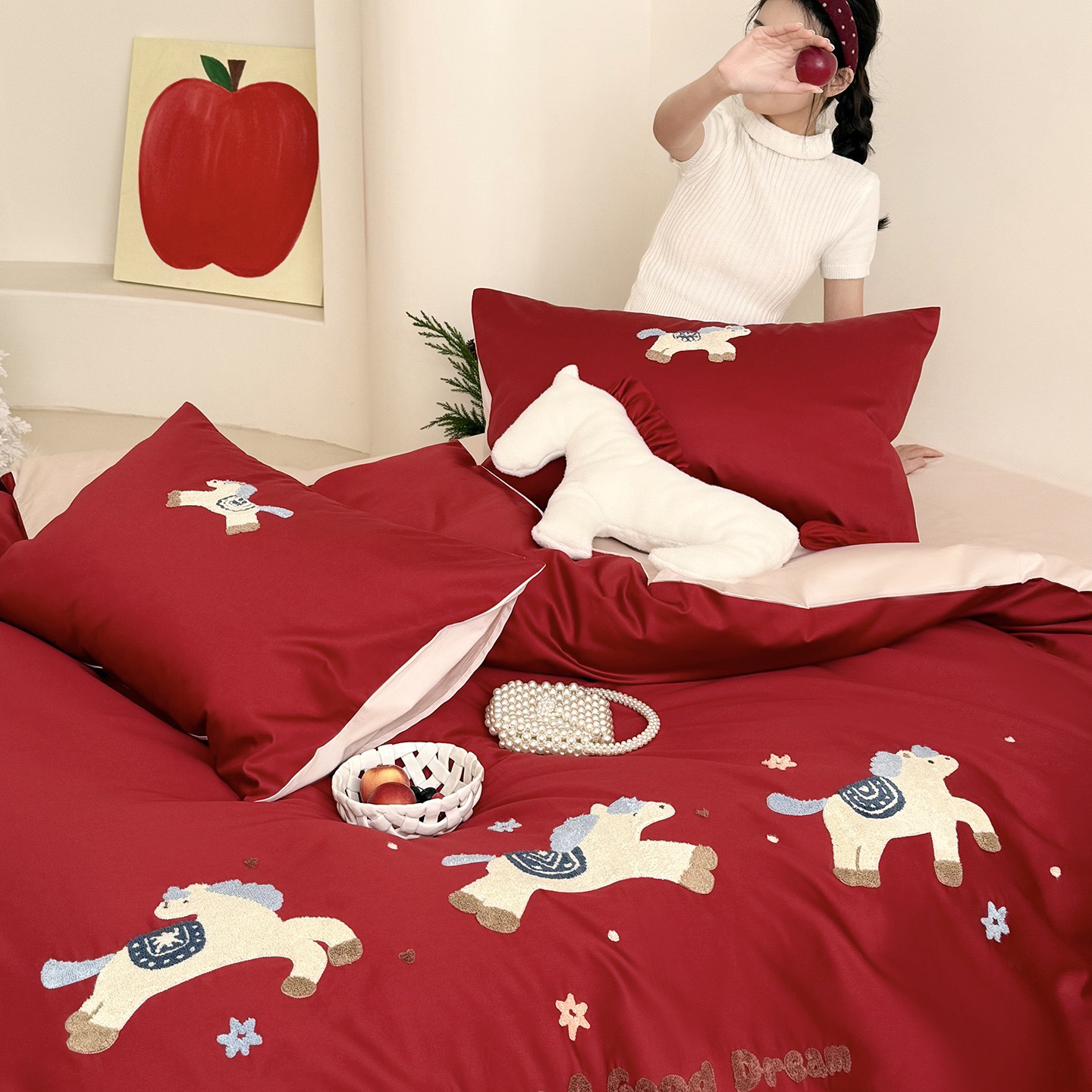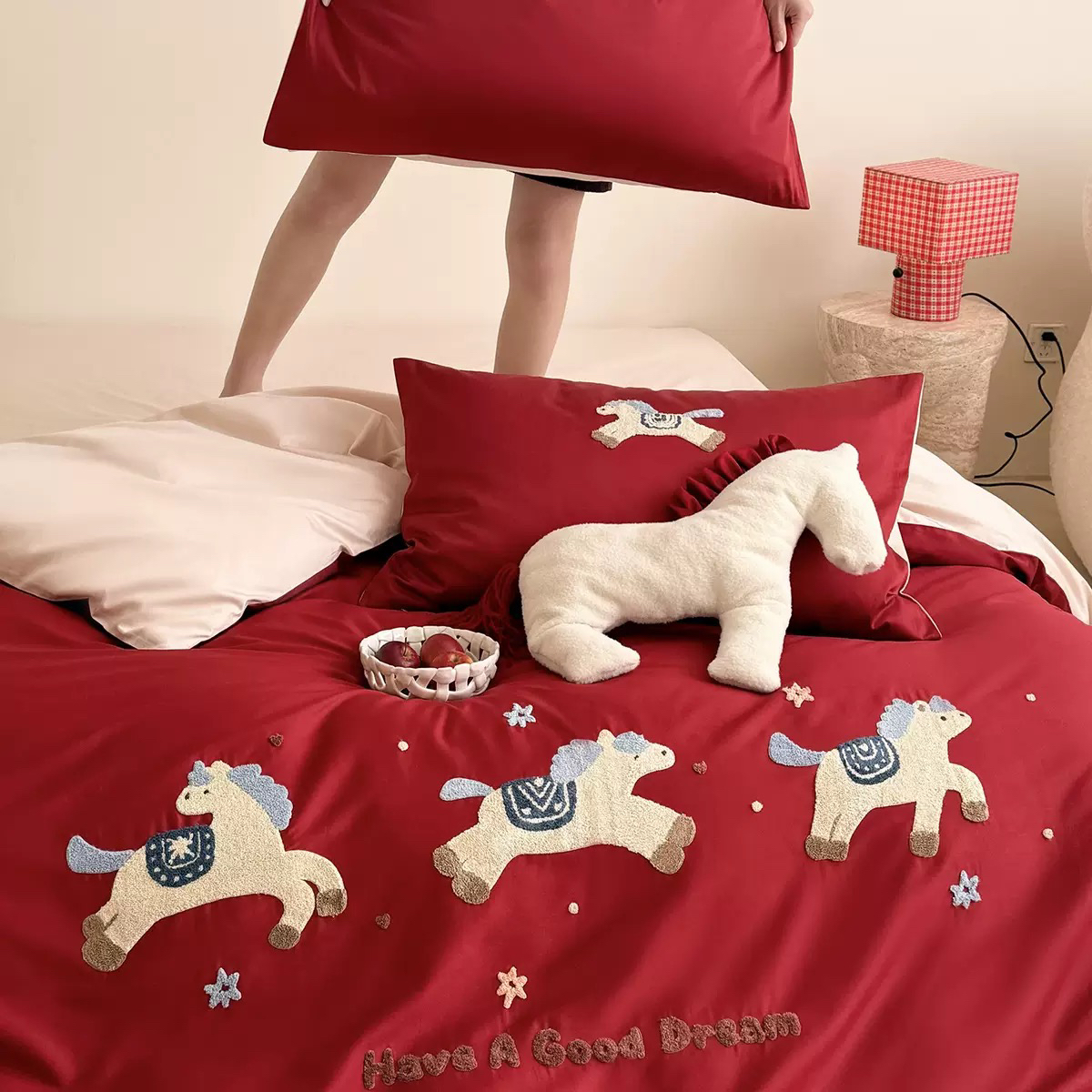 小马报道~ 26新款100S长绒棉四件套卡通小马毛巾绣被套纯棉床单床笠床上用品春