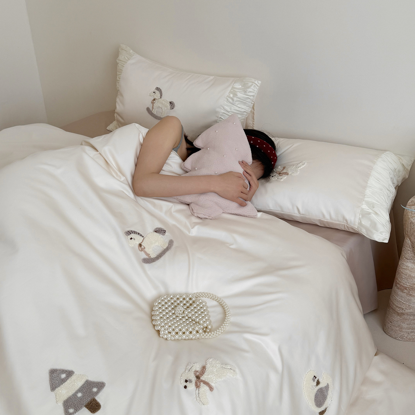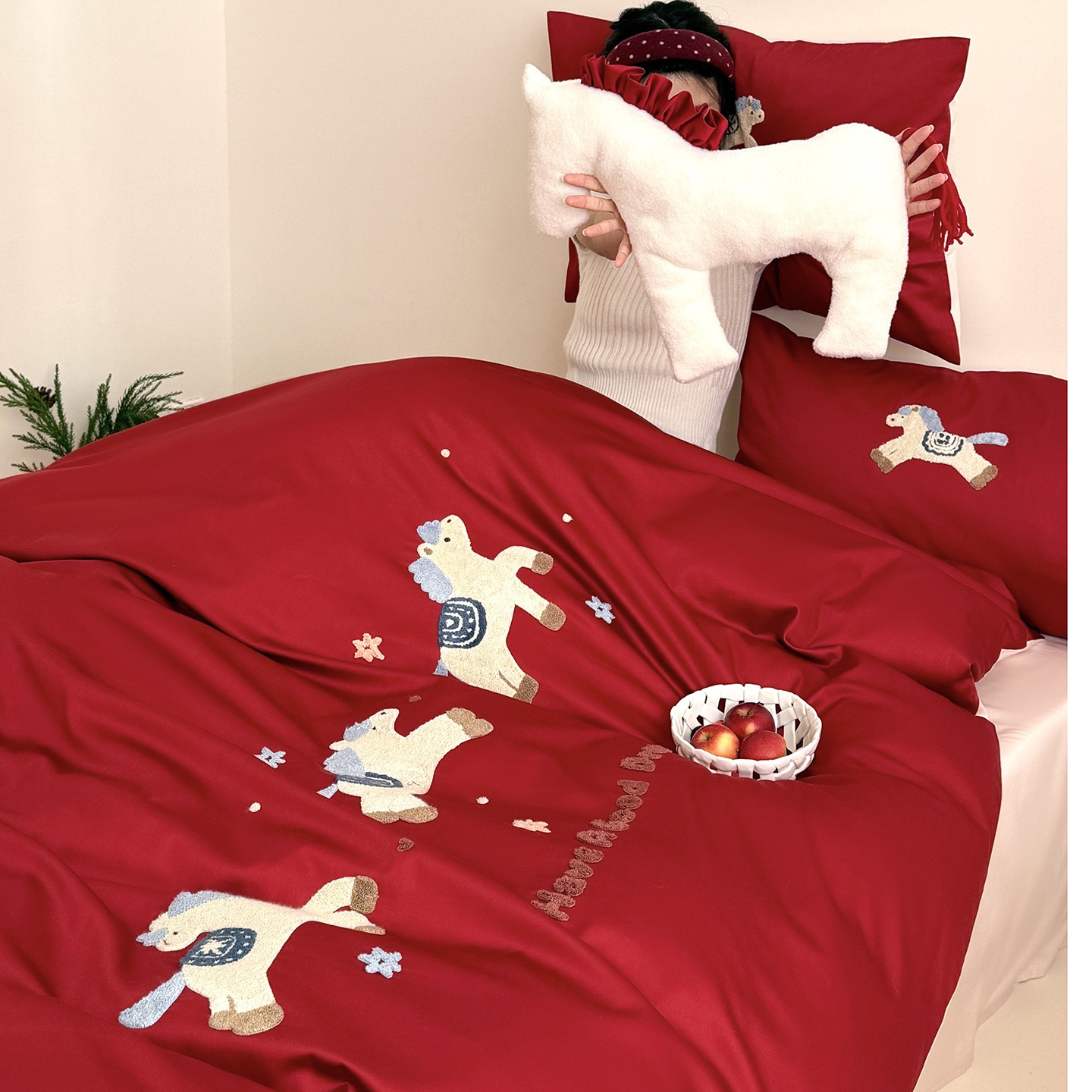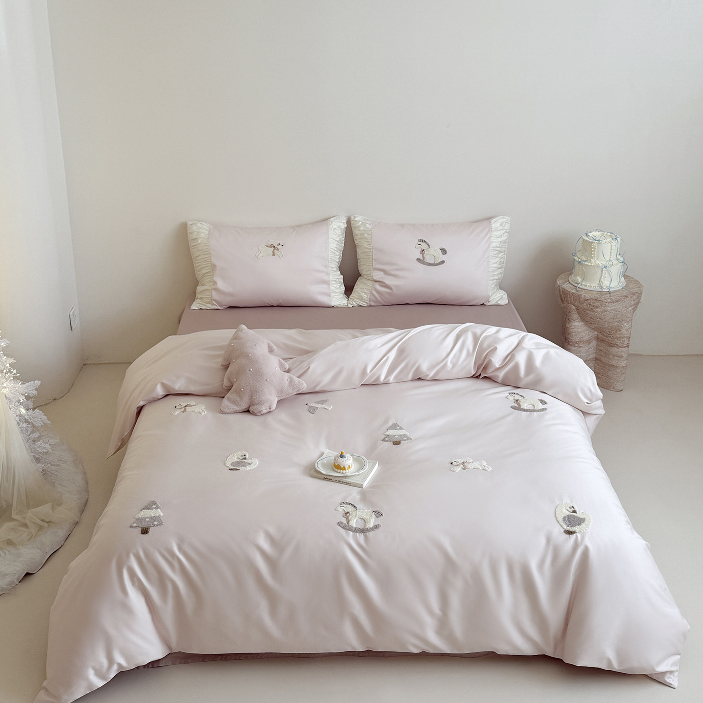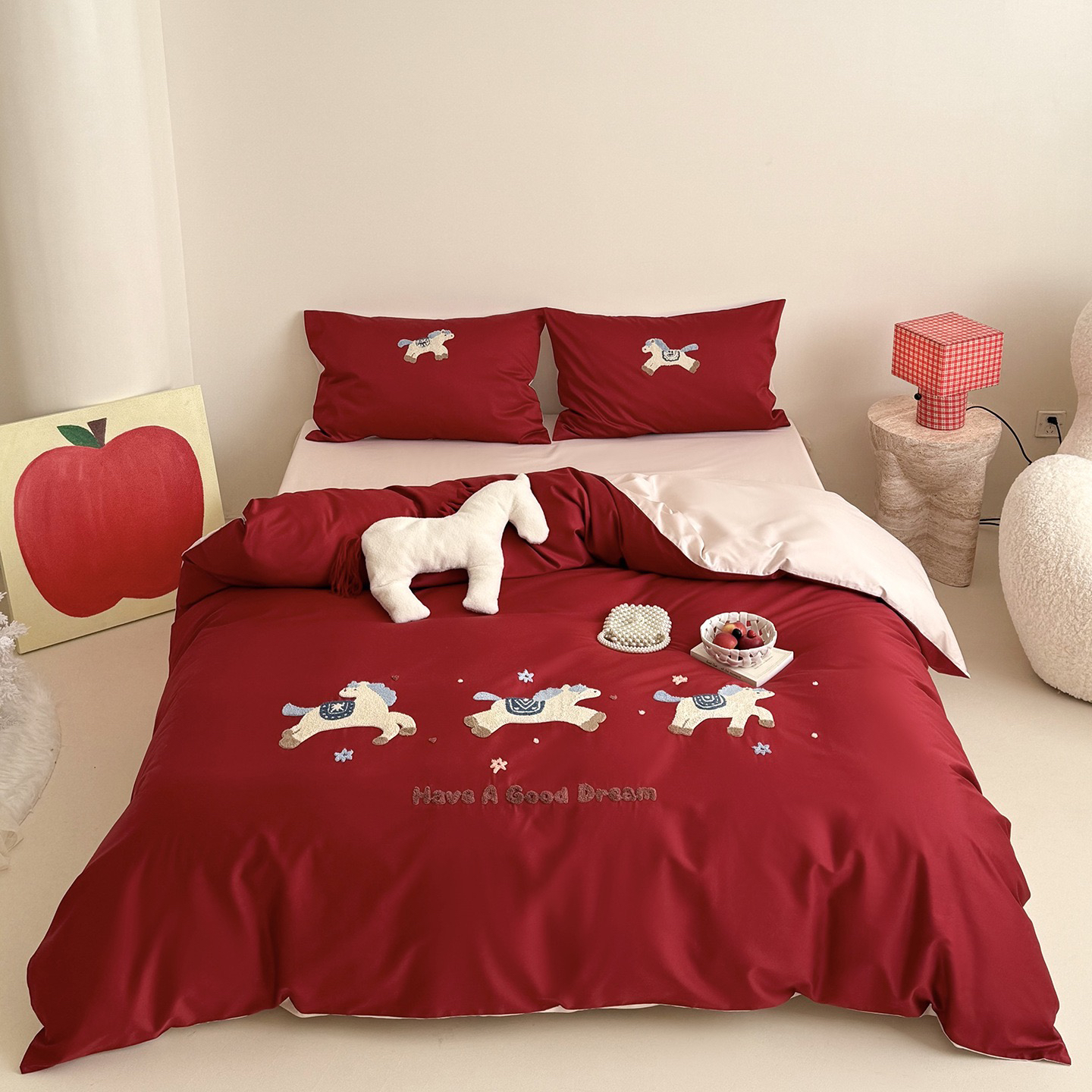 小马报道~ 26新款100S长绒棉四件套卡通小马毛巾绣被套纯棉床单床笠床上用品春
