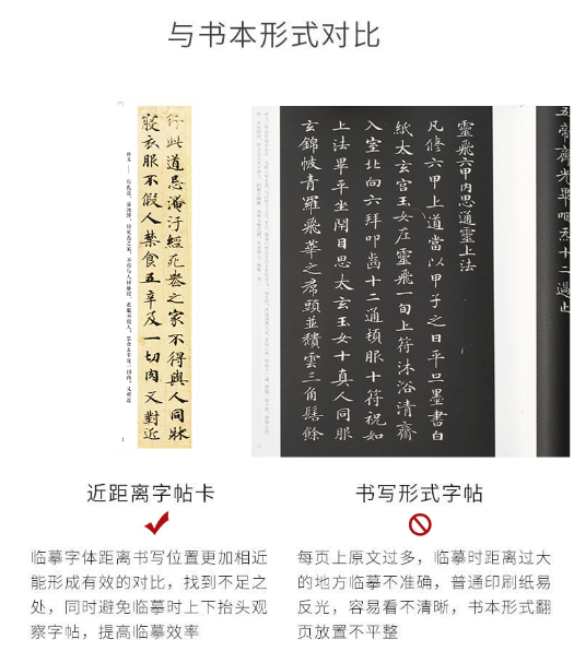 我们给大家推荐的是《灵飞经》字卡,将大幅字帖裁剪成竖条状的临摹字卡。还一定要带有译文,为什么?字都不认识,还如何写好呢。