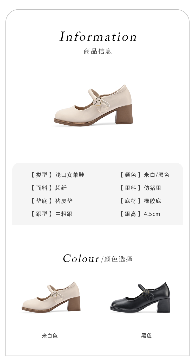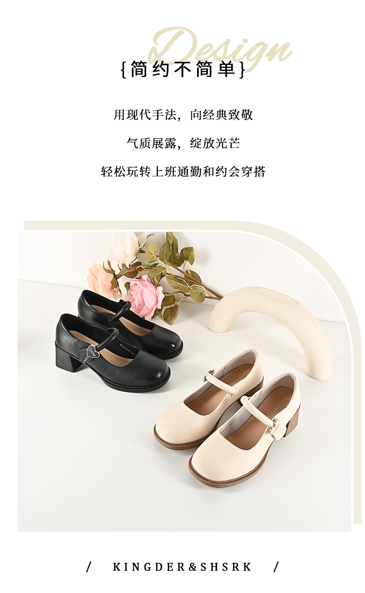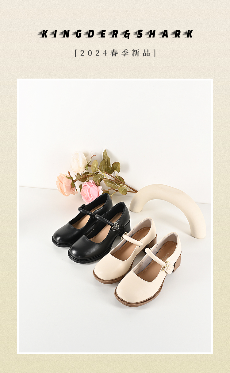 2024经典鲨春季女鞋新款4.5cm中粗跟爱心时尚玛丽珍KW163-D17021