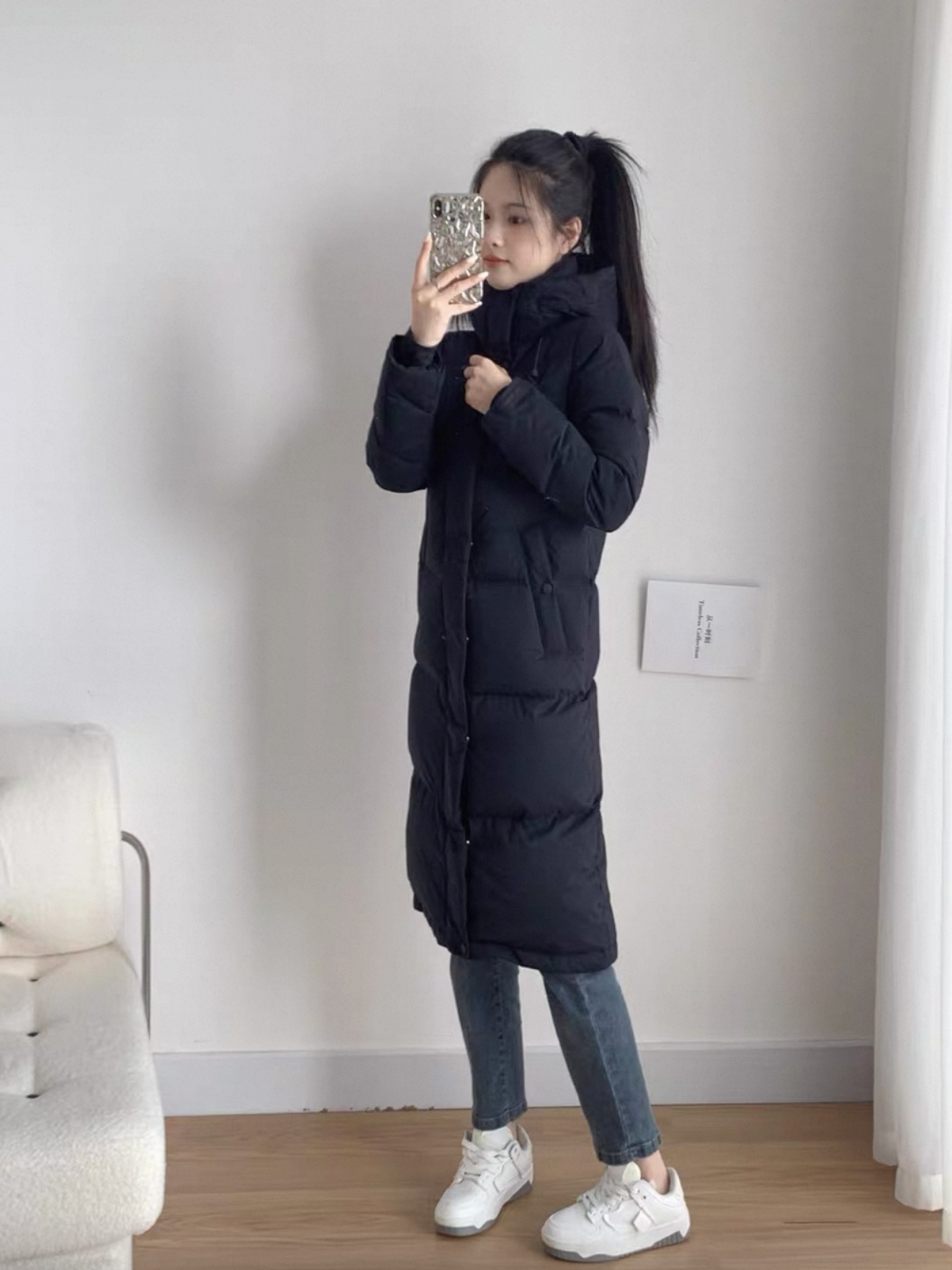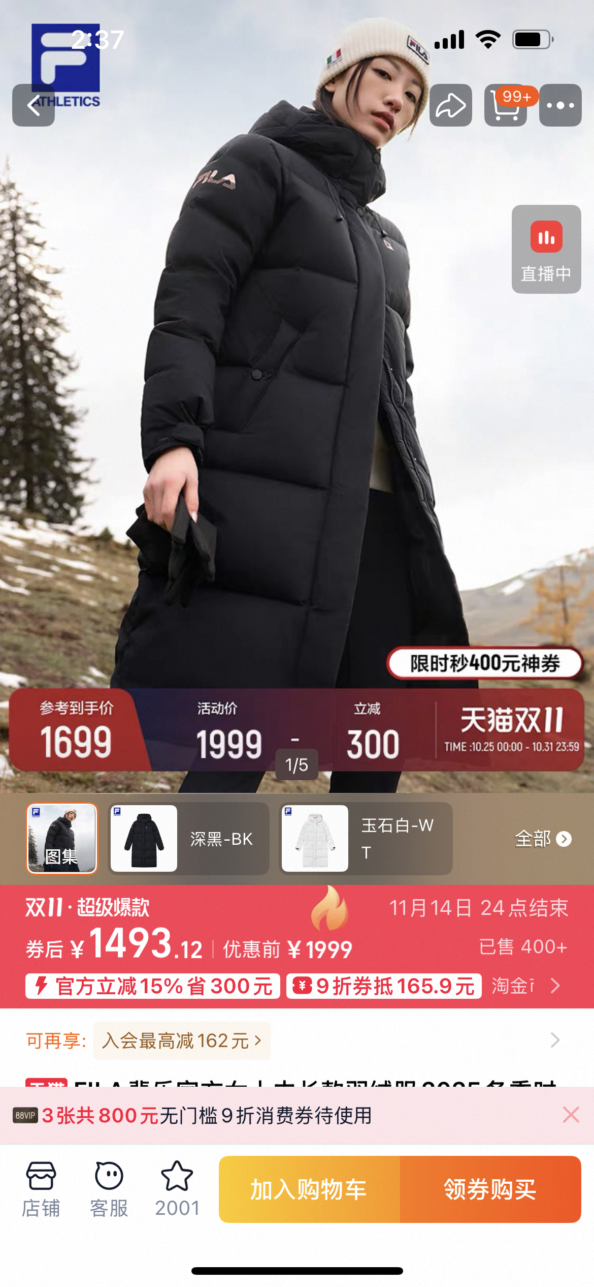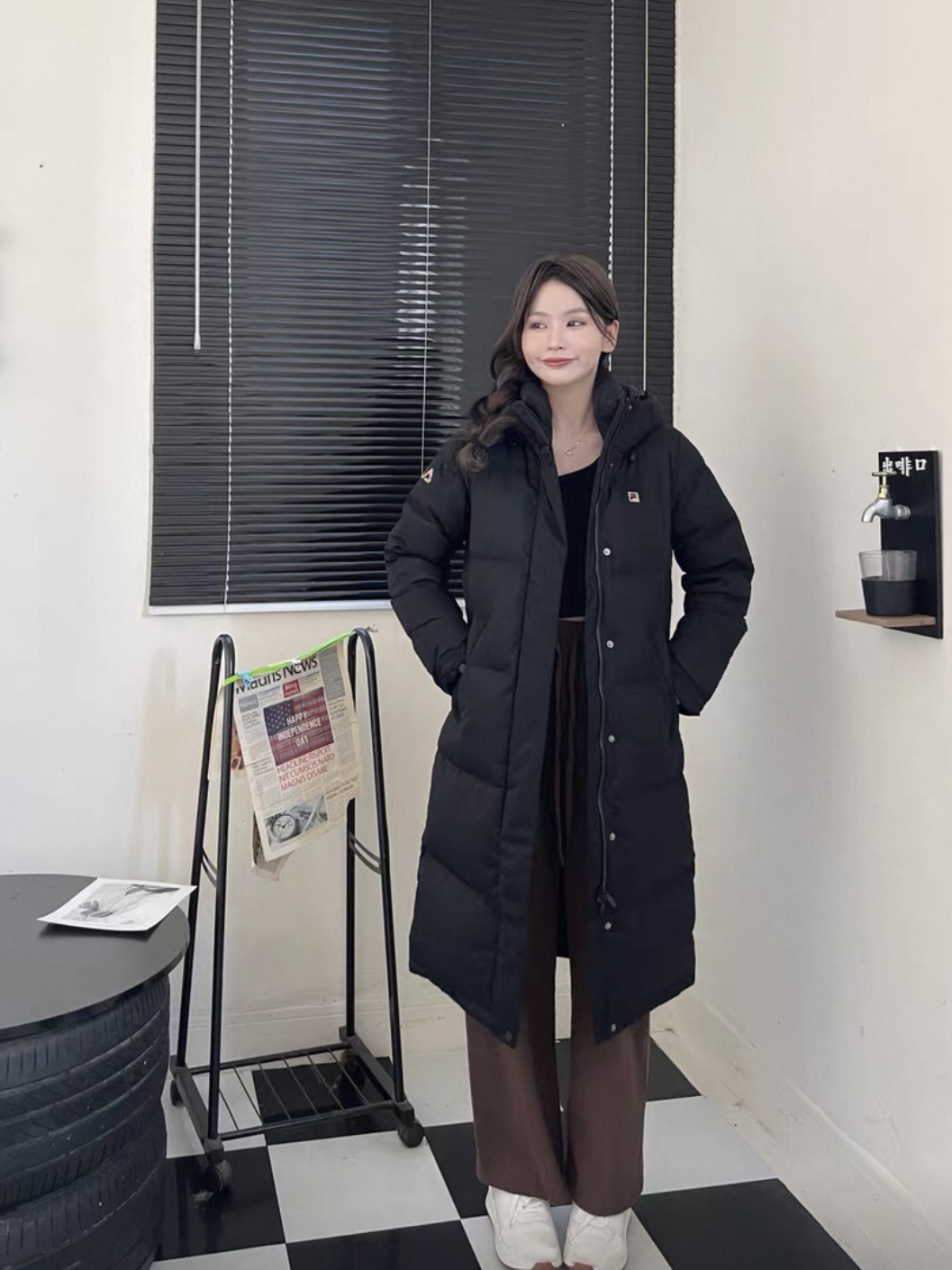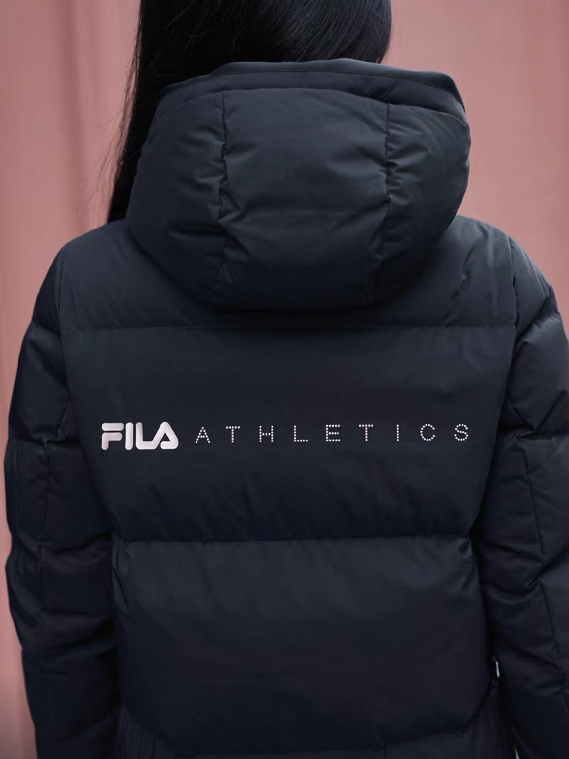 渠道货!FL2025冬季新品中长款女款运动连帽羽绒服