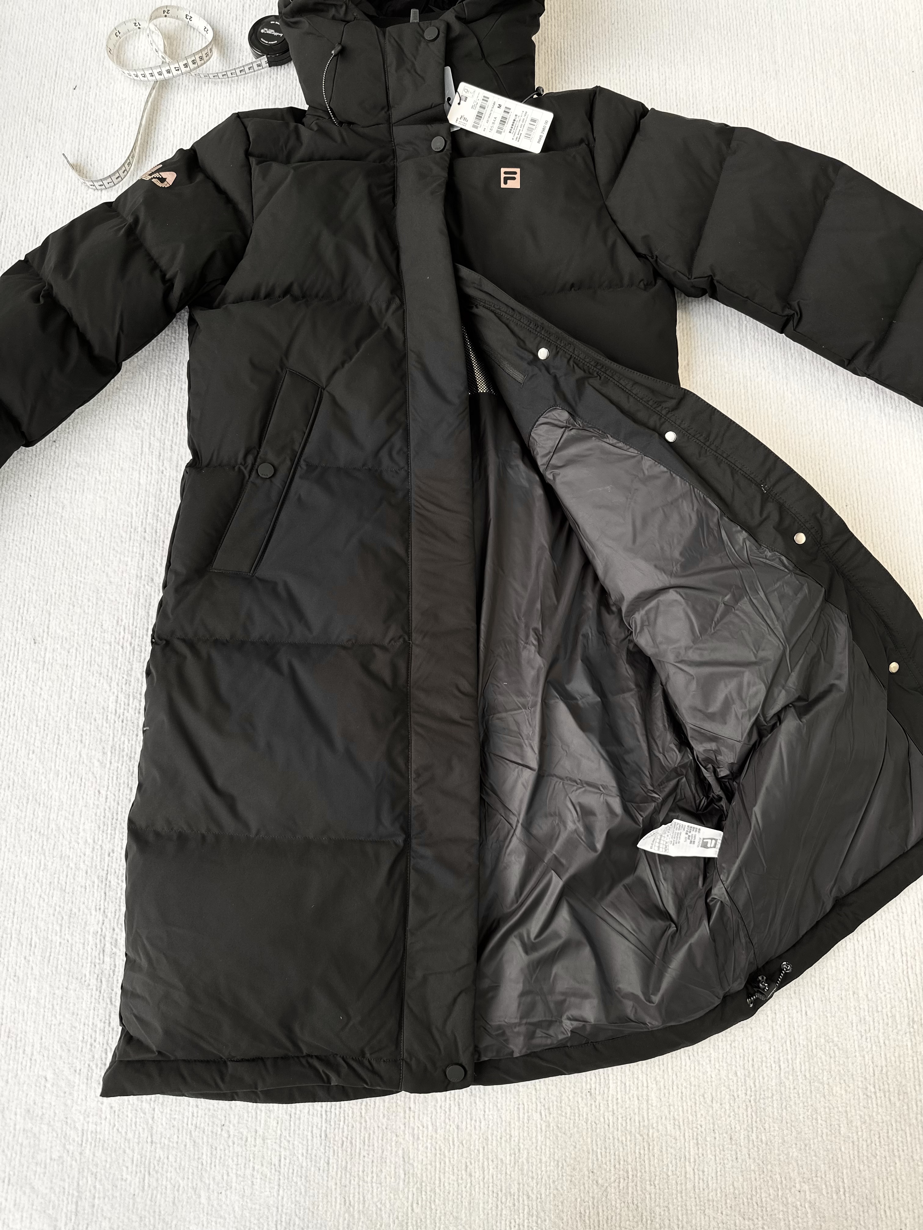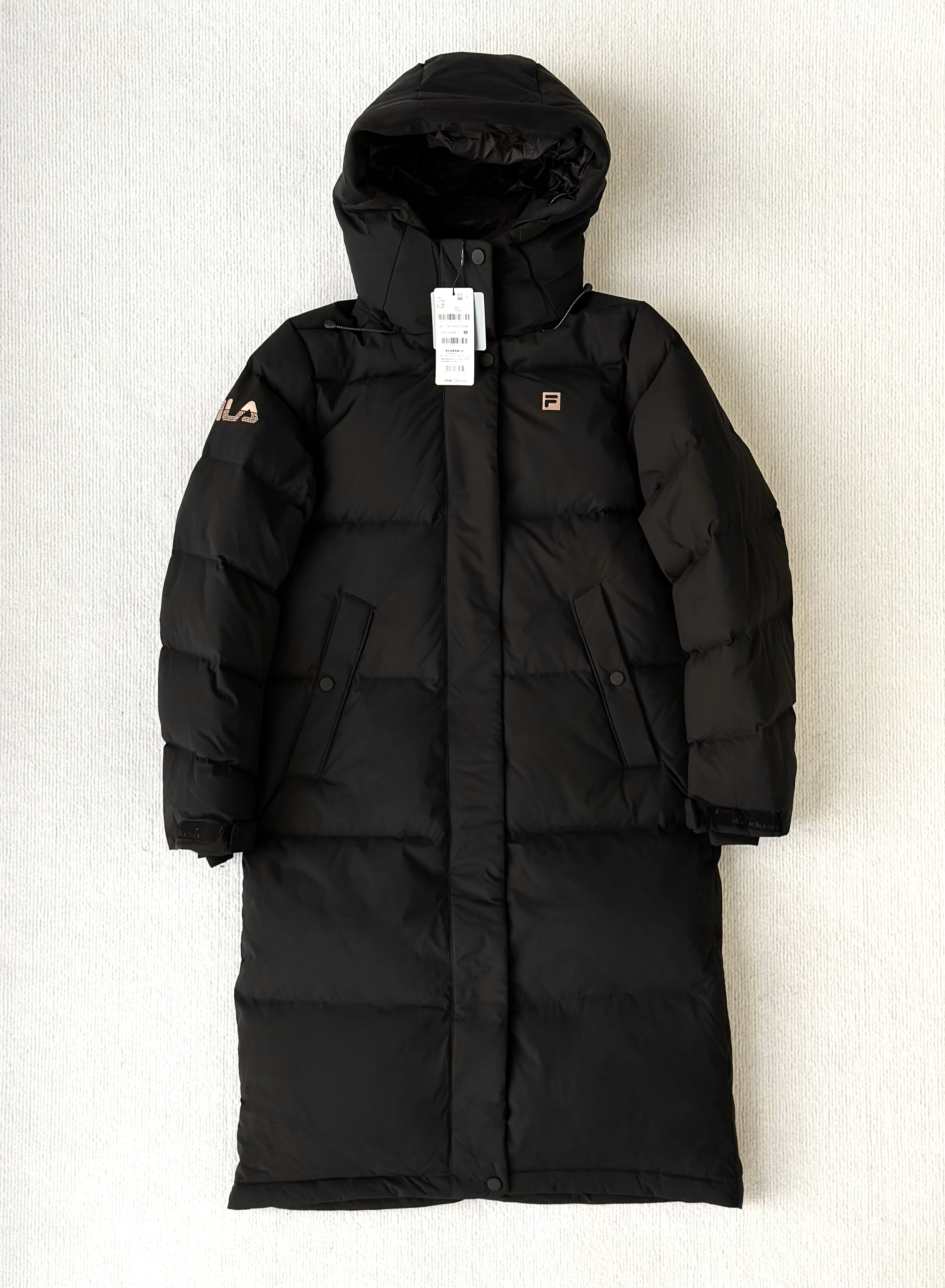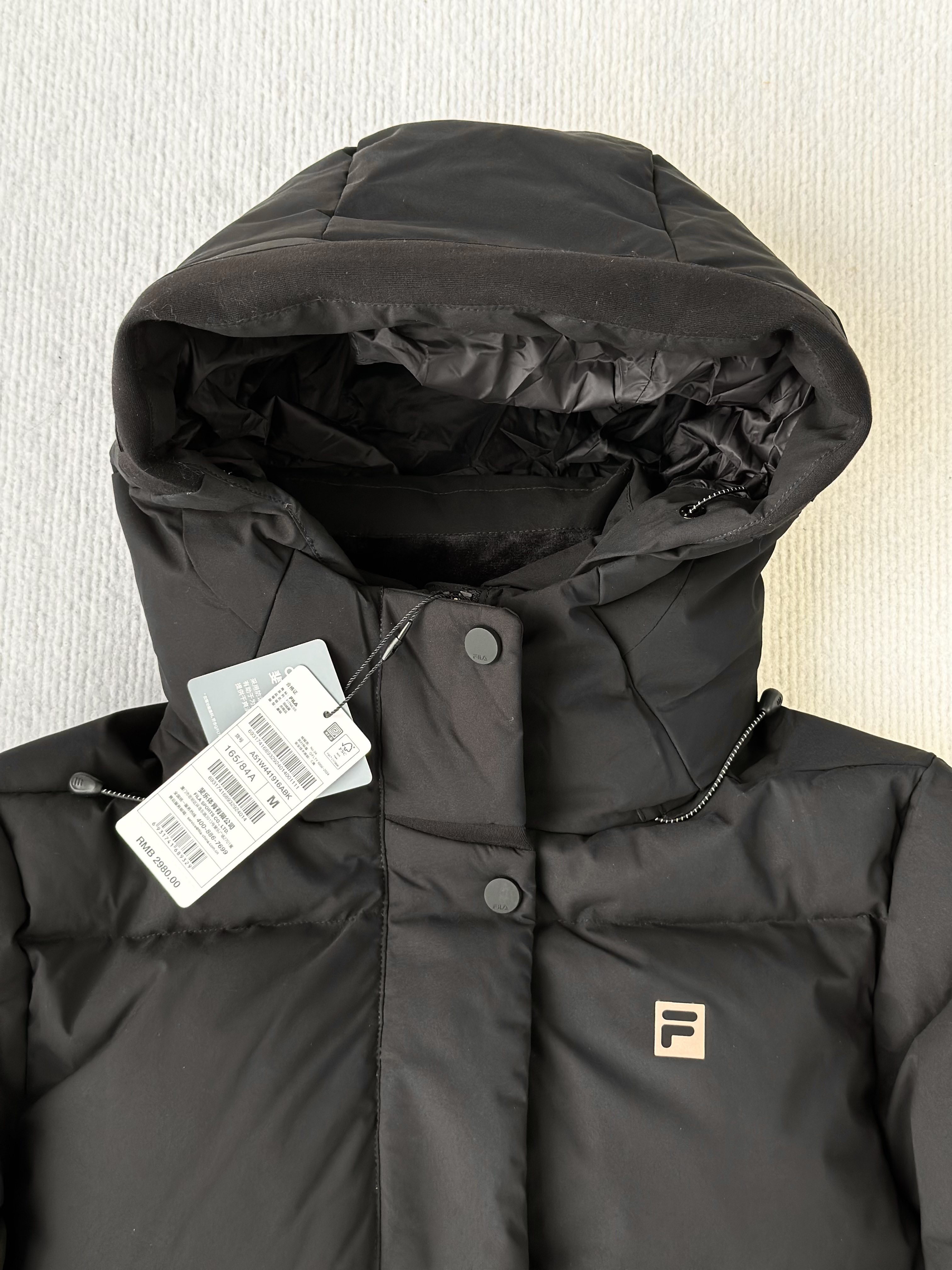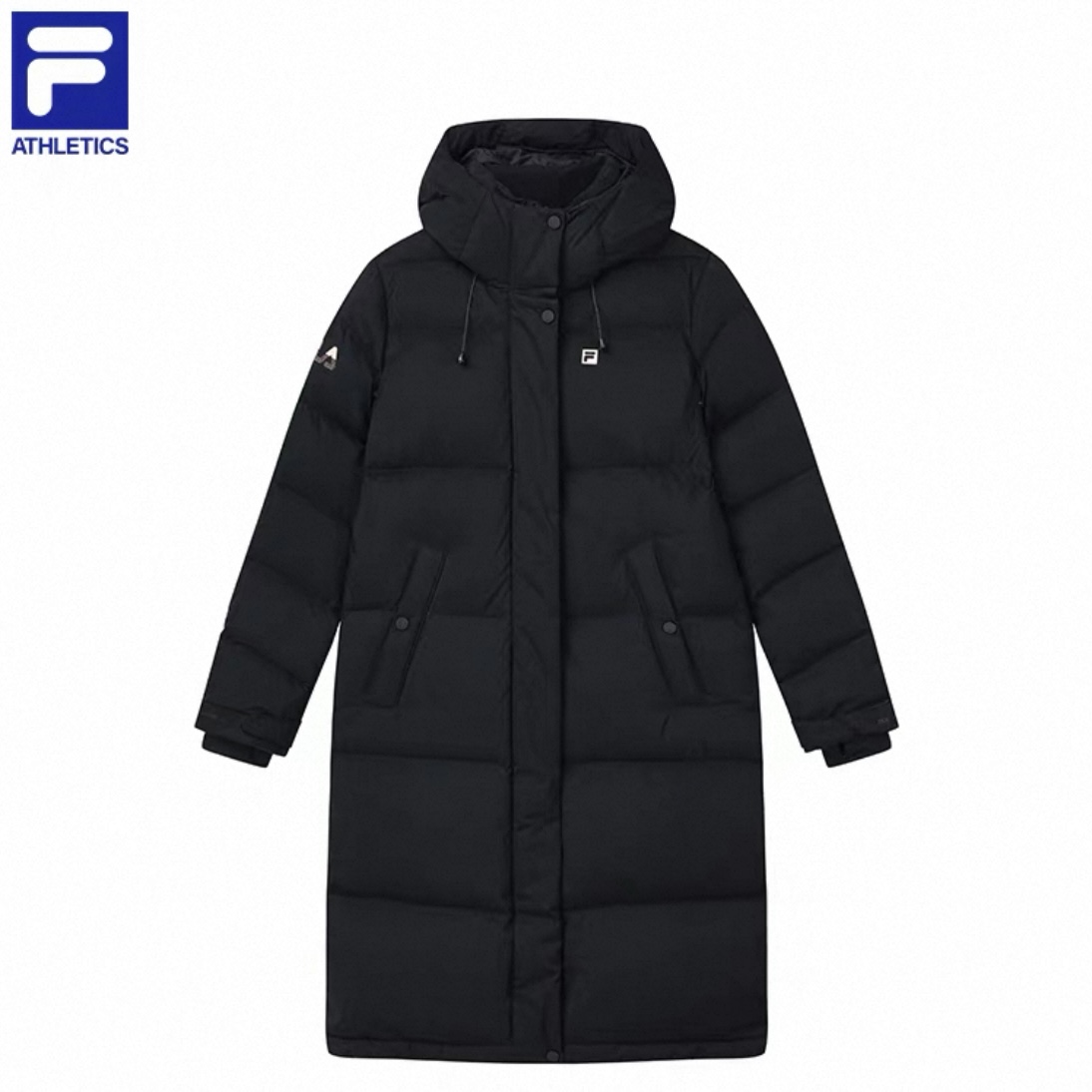渠道货!纯女款90绒!FL2025冬季新品中长款女款运动连帽羽绒服 斐家长款羽绒服