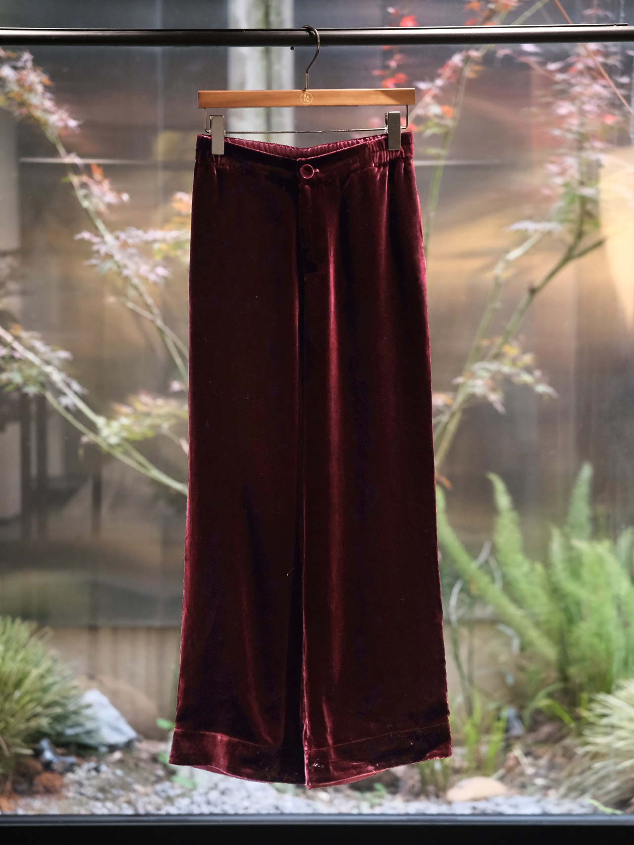 盛唐婧 | 新中式重磅真丝丝绒直筒裤-暗红色