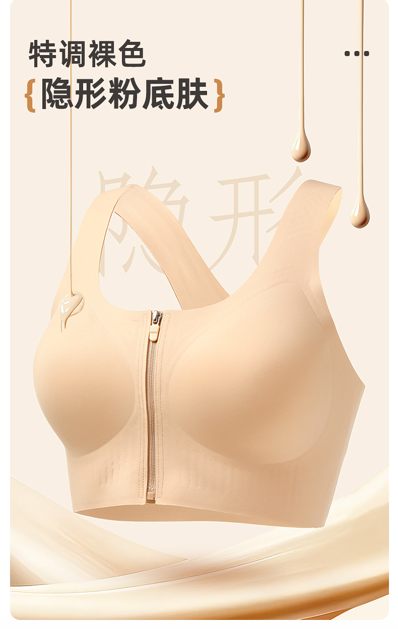 雅黛俪女士文胸便携式前拉链无痕隐形粉底液肤内衣2026年春夏新款提拉胸罩