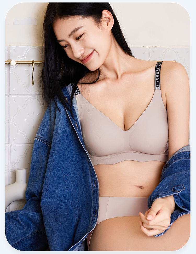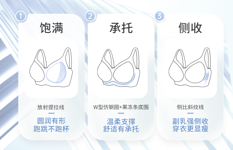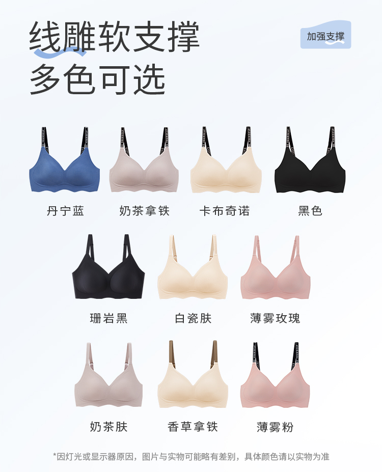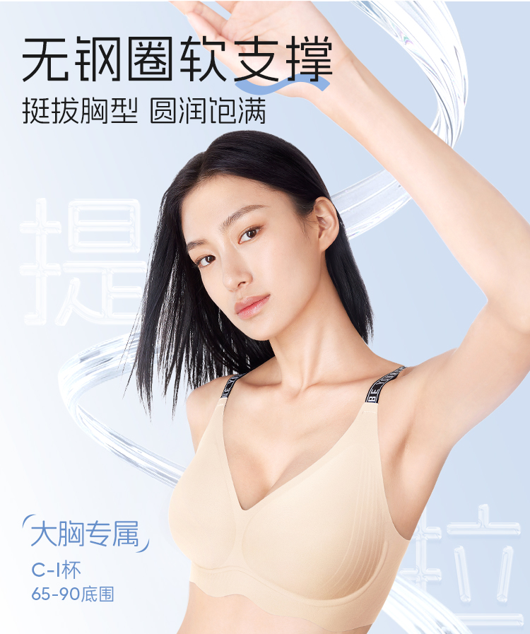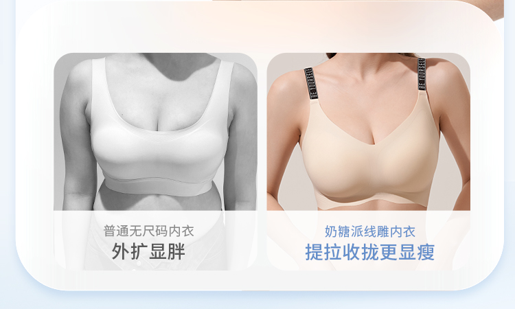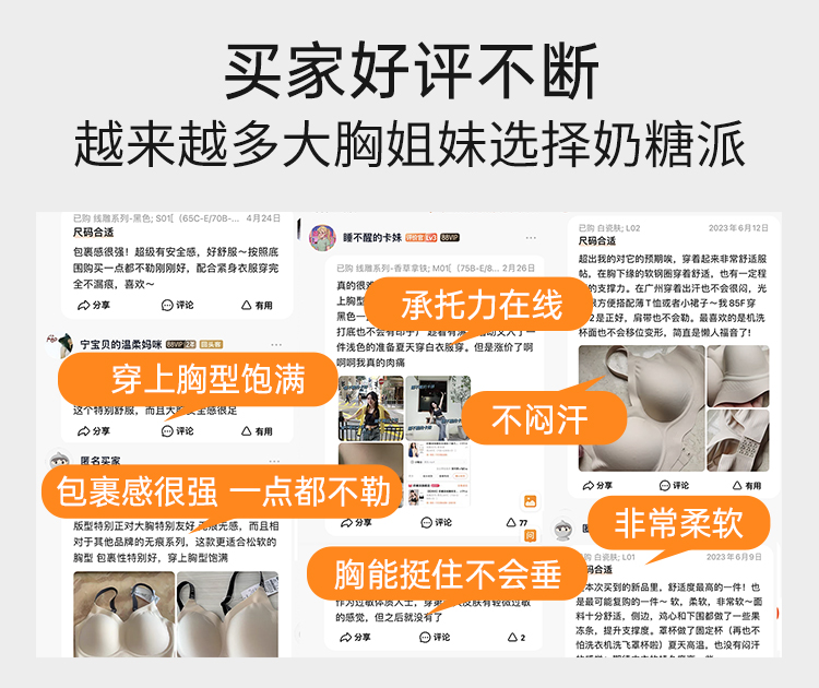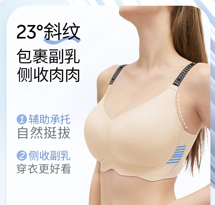 奶糖派线雕软支撑果冻条大胸侧收提拉文胸隐形无痕光面内衣