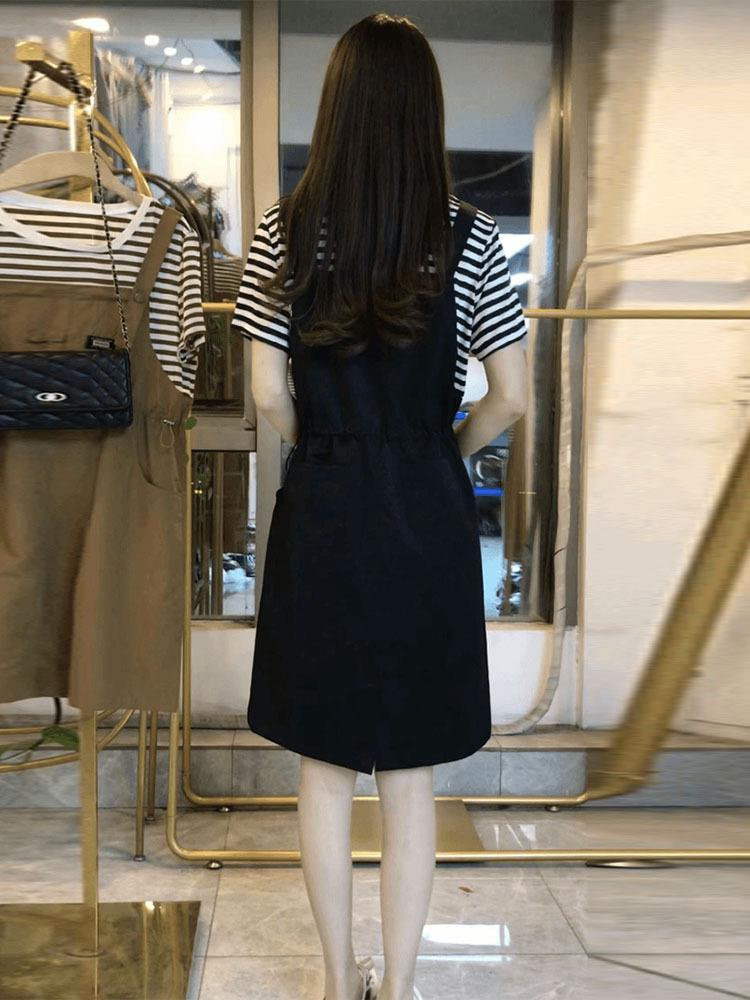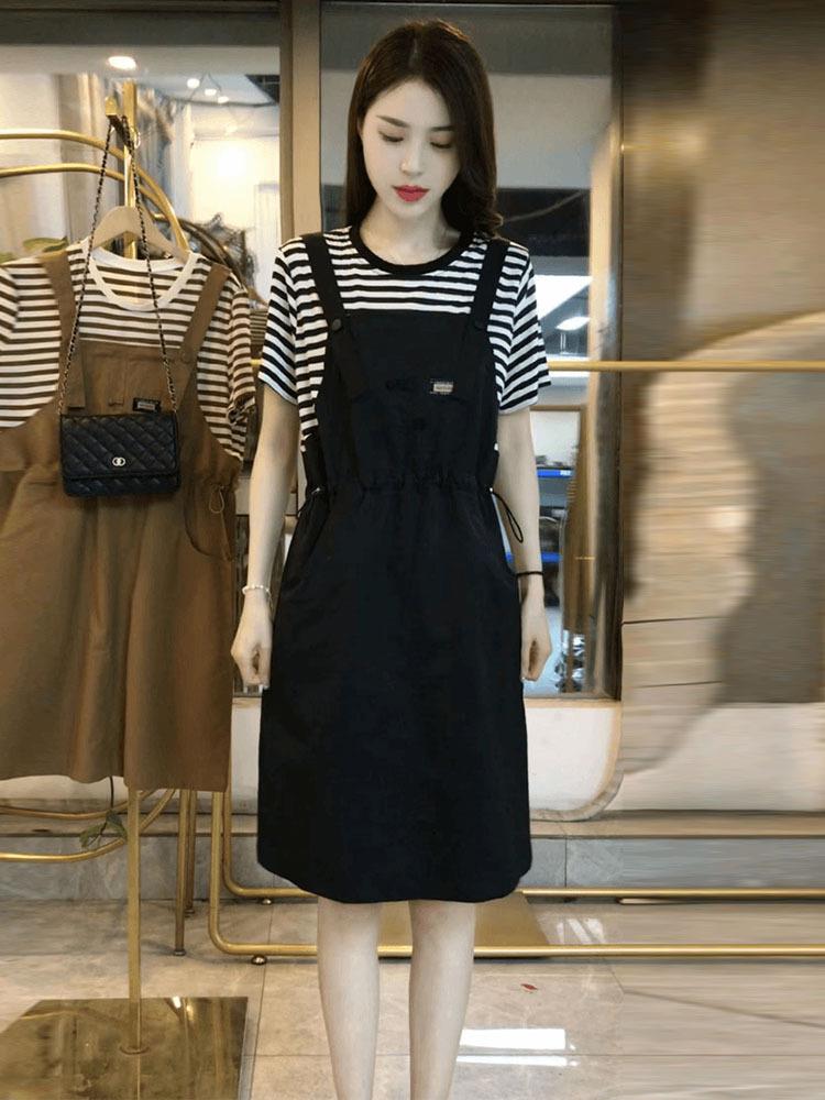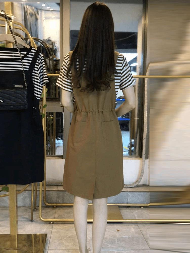 2025新款背带裙大码女装时尚休闲条纹裙子女夏季小个子中长连衣裙