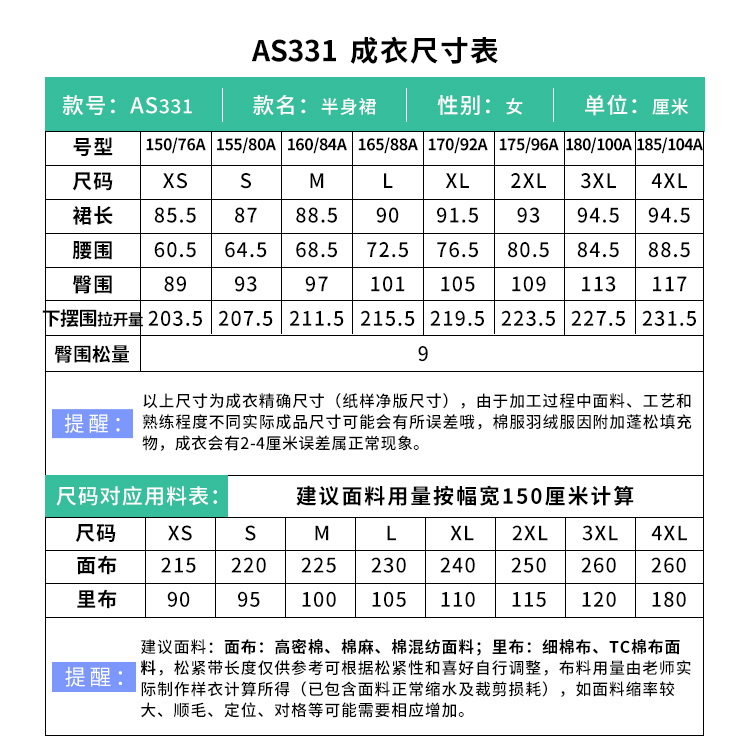 裁缝学苑AS331法式半身裙纸样女装新款高腰a字半裙伞裙长裙子样板