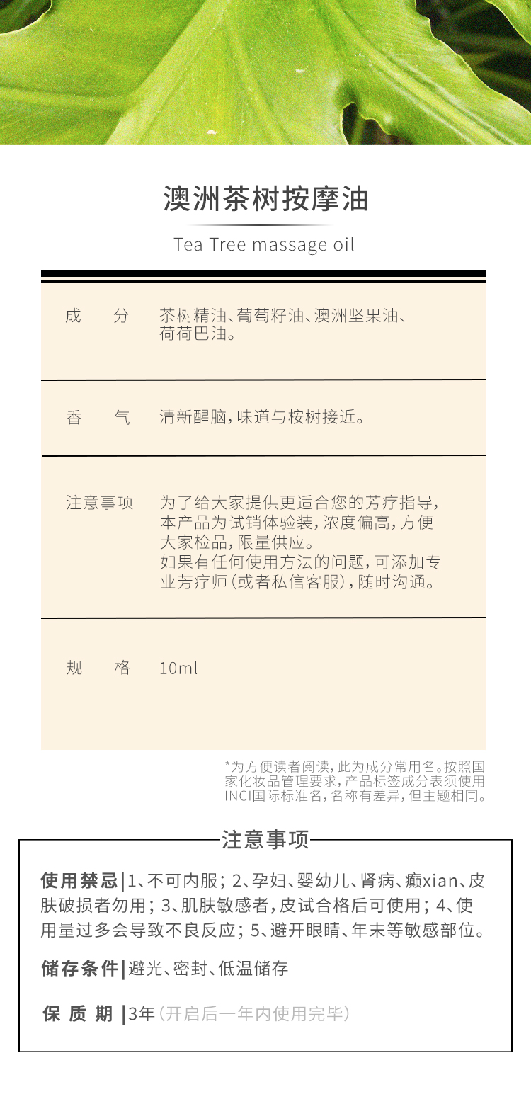 茶树10%浓度按摩油 鉴定品质 体验装 偏高浓度
