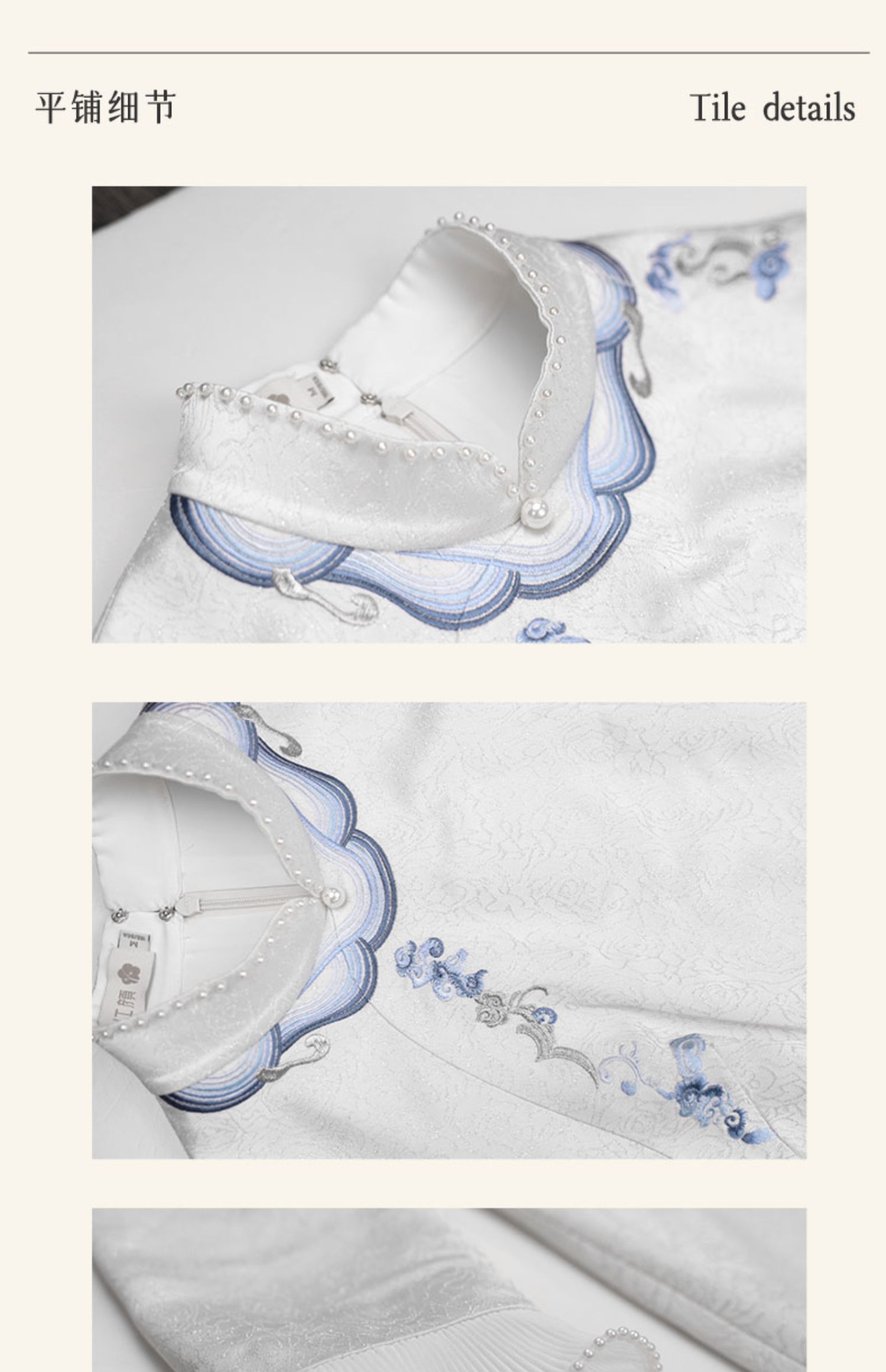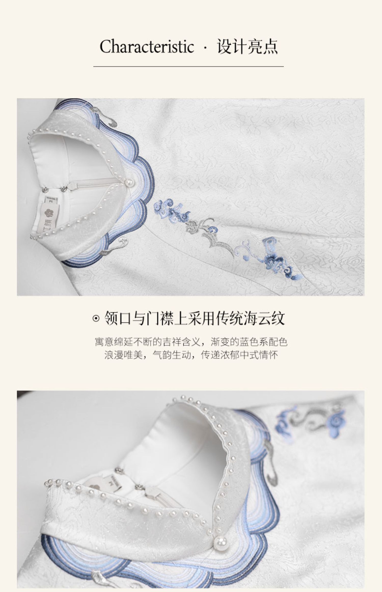 🎐领口与门襟上采用海云纹,渐变的蓝色系配色,浪漫唯美,气韵生动~~