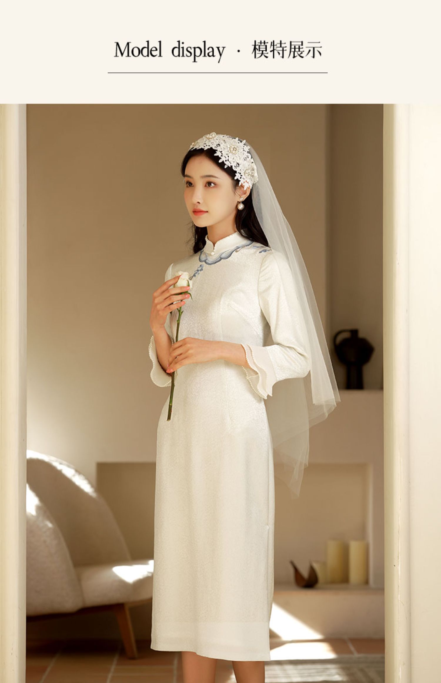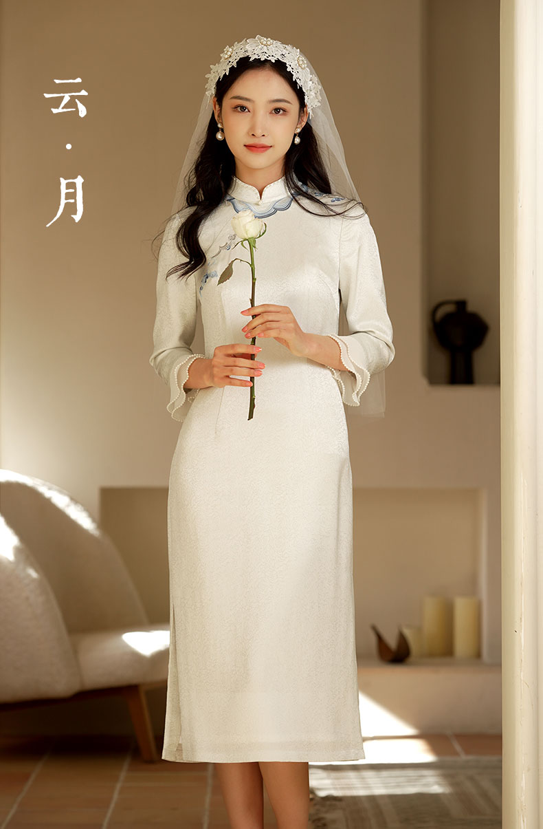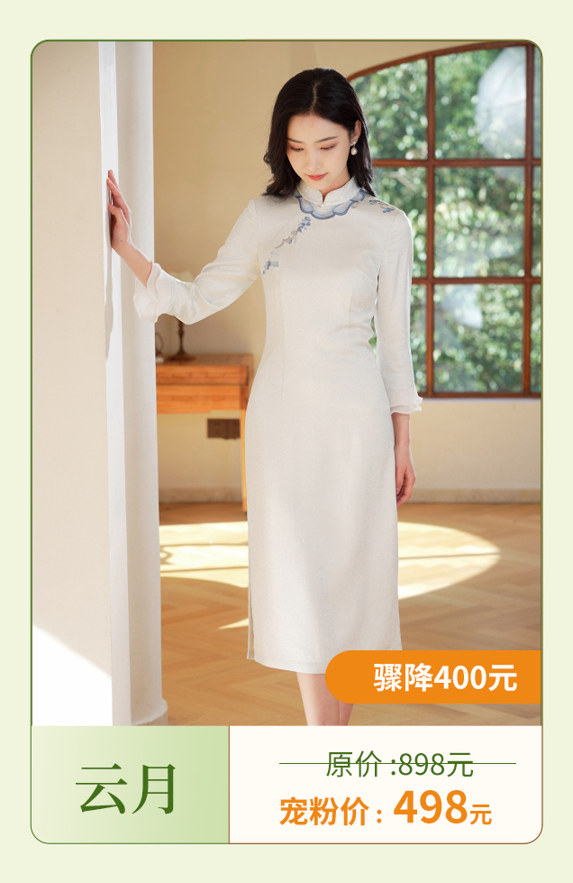逸红颜云月2025年春季新款旗袍改良版连衣裙女七分袖立领刺绣旗袍