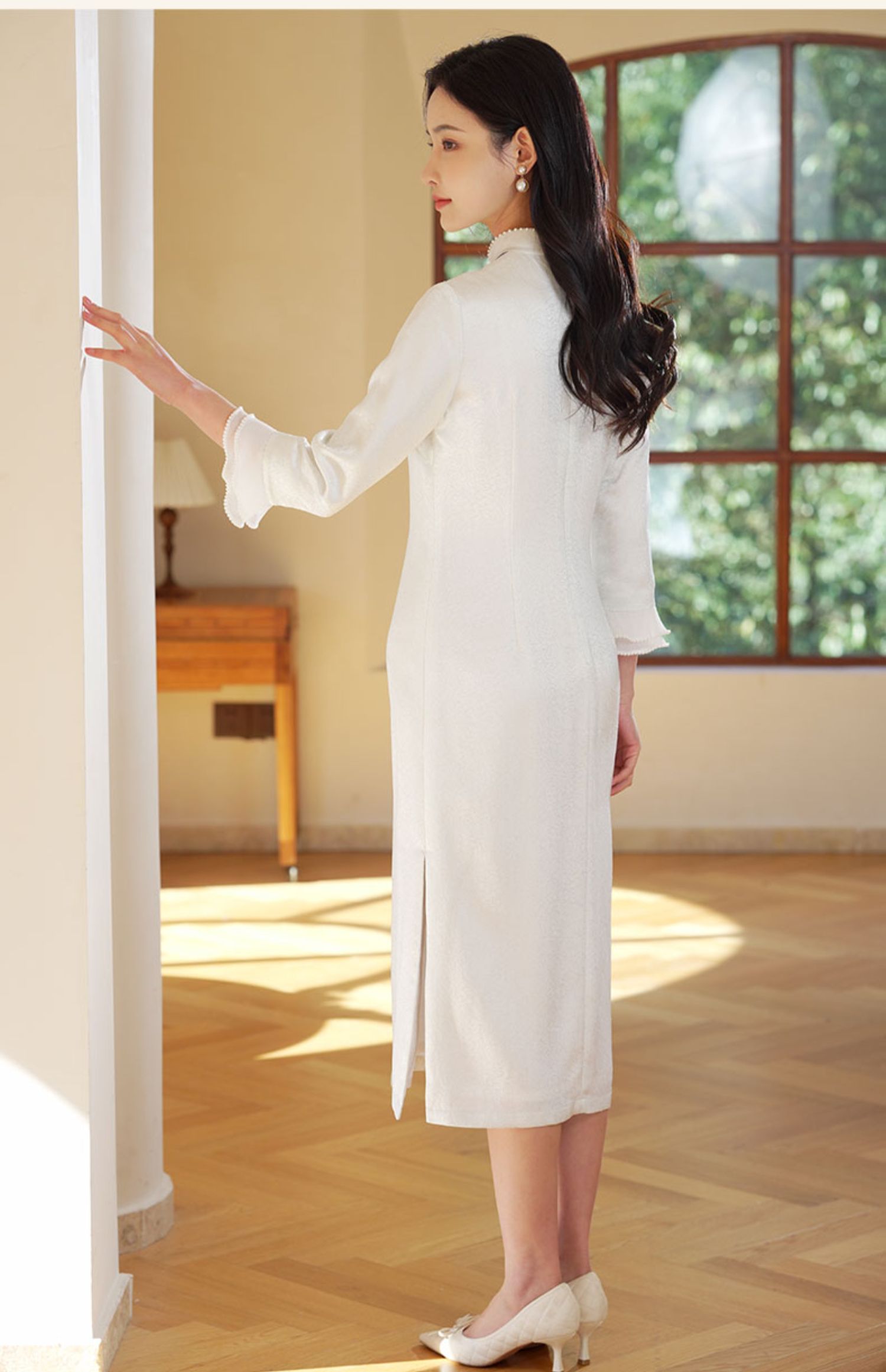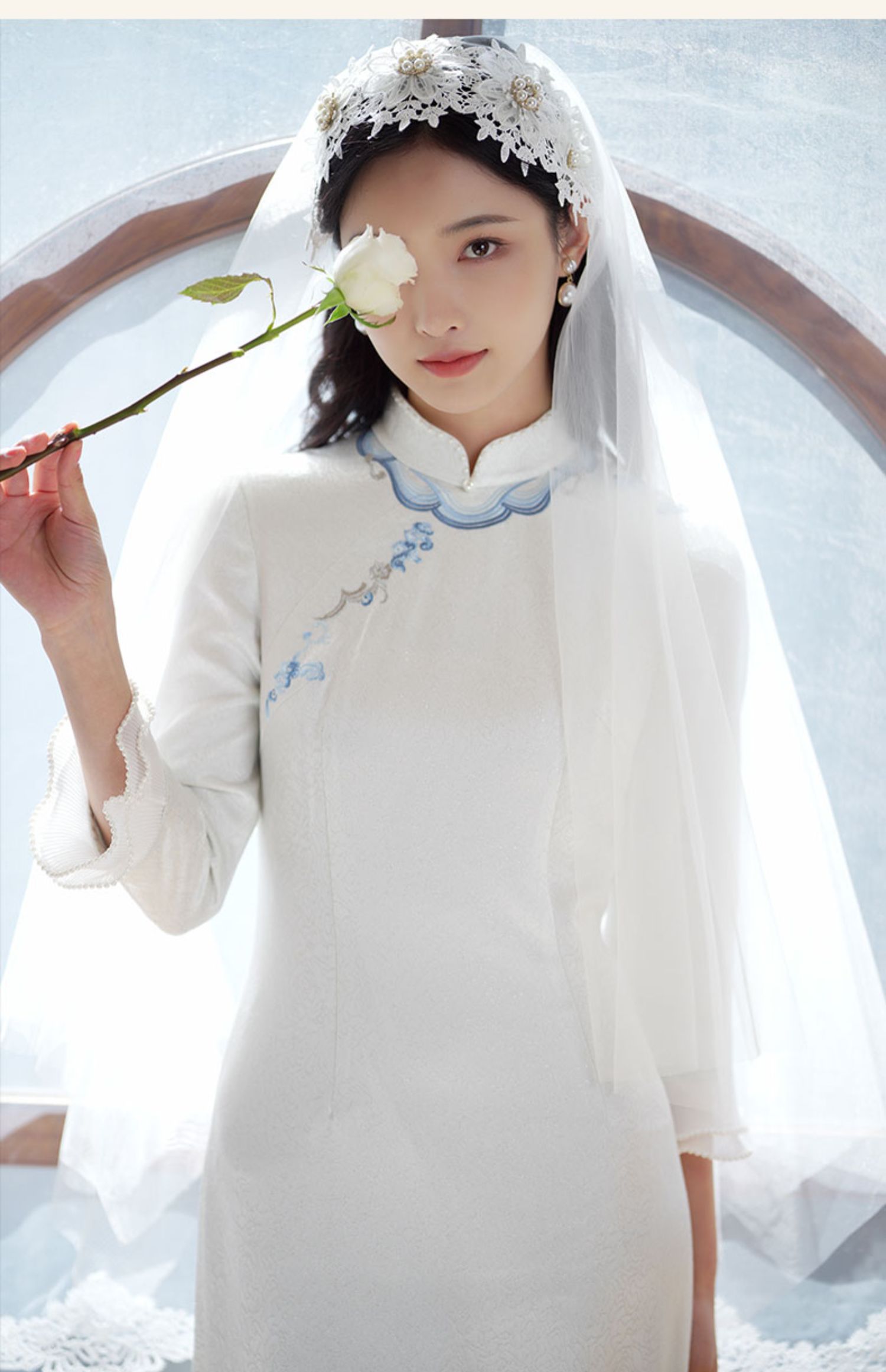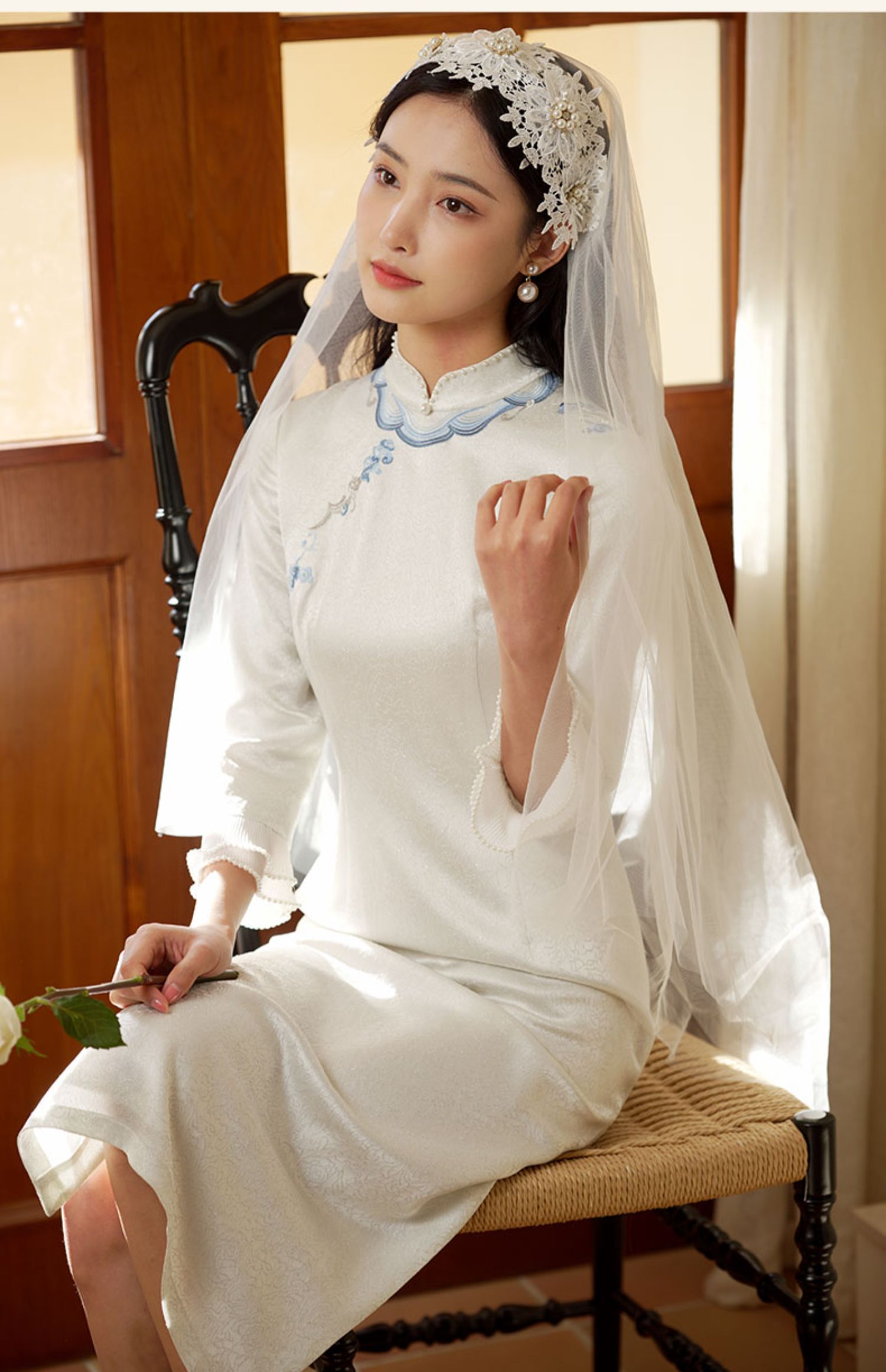 逸红颜云月2025年春季新款旗袍改良版连衣裙女七分袖立领刺绣旗袍