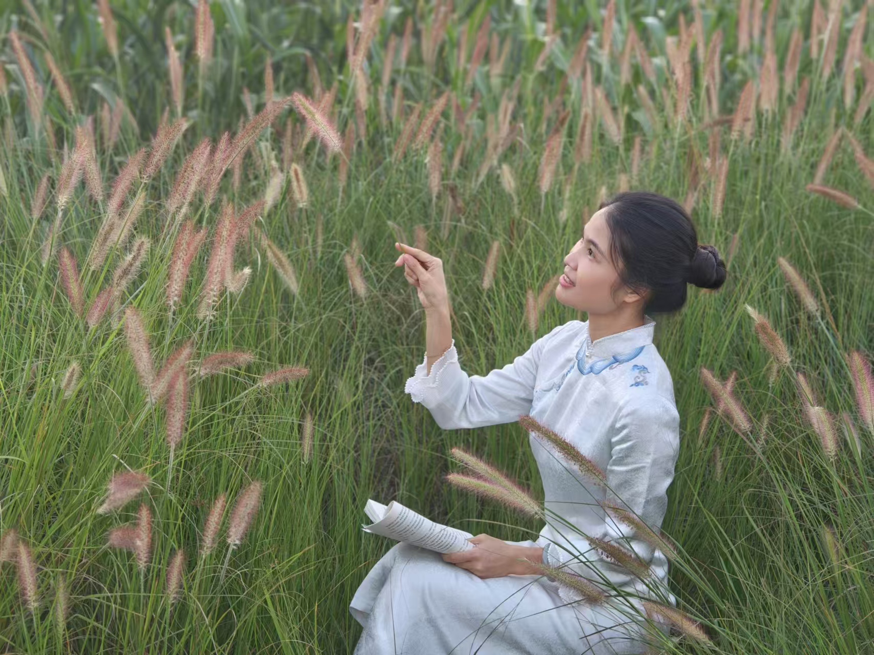 🎐通身迷人的醋酸缎,夹着细细的银丝