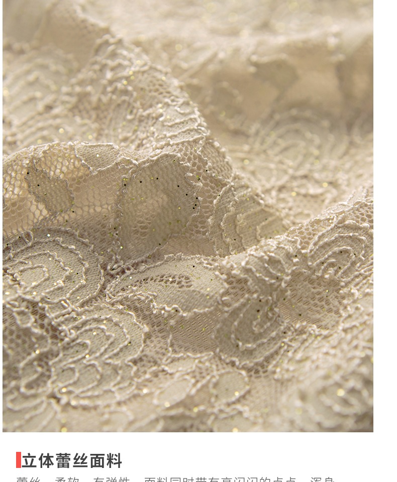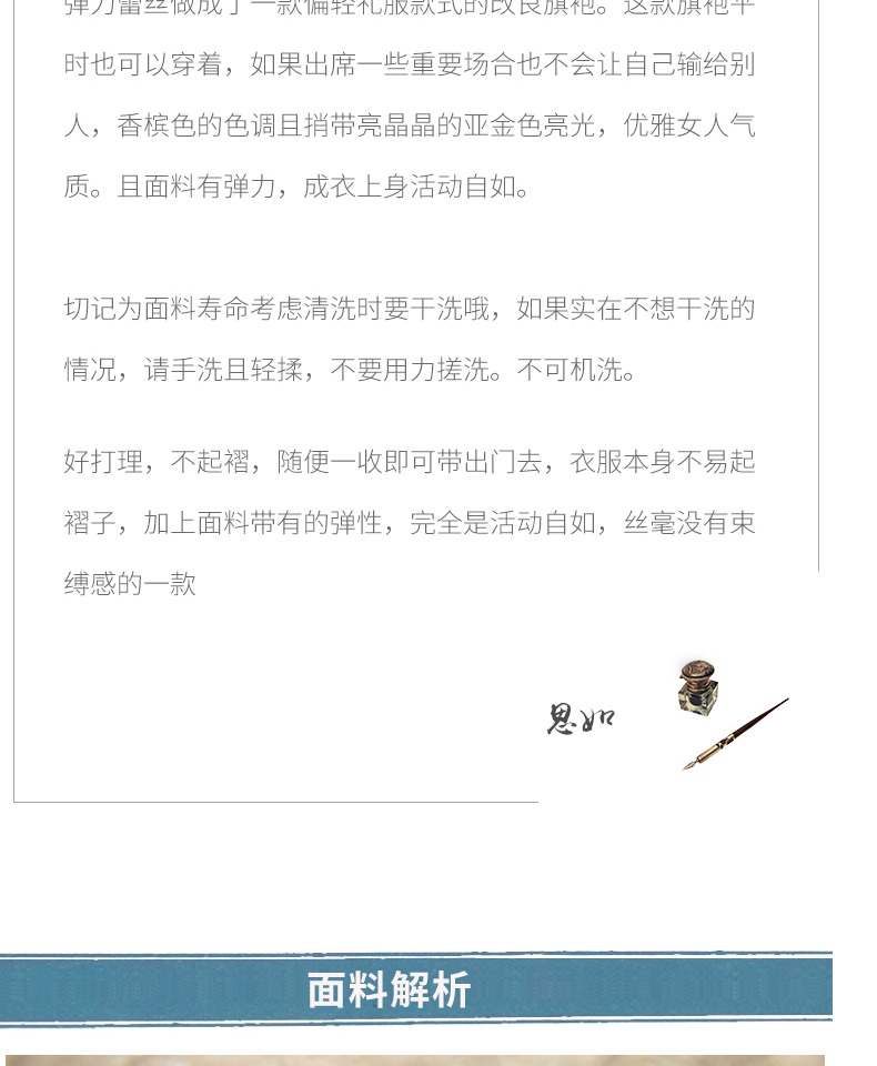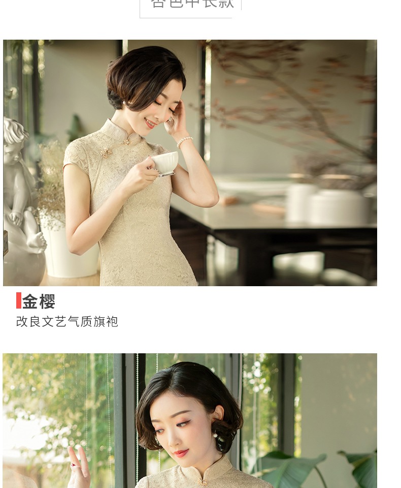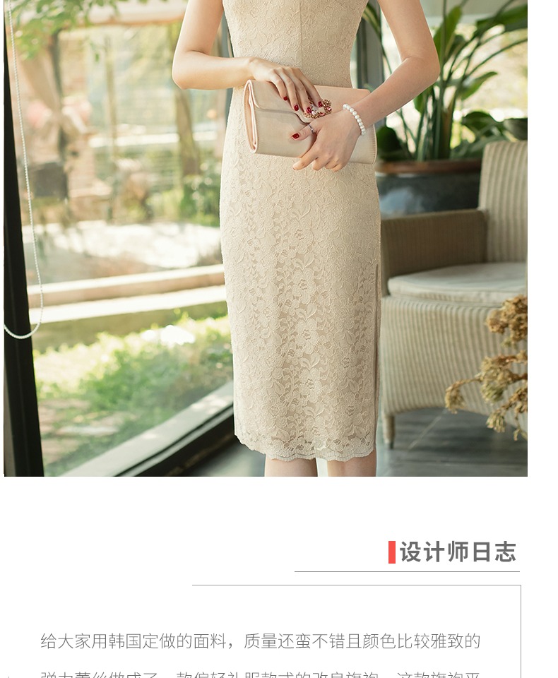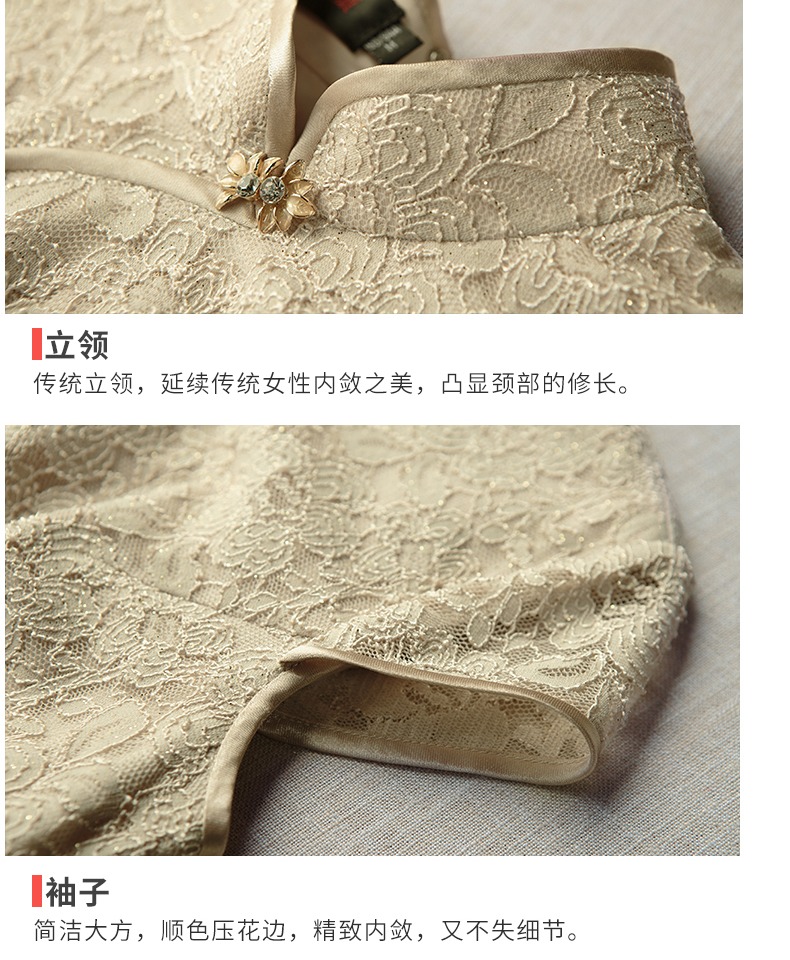 2019夏款民国风复古香槟色气质蕾丝改良旗袍名媛连衣裙逸红颜金樱