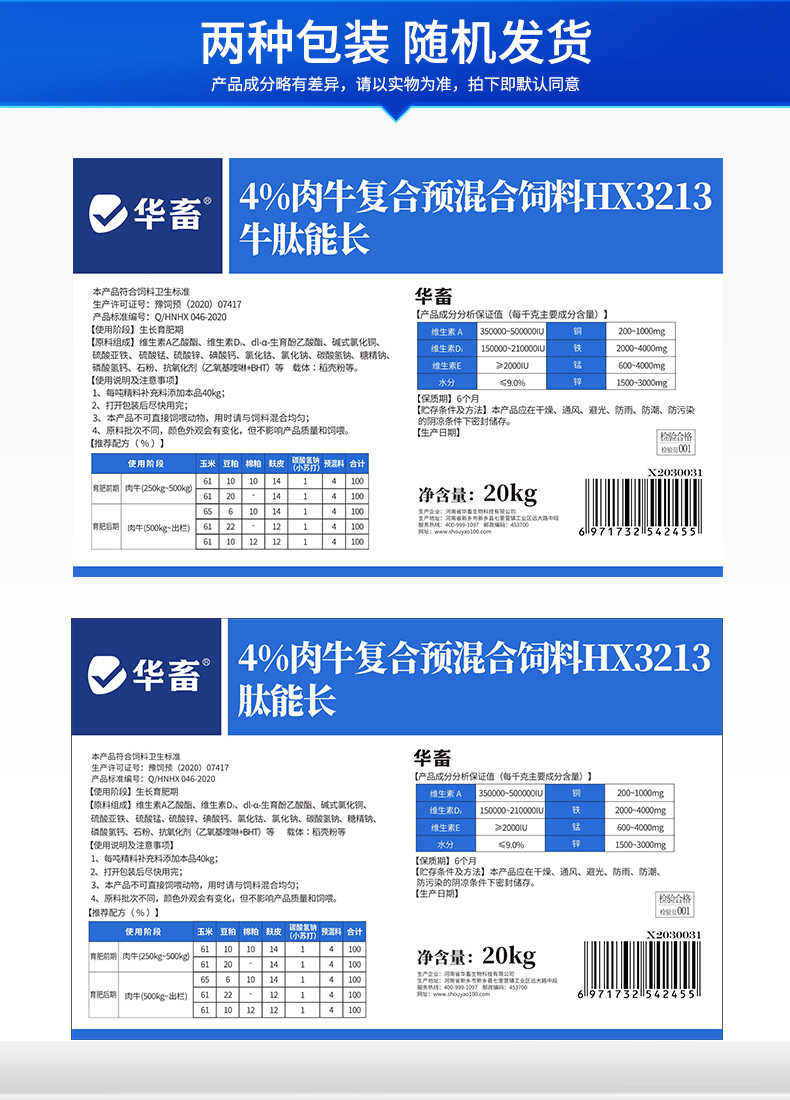 华畜牛肽能长(4%肉牛育肥)复合预混合饲料20kg猛吃猛涨
