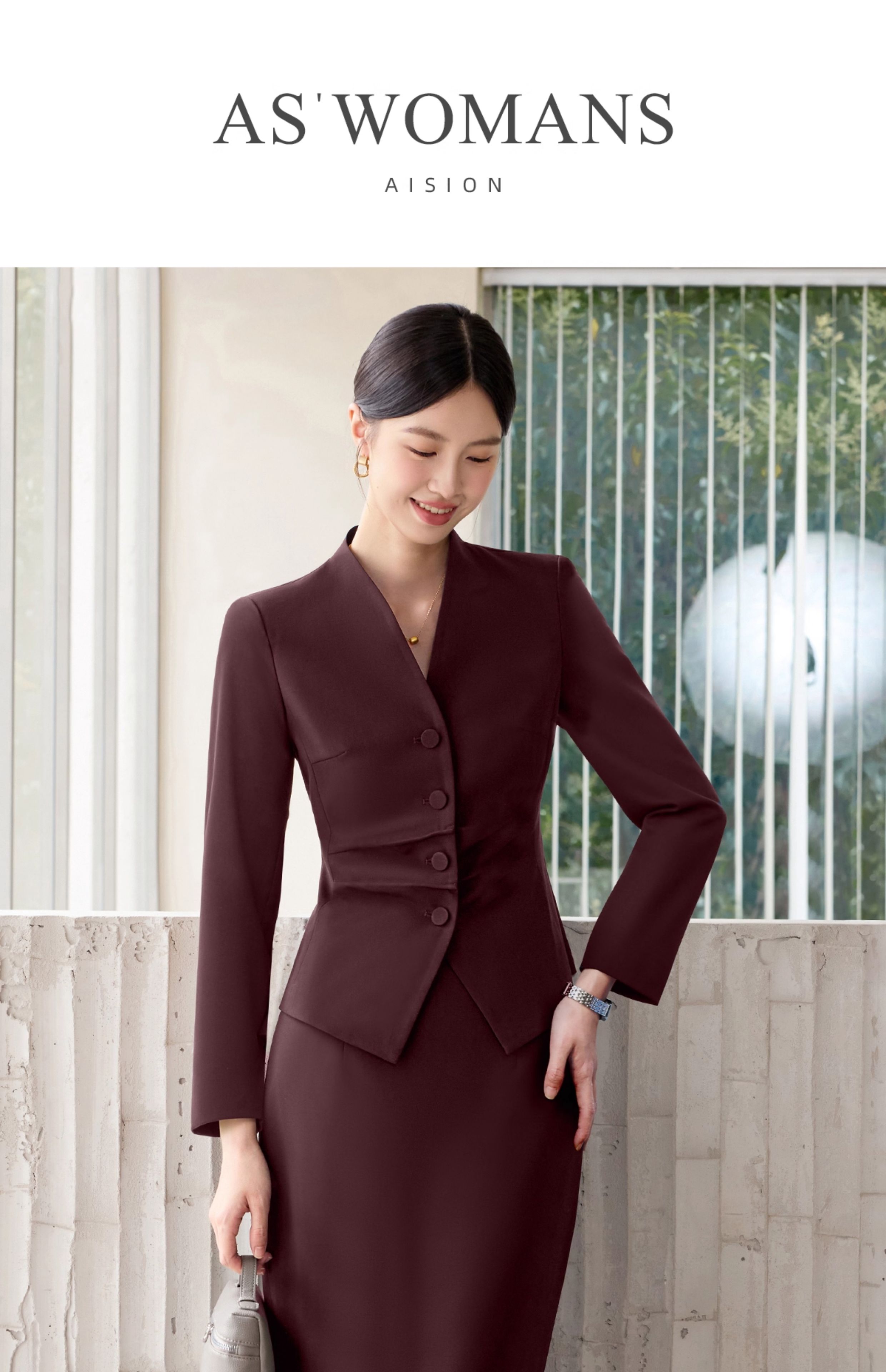 艾尚臣职业装套装女2025新款红色西装两件套正式场合主持人工作服
