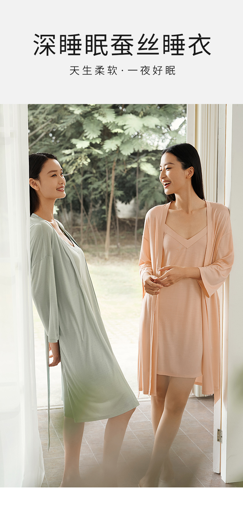 【深睡眠蚕丝睡衣】金三塔100%桑蚕丝睡裙女真丝针织吊带裙/睡袍新品 YZFEA302/YZFEA101
