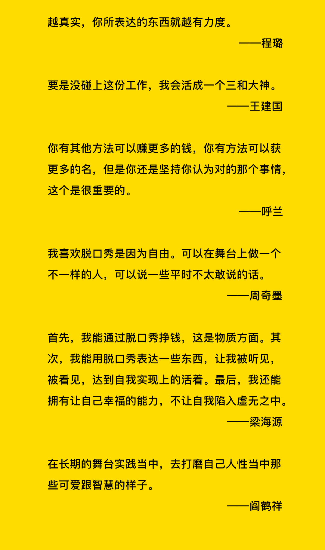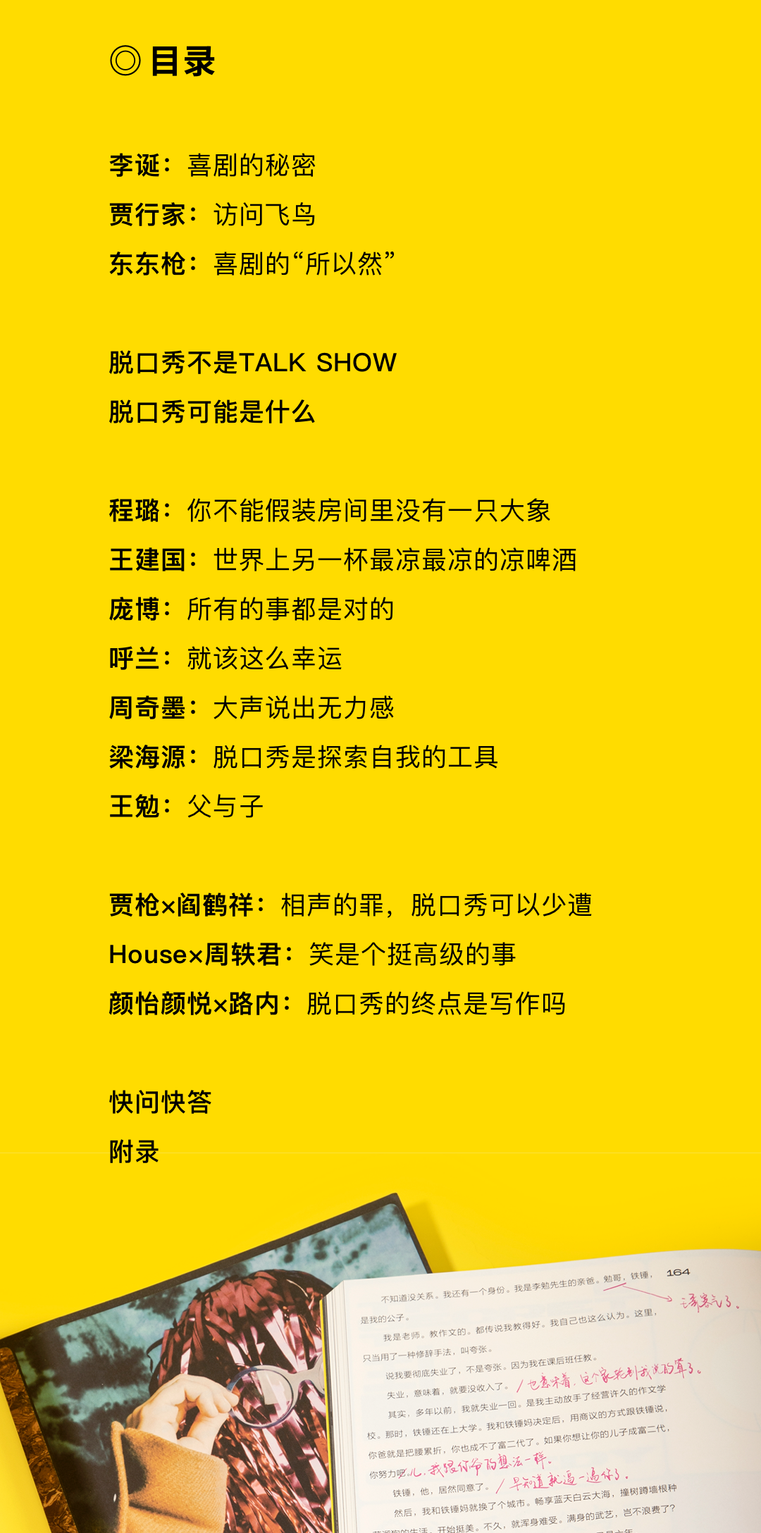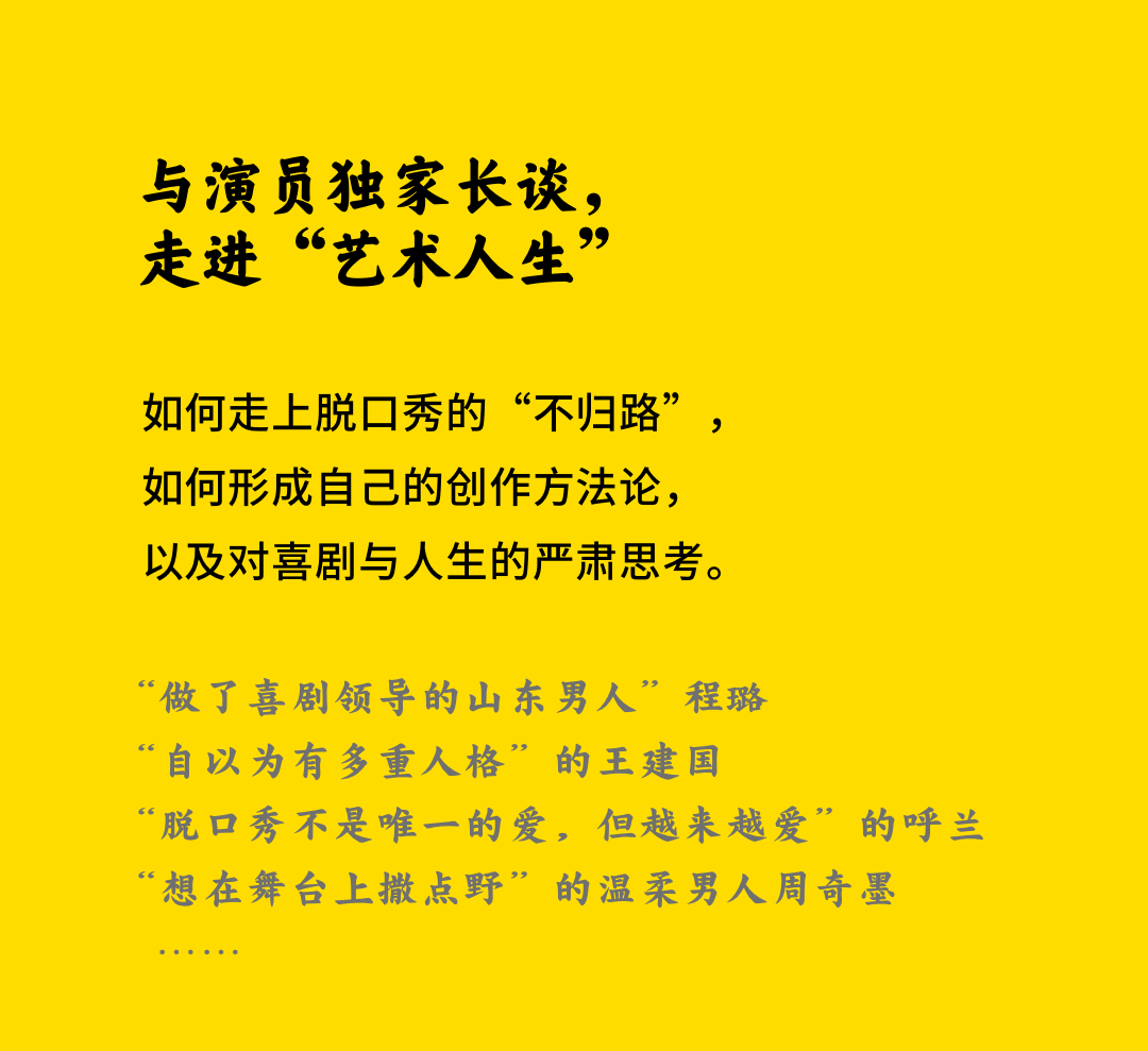 这是国内首次尝试以专书的体量和深度,从艺术创作、行业发展、大众文化、社会变迁等多个维度探讨“脱口秀”之于“喜剧”这一命题,我们期待它只是一个开始。