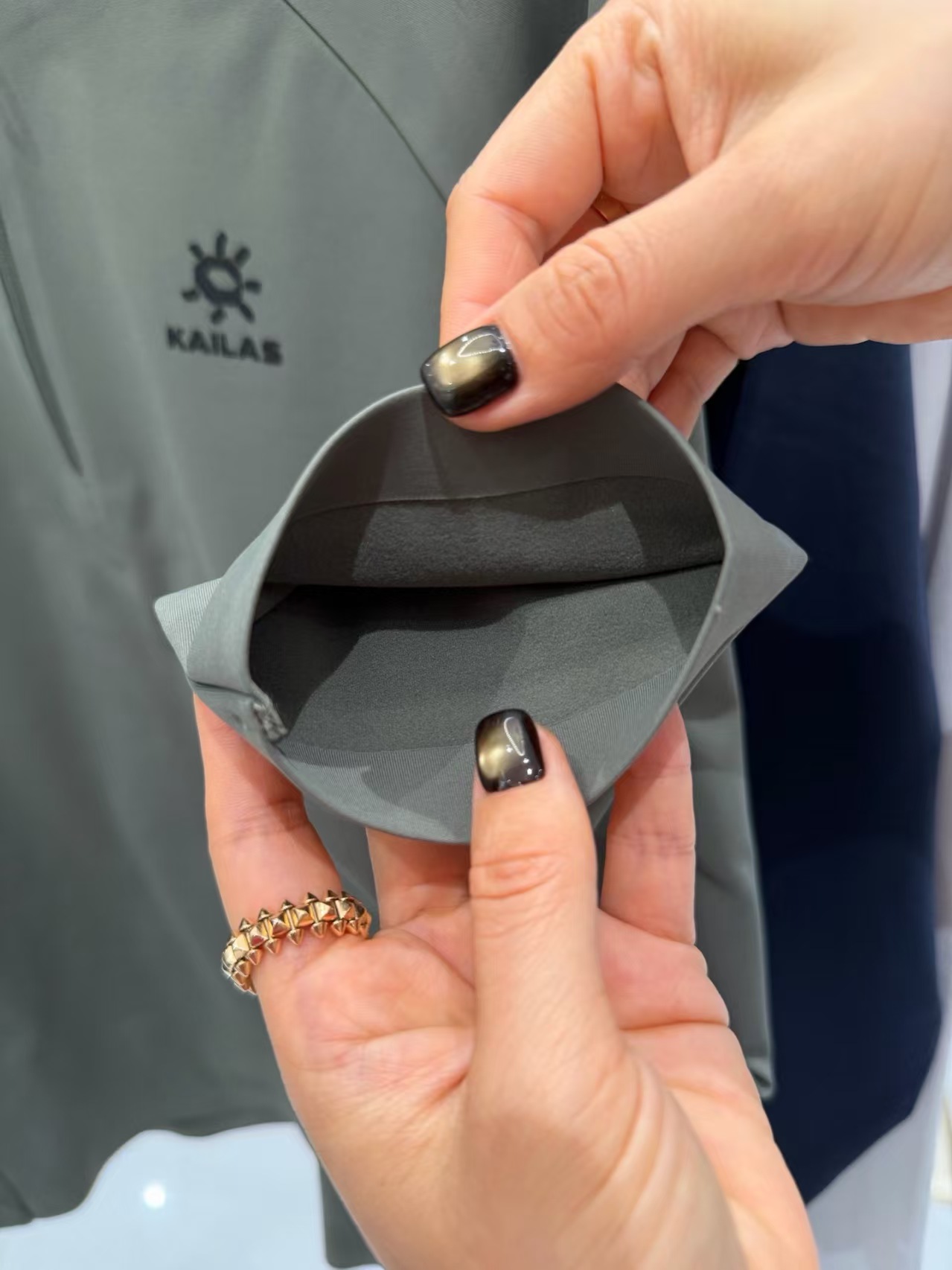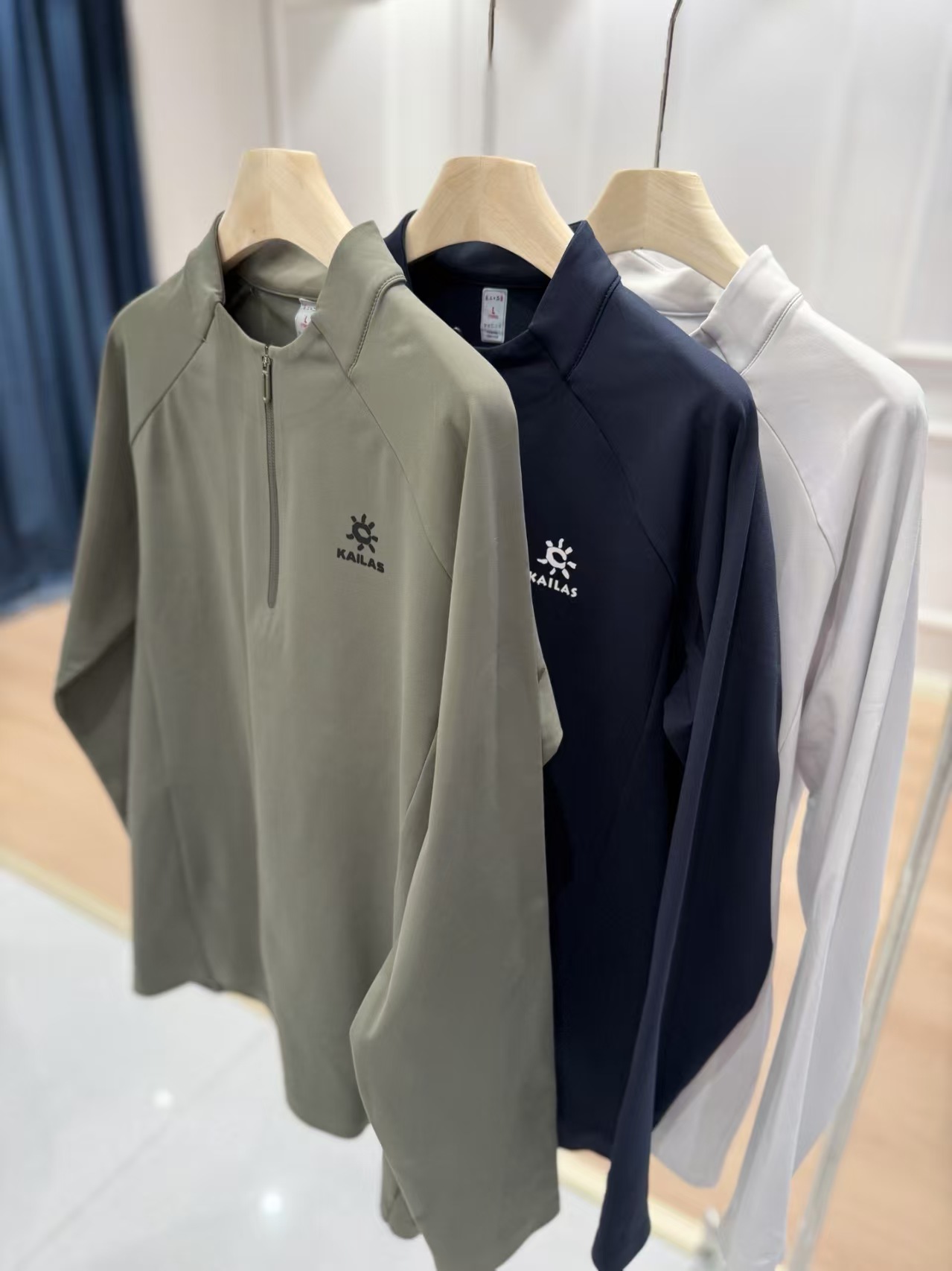 上衣是专业的氨纶,弹性透气,带专业的户外运动弹性。