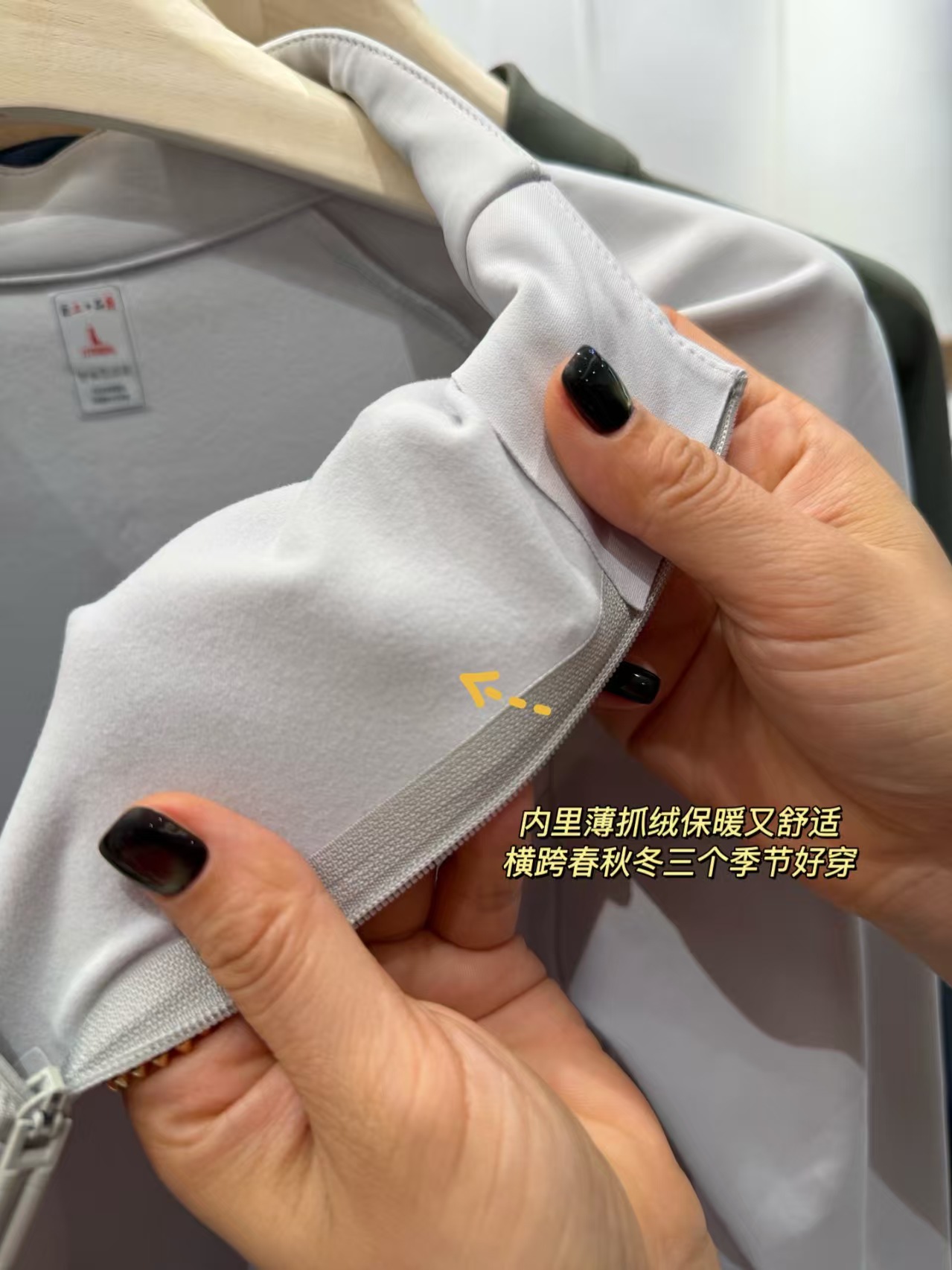 混纺抓绒面料保暖锁温,抓绒浓密却不厚重,保暖又不臃肿。