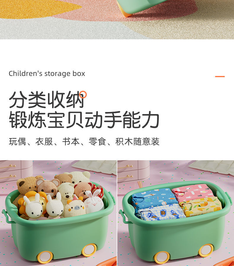 儿童玩具收纳箱带轮子家用塑料收纳盒子零食衣服大容量可爱整理箱