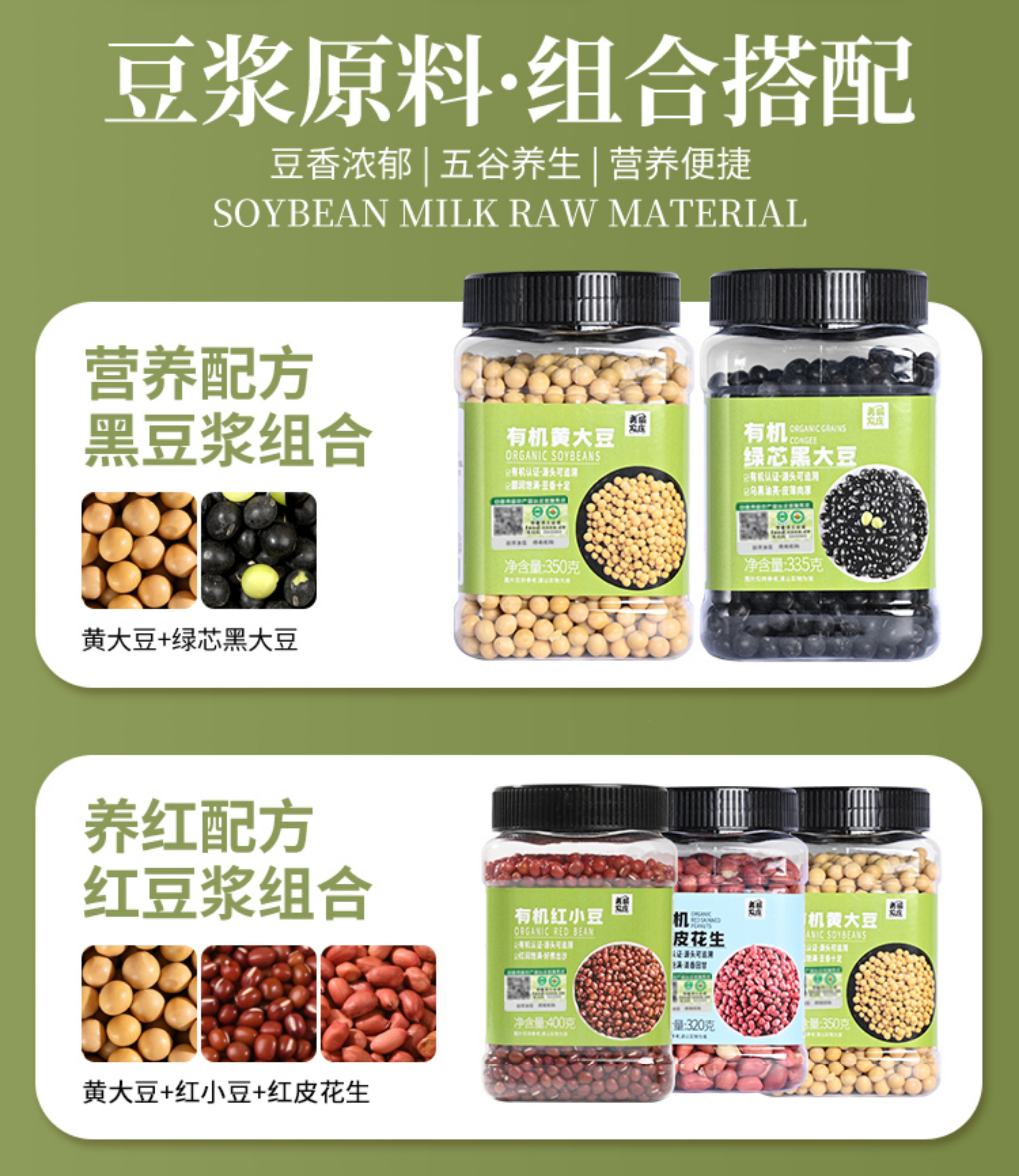 美丽农庄有机豆浆豆组合 黄豆黑豆生五谷杂粮早餐迷糊破壁机食材