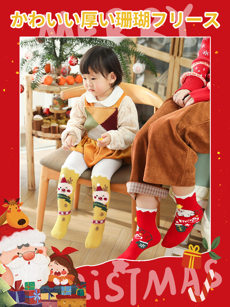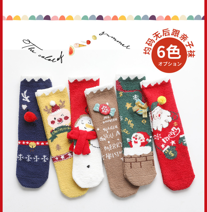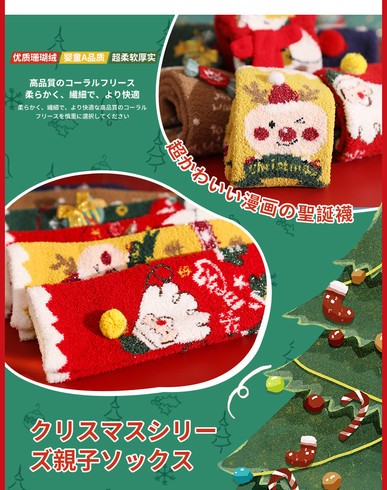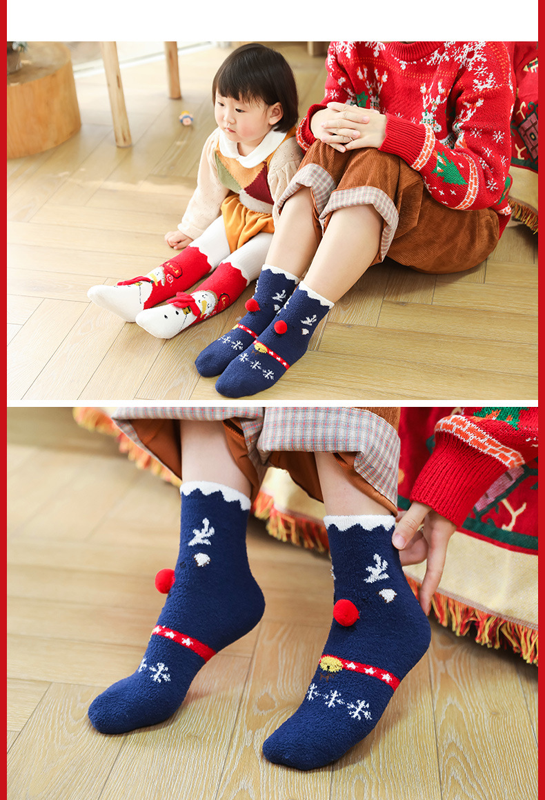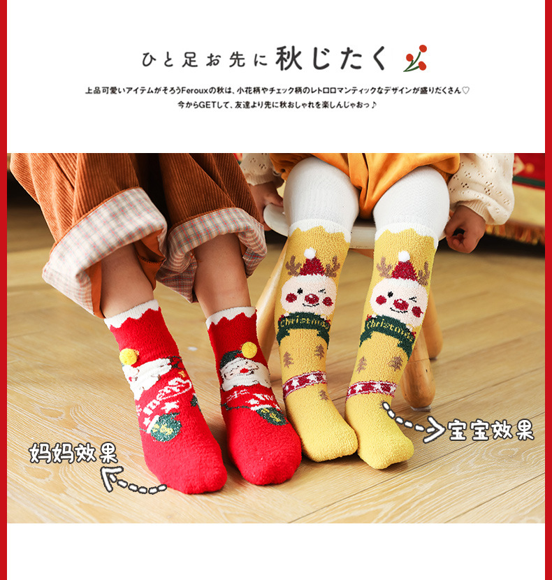 【圣诞亲子款无跟设计】秋冬珊瑚绒加厚儿童圣诞袜亲子袜中筒卡通配饰宝宝袜子单双包装