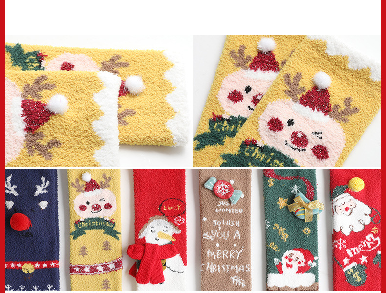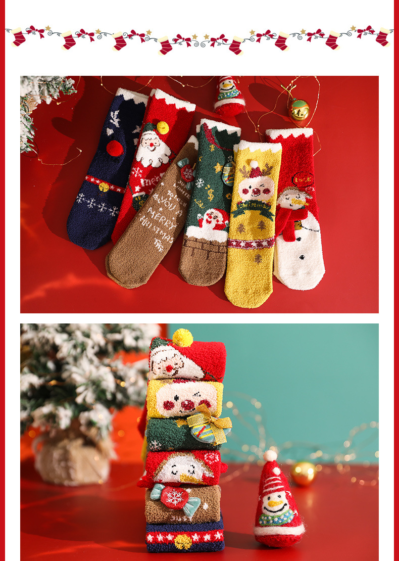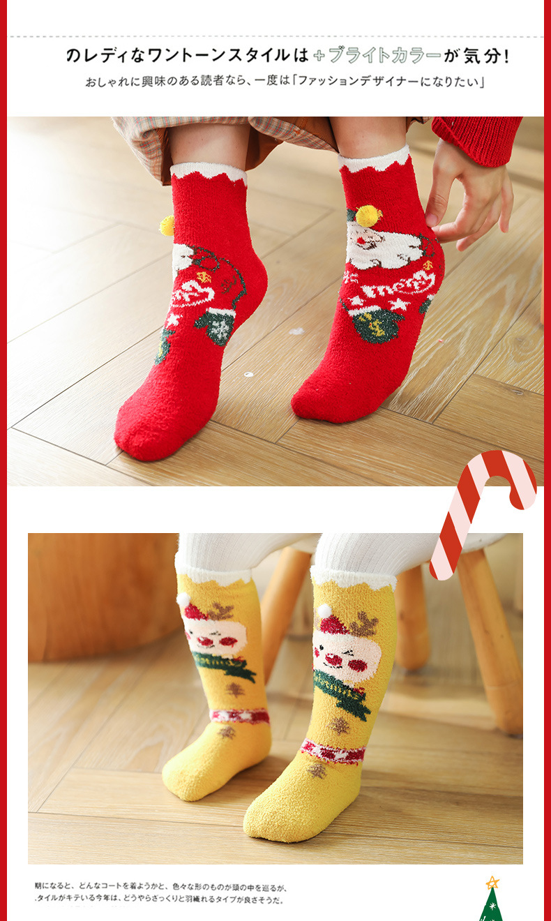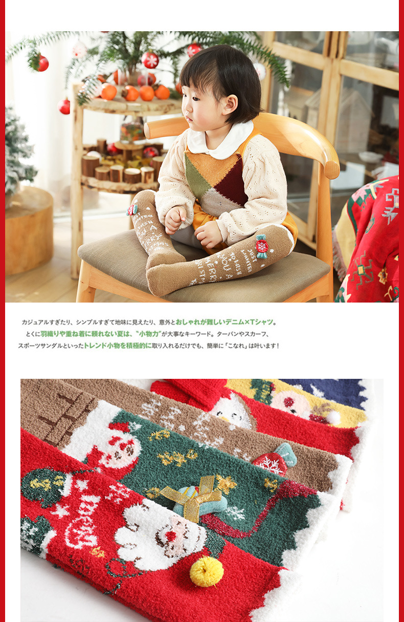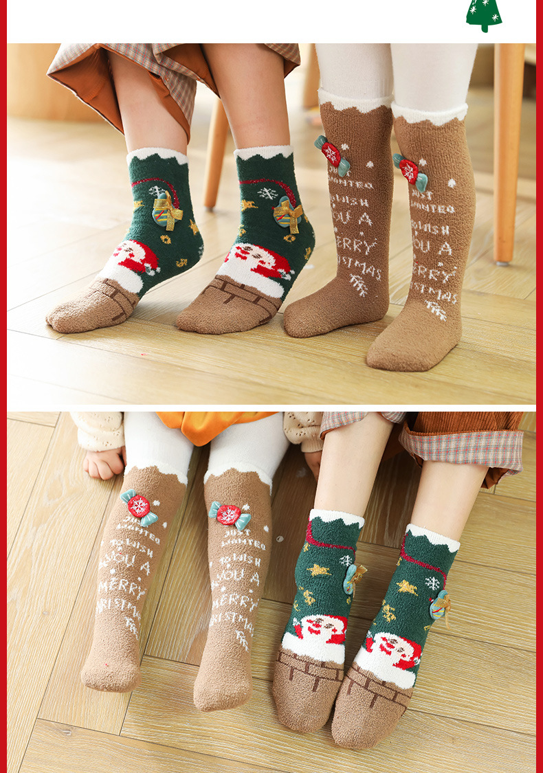 【圣诞亲子款无跟设计】秋冬珊瑚绒加厚儿童圣诞袜亲子袜中筒卡通配饰宝宝袜子单双包装
