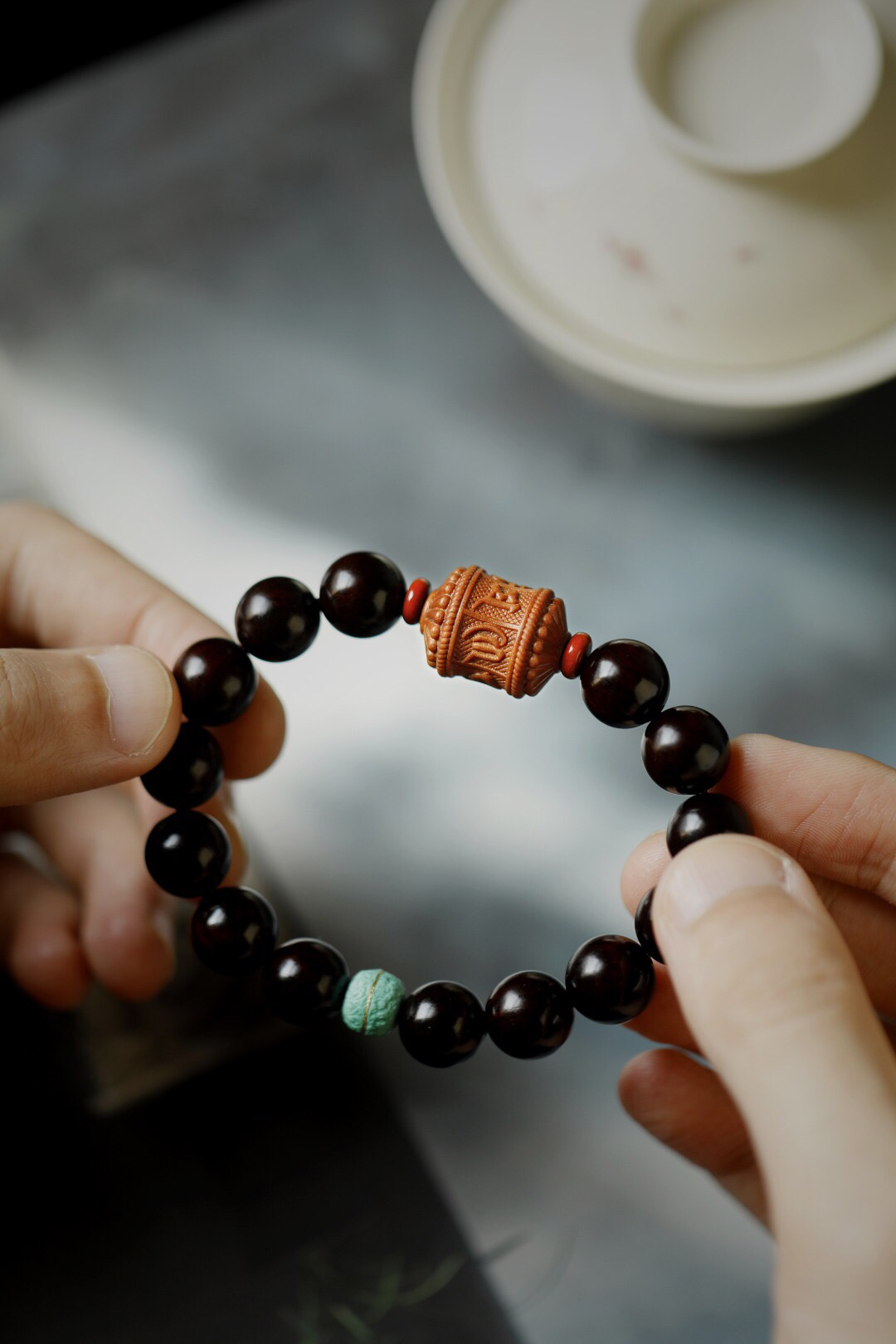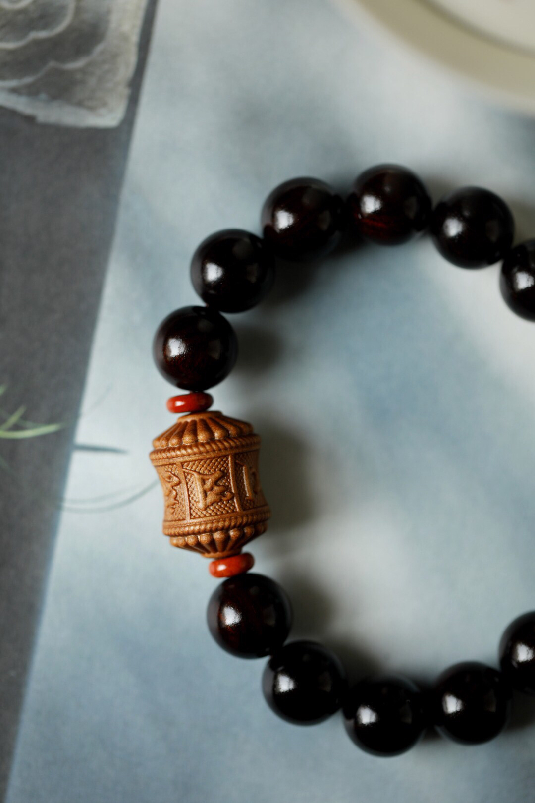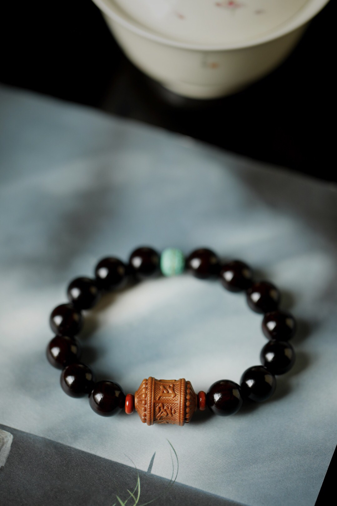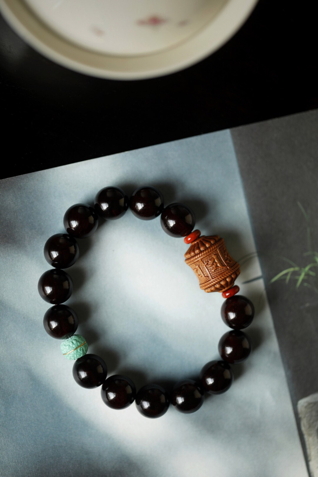 小叶紫檀 原创 油脂由内渗出,包浆晶莹, 珍宝相配,更添富丽色彩; 设计高贵典雅,佩戴大气。