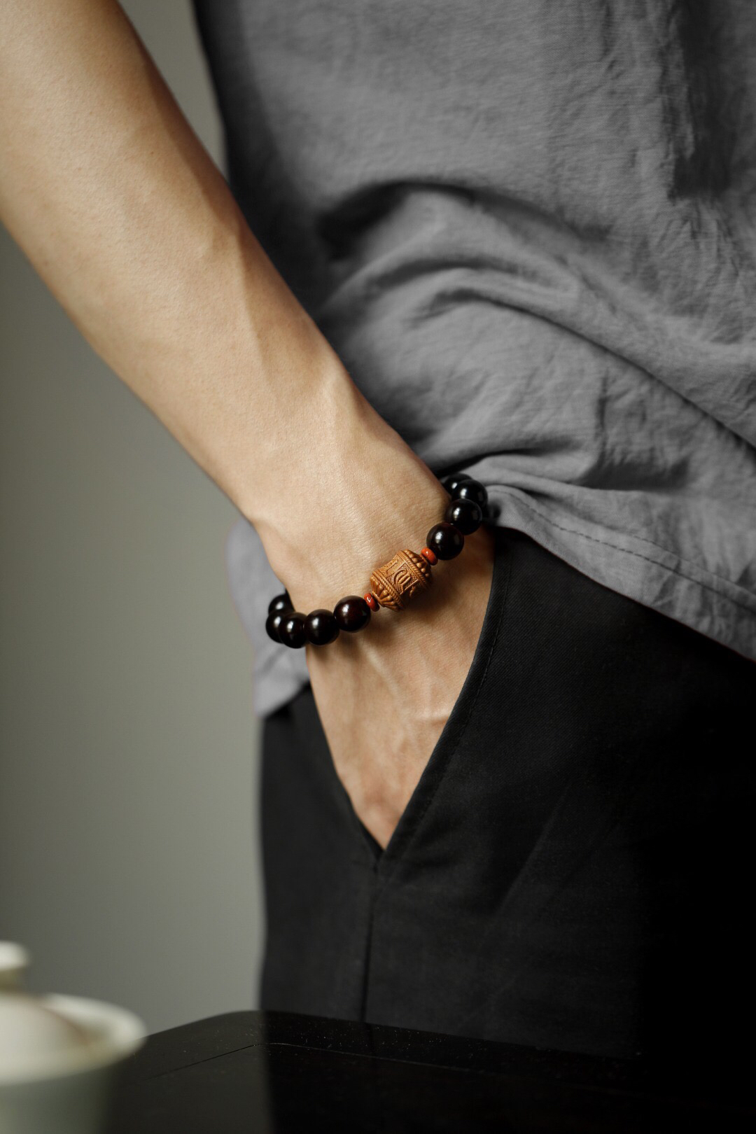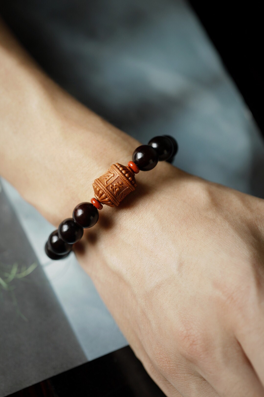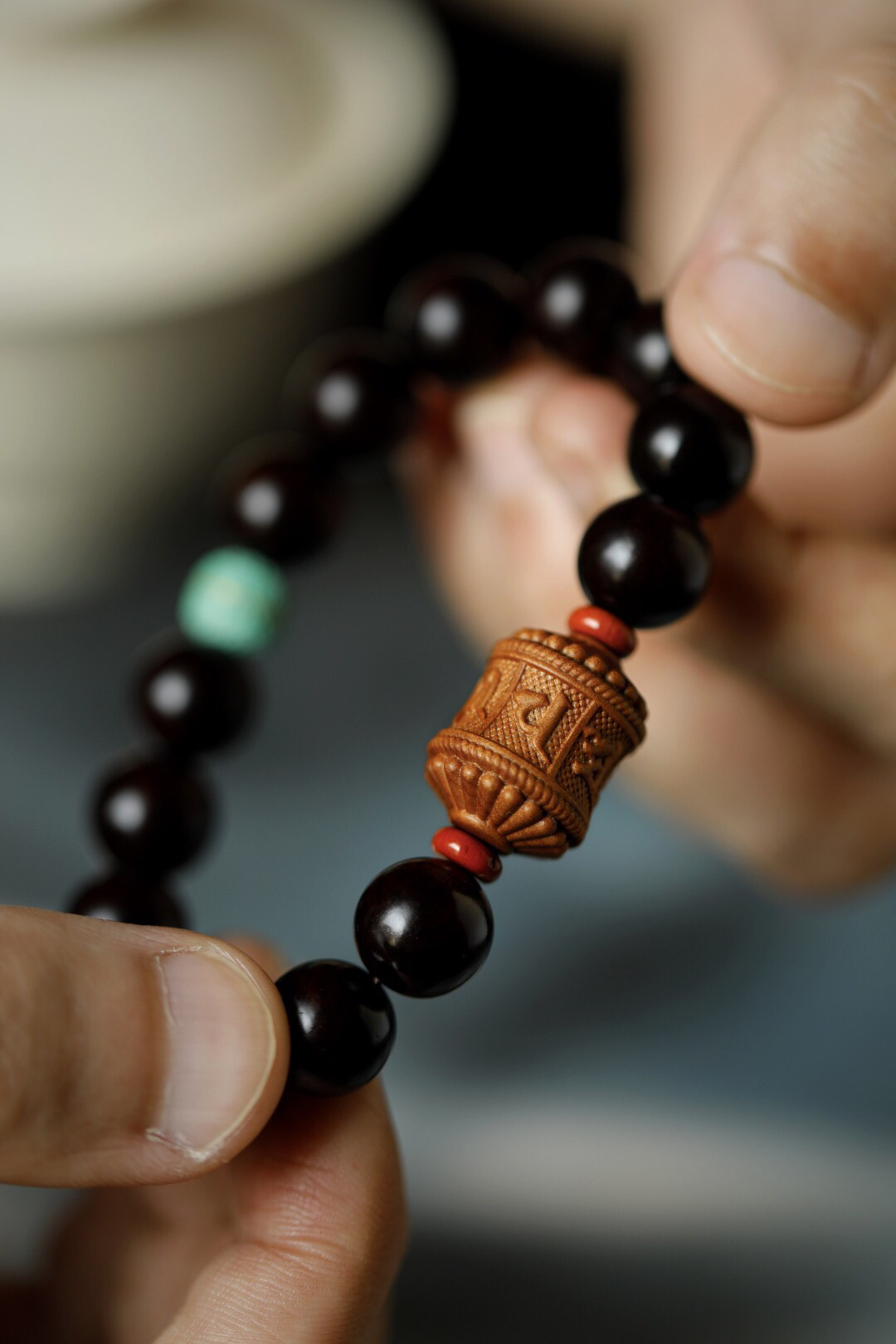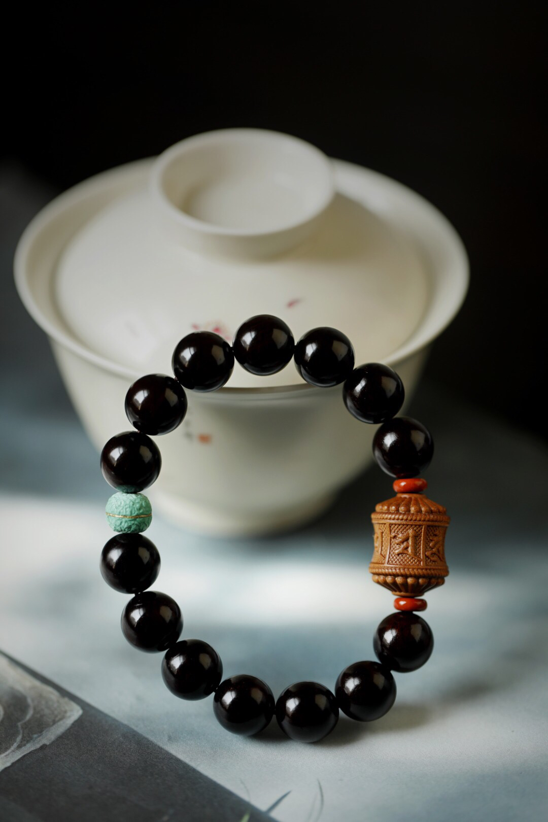 小叶紫檀 原创 油脂由内渗出,包浆晶莹, 珍宝相配,更添富丽色彩; 设计高贵典雅,佩戴大气。