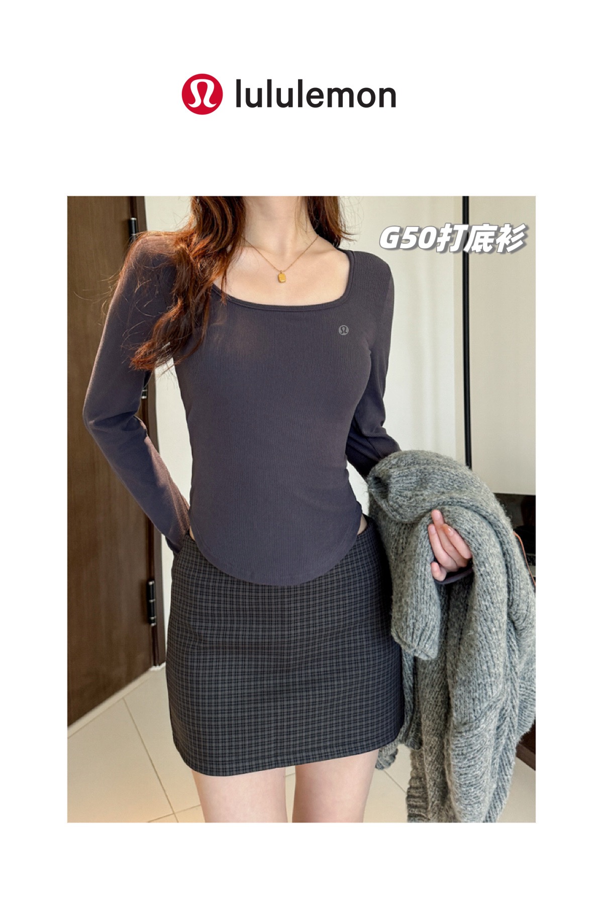 秋天也要性感起来!lululemon2025秋季新款方U领螺纹打底衫,薄款修身高弹力打底!真的很舒服柔软,弹力超大,店内所有女士已自留!