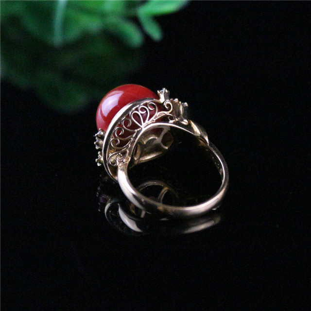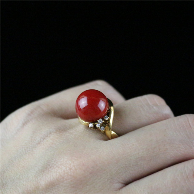 珊瑚类别:阿卡珊瑚 镶嵌材质:18K黄金