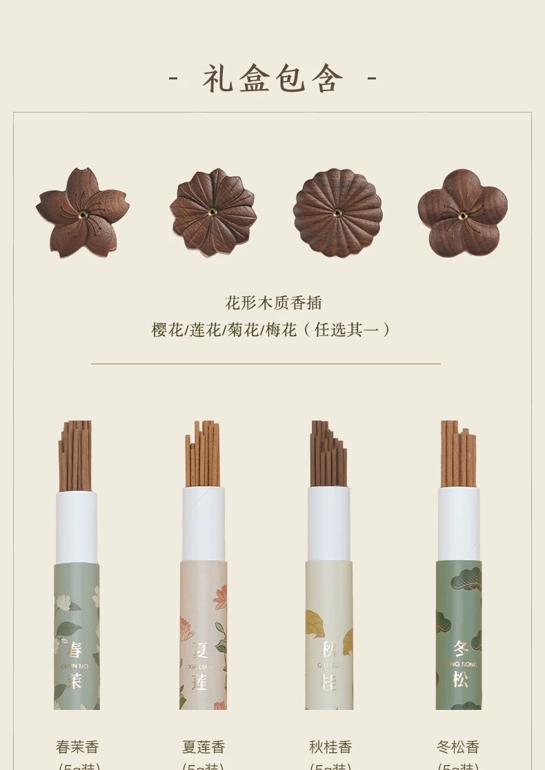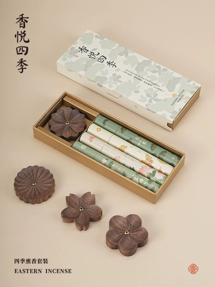 【香悦四季熏香套装】黑胡桃木香座香托中式天然线香香薰礼盒