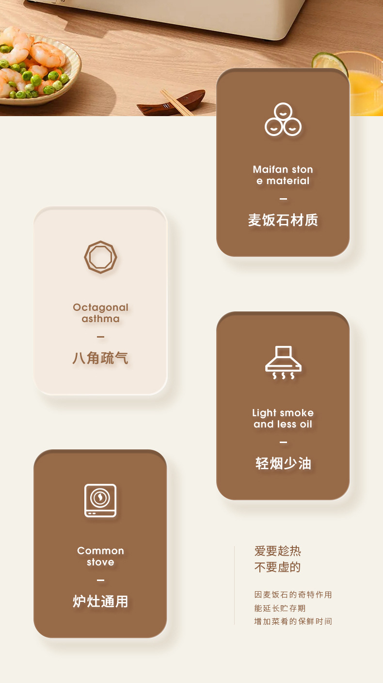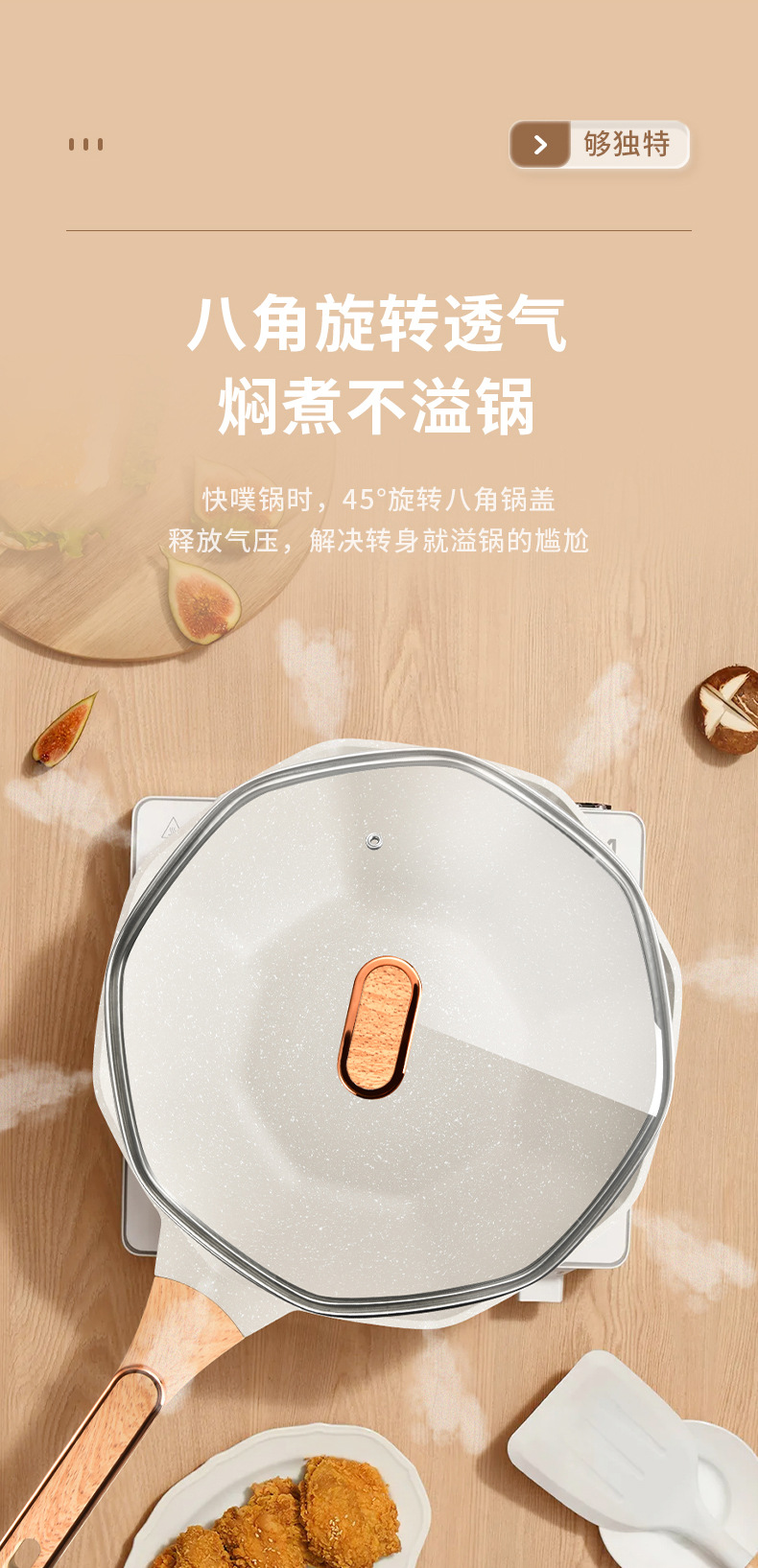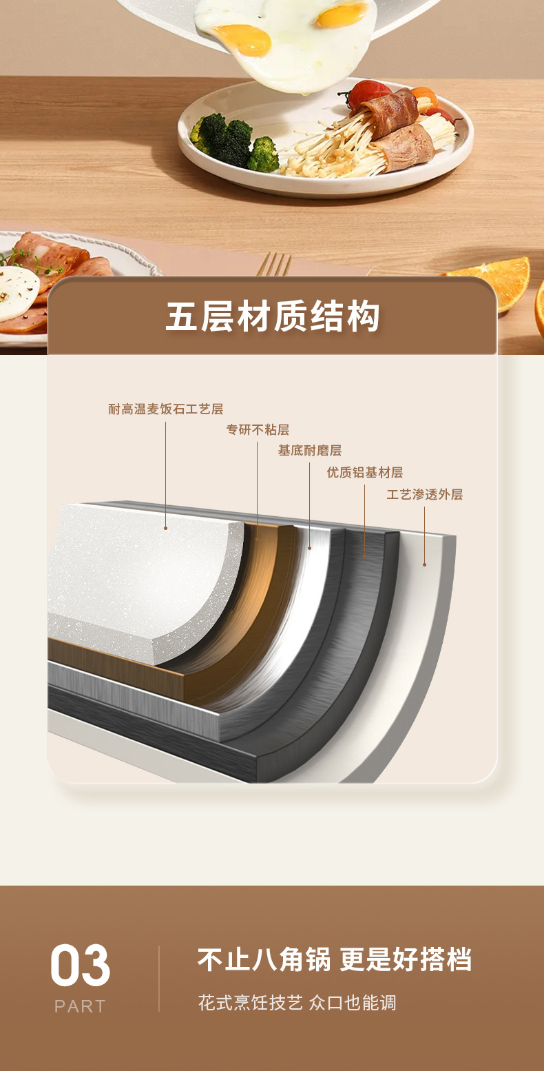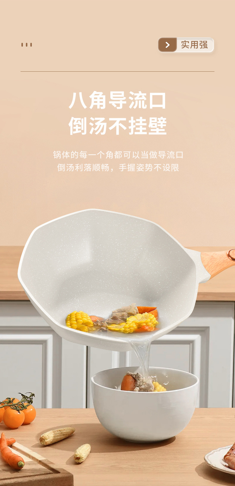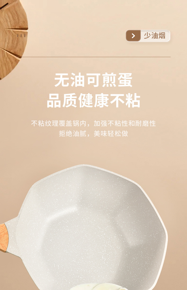 麦饭石八角锅家用不粘锅厨房无油烟平底锅通用