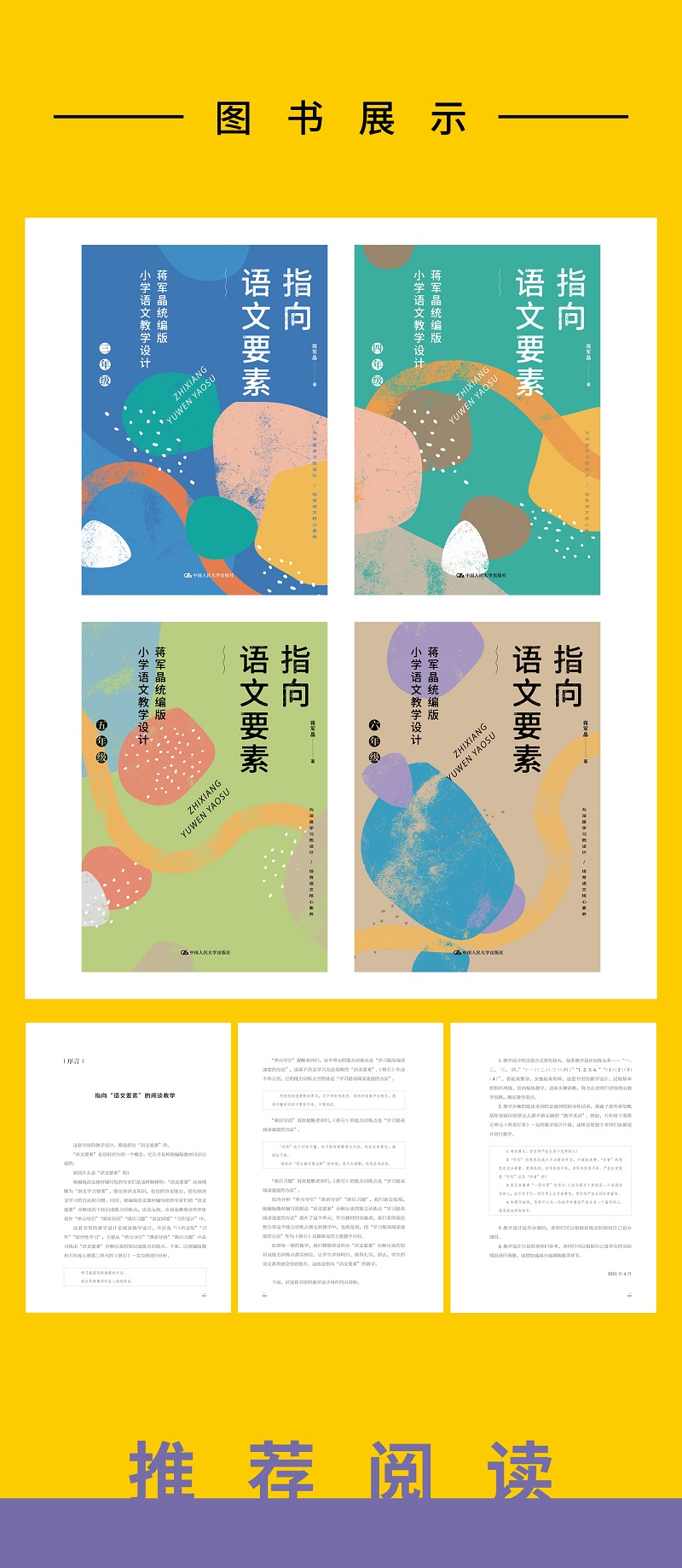 “语文要素”是指语文学习的基本要素,包括语文知识、语文能力、语文学习的方法和习惯。这些语文要素被分解成若干知识或能力训练点,分布在每册教材、每个单元、每篇课文中。书中的教学设计始终指向语文要素,将语文要素融入教学内容、落实到位;突出板块教学,层级简明,步骤清晰,便于教师尽快理出教学思路,确定教学重点;采用指令性教学话语,便于教师依据设计进行教学,便于学生进行深度学习;整体设计教学过程,便于教师依据班级实际情况灵活划分课时,或增加或减少或调换教学环节。