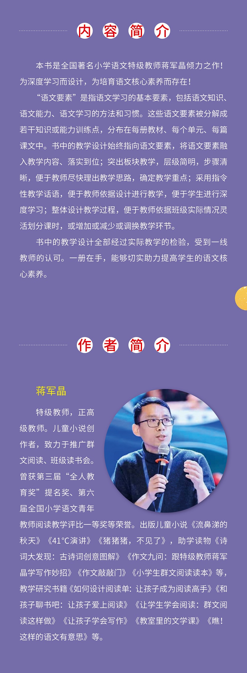 本书是全国著名小学语文特级教师蒋军晶倾力之作!为深度学习而设计,为培育语文核心素养而存在!