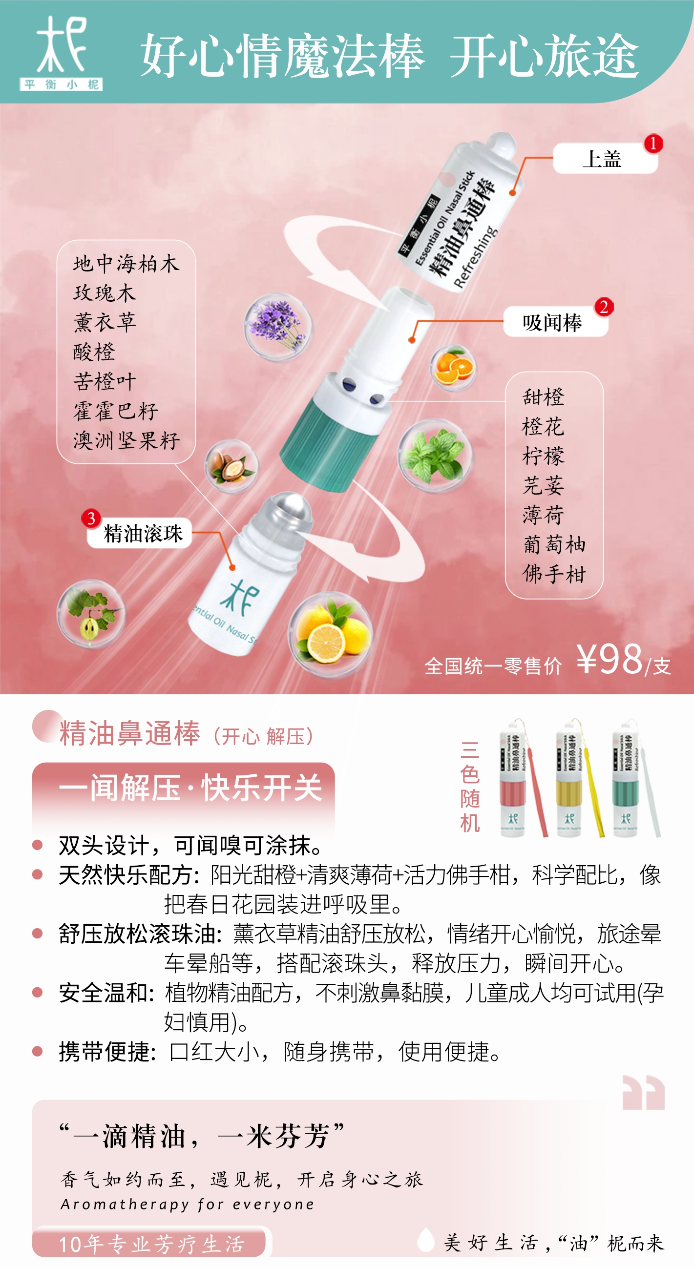 「神清气爽·快乐随行礼盒」提神醒脑精油鼻通棒 开心喜悦精油鼻通棒