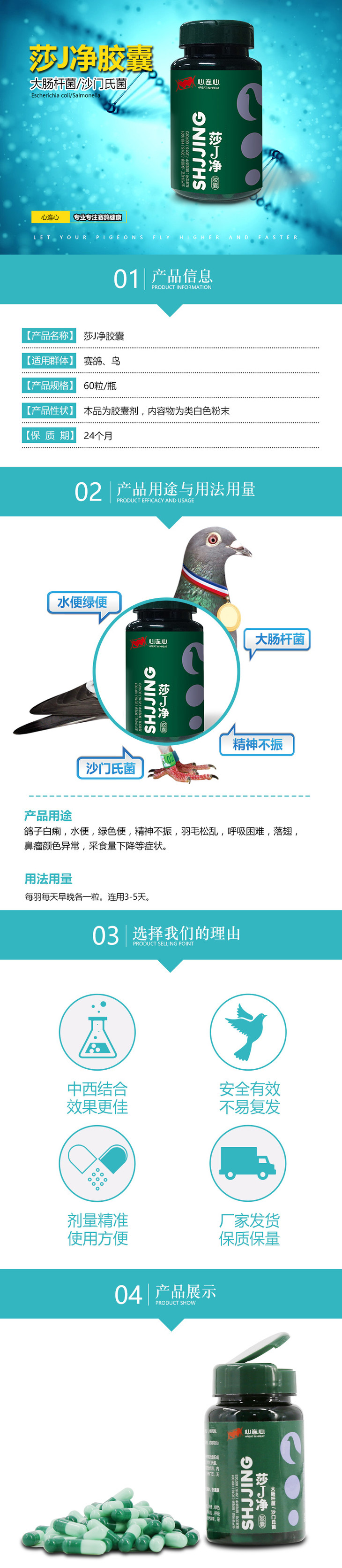 【新莎J净】胶囊60粒,彻底杀灭大肠杆菌/沙门氏菌升级版方(心连心)