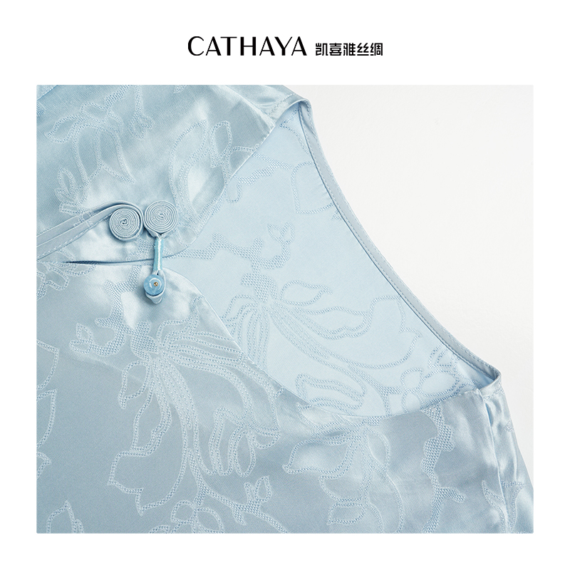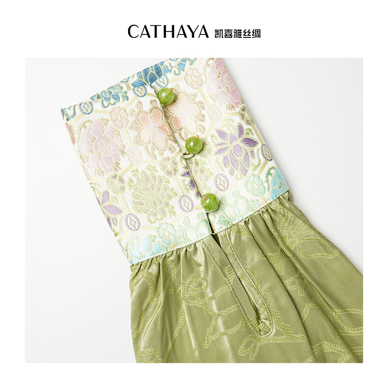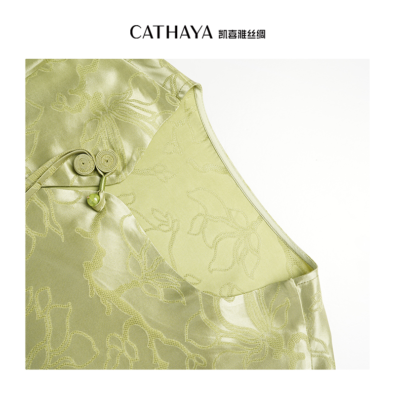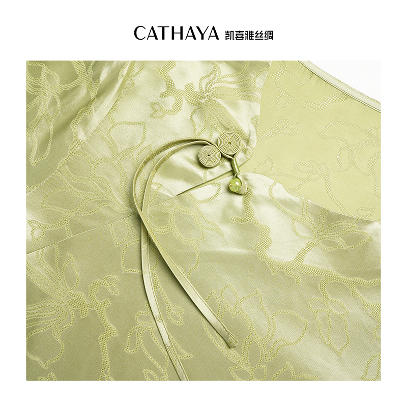 “一树玉兰花,赏尽天下春。”桑蚕丝材质,把绿意和湖光山色穿在身上,有着秋的典雅,东方的优雅,在阳光下真丝散发迷人的光芒。