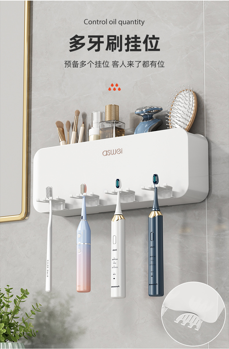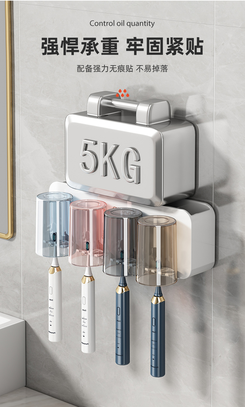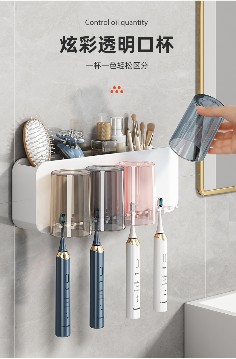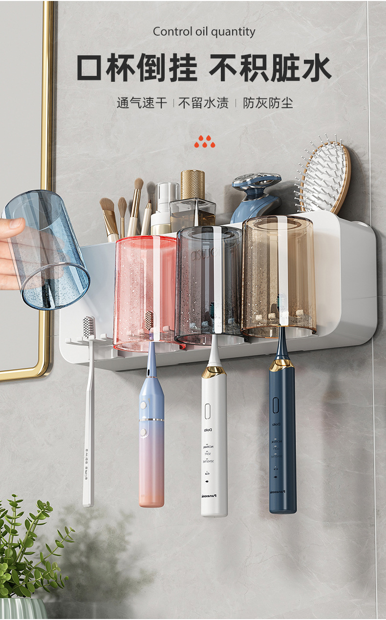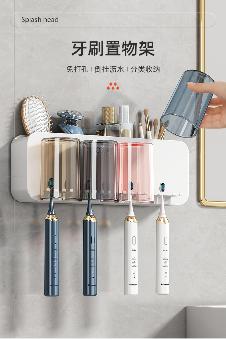 牙刷置物架免打孔刷牙杯漱口杯挂墙架子壁挂式卫生间电动家庭套装💕