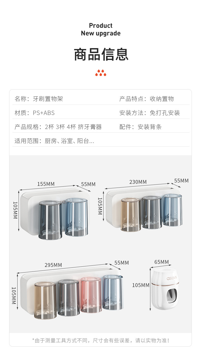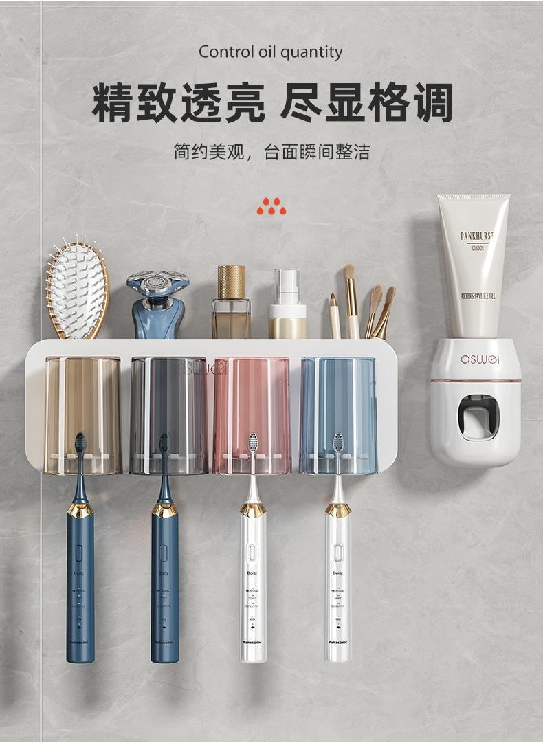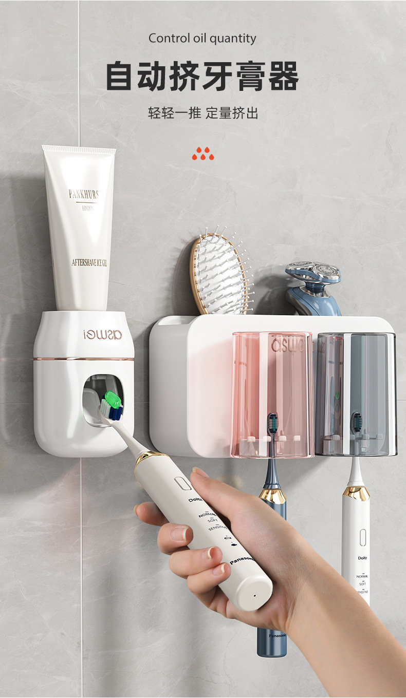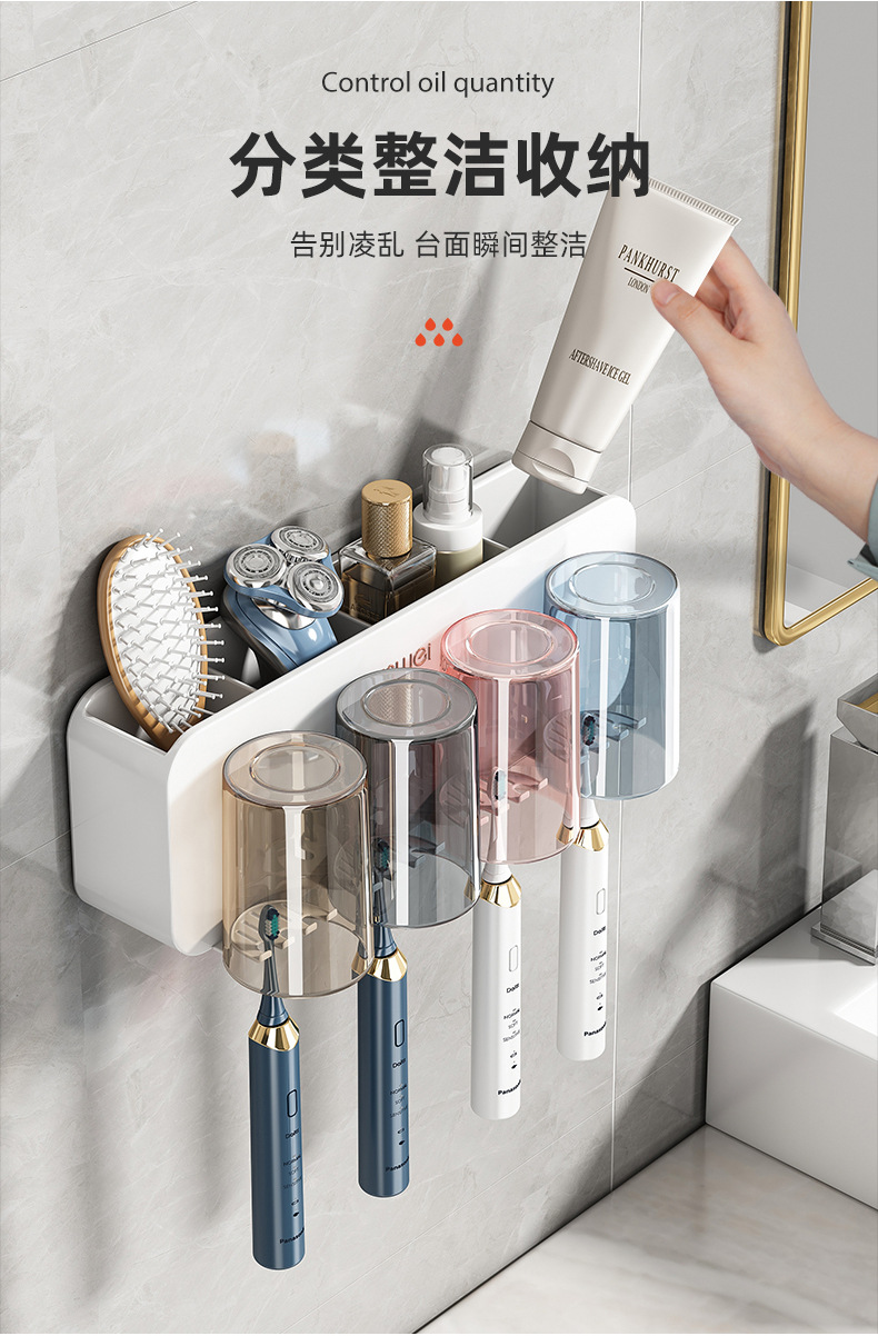 牙刷置物架免打孔刷牙杯漱口杯挂墙架子壁挂式卫生间电动家庭套装💕