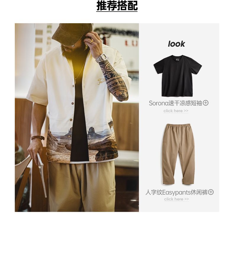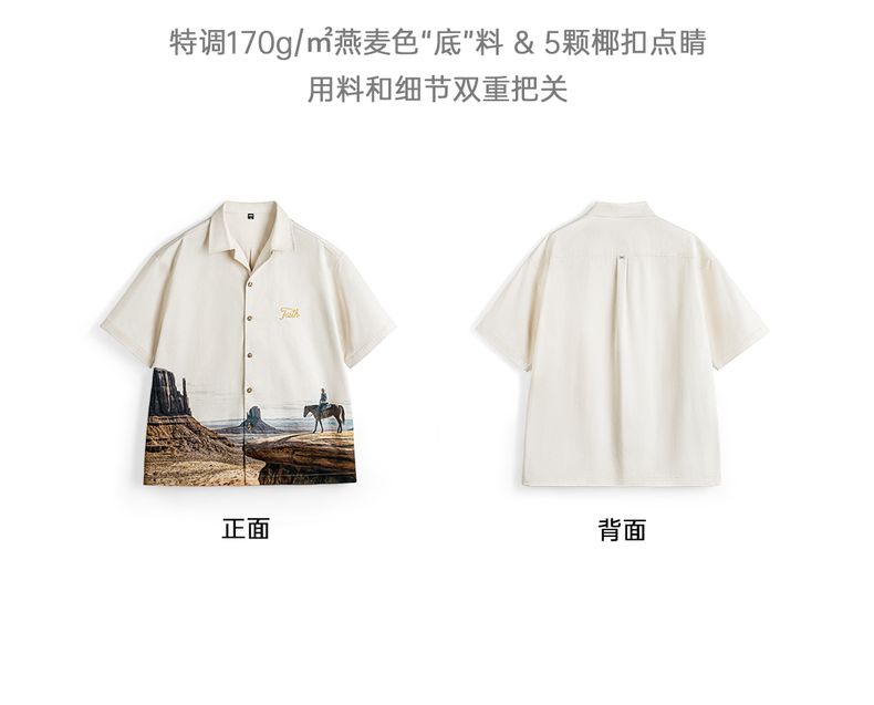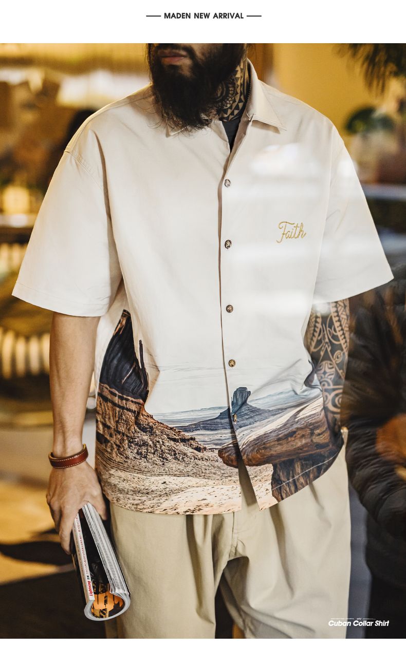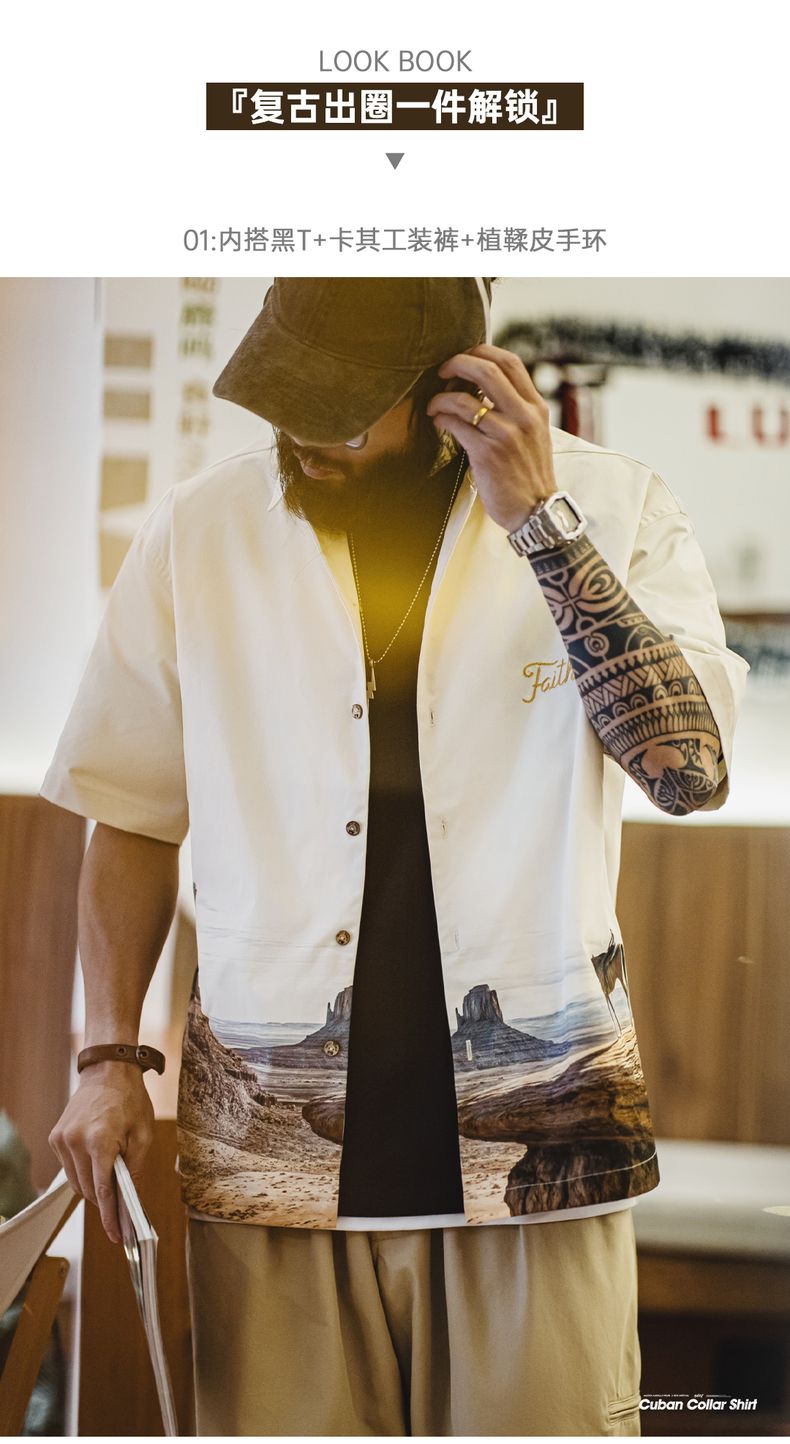 工装优选美式复古纪念碑谷古巴领衬衫短袖印花vintage衬衣男春夏